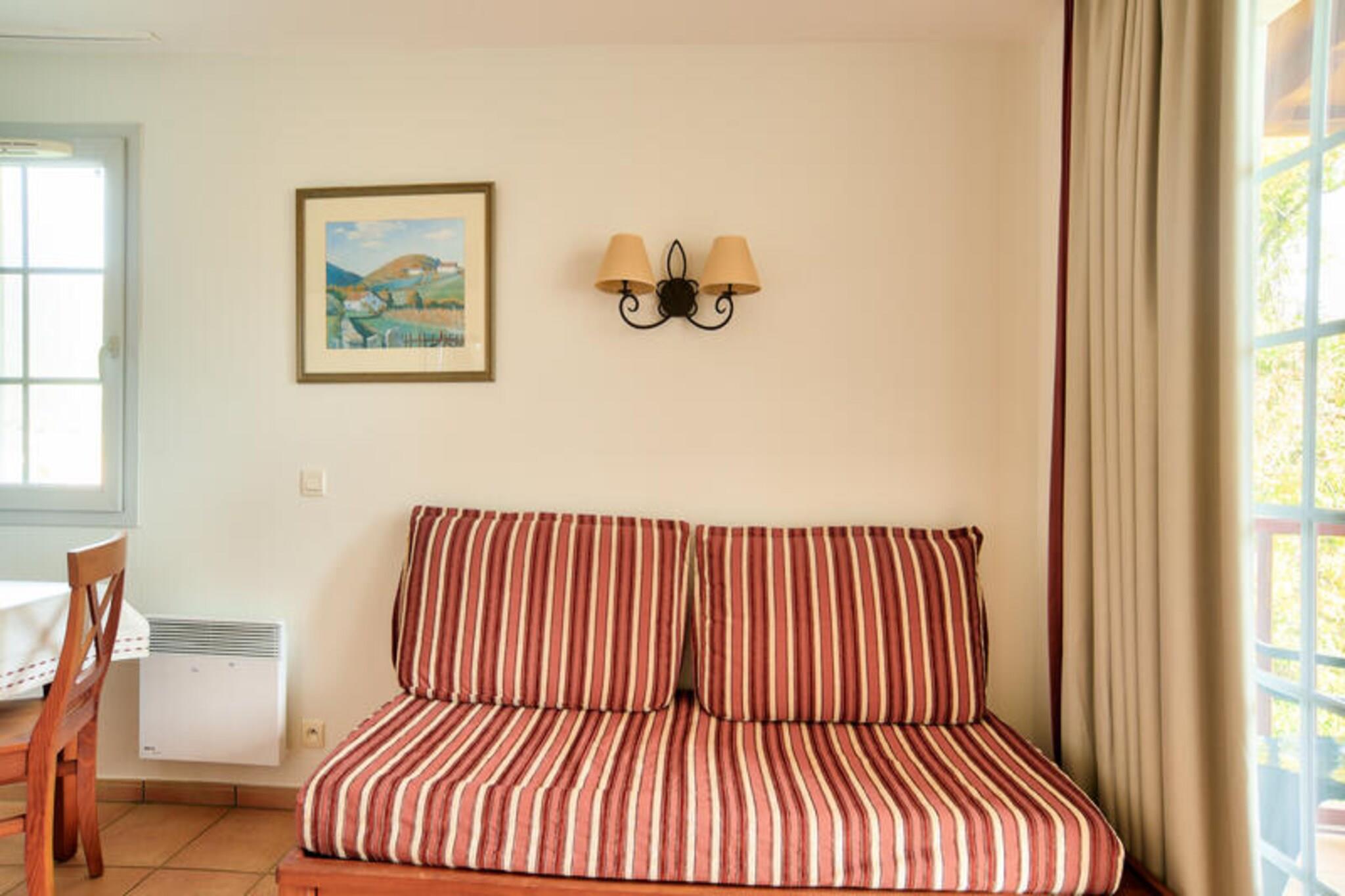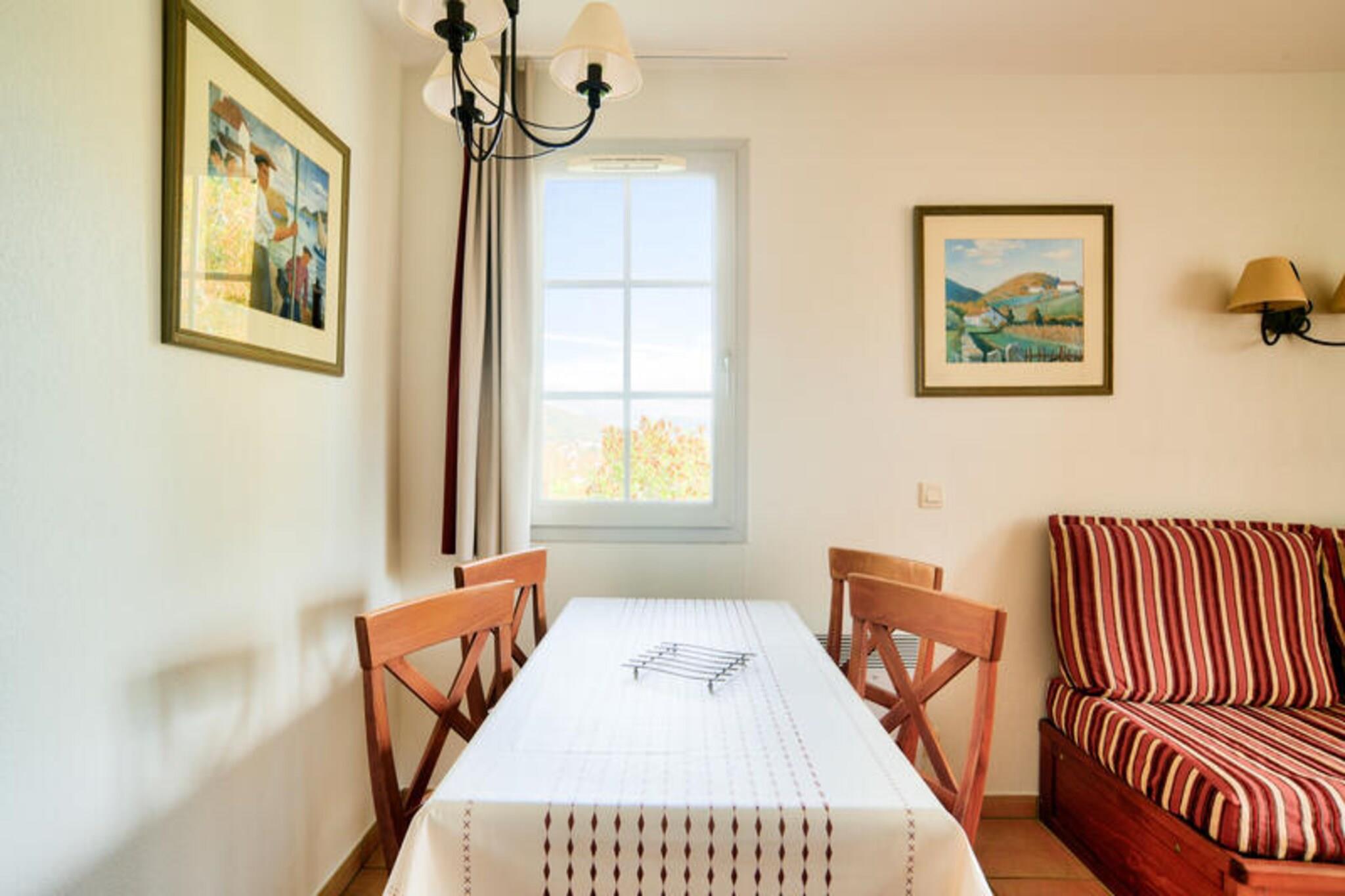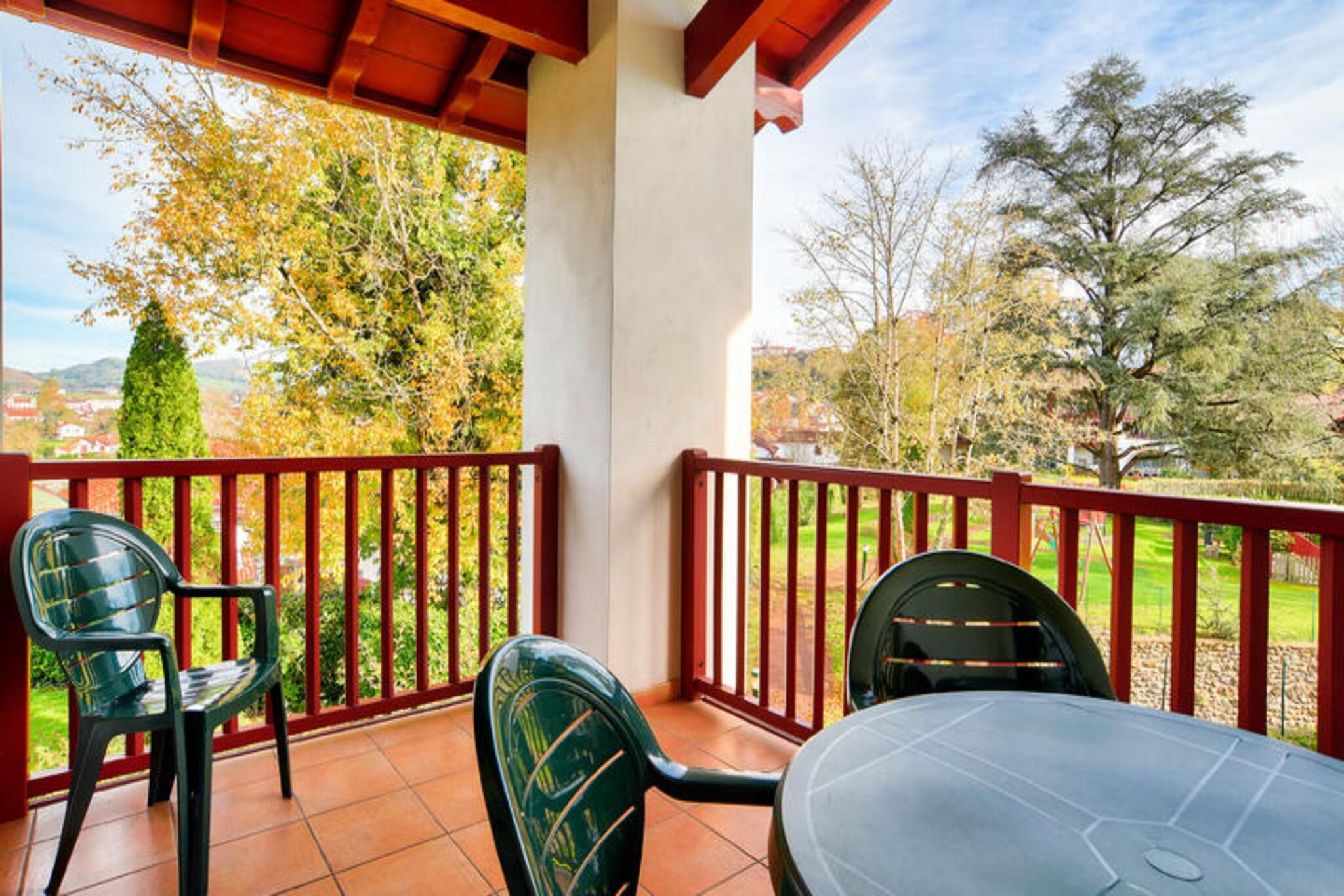 This modern apartment is located in a 19th-century property, offering comfortable accommodation for up to 5 guests. The apartment features one bedroom with a double bed, a living room with a sofa bed and a trundle bed, and a bathroom with a bathtub. There is also a separate toilet. Pets are allowed, with additional charges applied, and a free outdoor parking space is provided. Bed linen and bathroom towels are available upon request for an extra fee. The apartment is equipped with essential amenities and is ideal for family stays. Nestled in the heart of the Basque Country, this property is situated in Saint-Jean-Pied-de-Port, a charming town known for its rich culture and stunning surroundings. The area offers plenty of outdoor activities, including hiking and horseback riding in the Pyrenees. Guests can enjoy the local festivities, including Basque pelota, bullfights, and village festivals. The residence is within walking distance of shops and various activities, with a beautiful valley view from the balcony. Inside the apartment, you'll find a fully equipped American-style kitchen with a dining table and seating for five. The living room is a comfortable space to relax, and the balcony provides a lovely place to enjoy the views. The shared outdoor swimming pool offers an ideal spot to unwind during warmer months, and the property is surrounded by a large wooded park with a children's playground and nature activities like badminton.