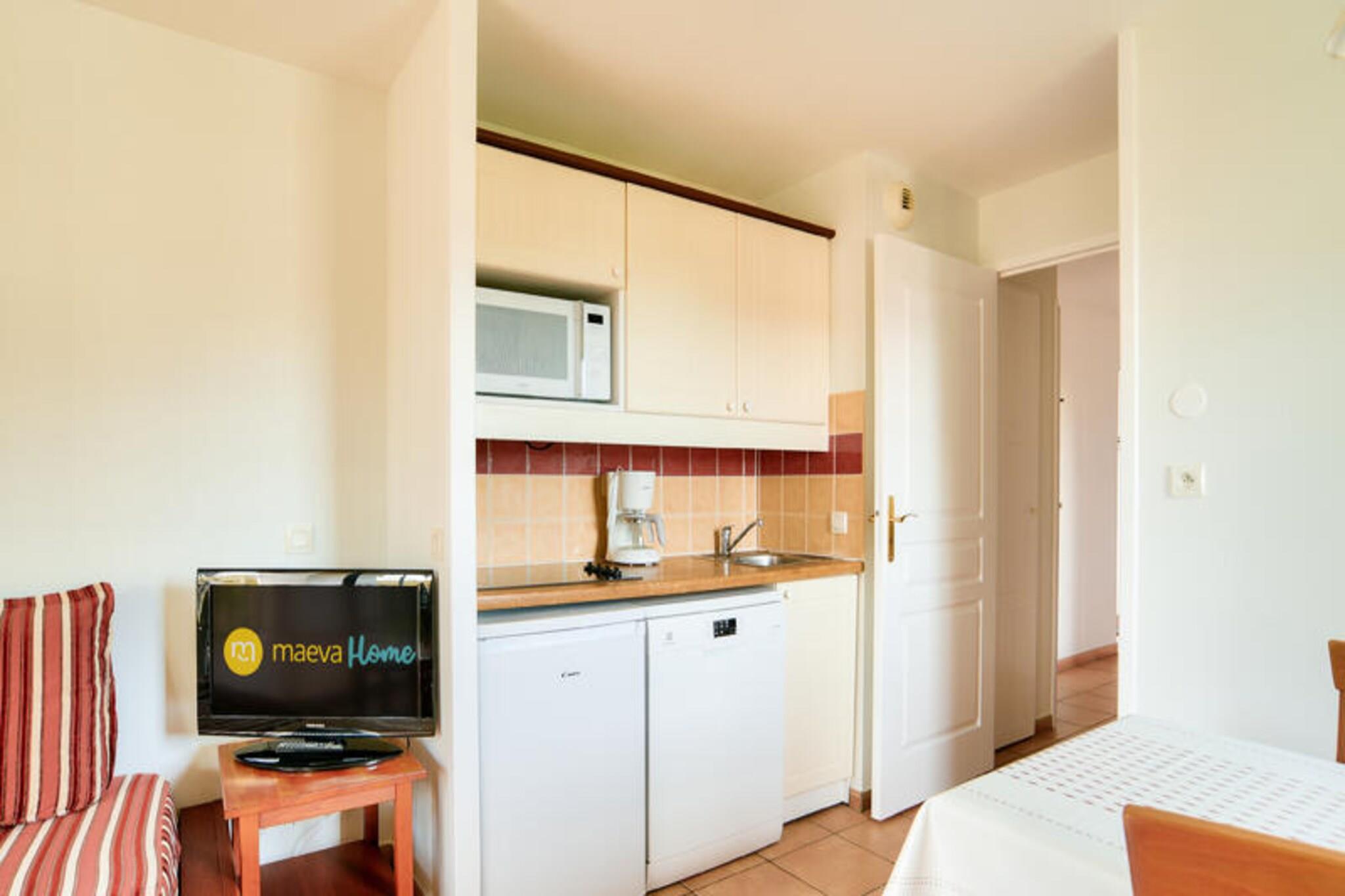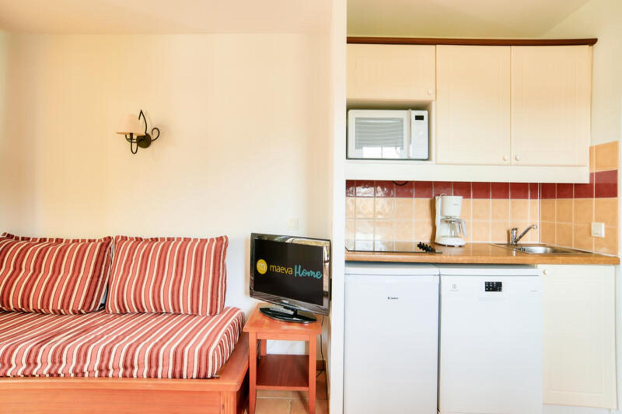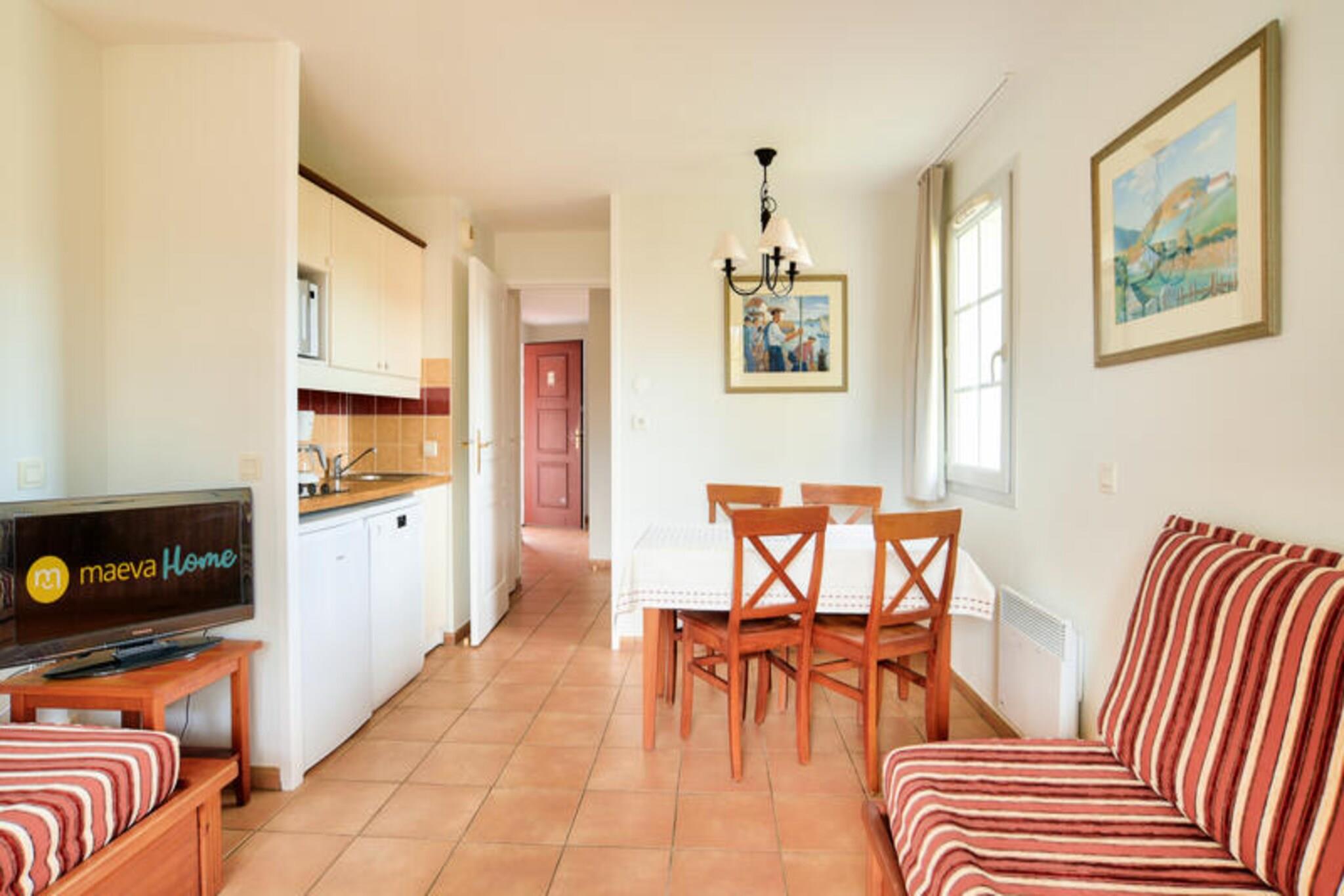 This modern apartment is located in a 19th-century property, offering comfortable accommodation for up to 5 guests. The apartment features one bedroom with a double bed, a living room with a sofa bed and a trundle bed, and a bathroom with a bathtub. There is also a separate toilet. Pets are allowed, with additional charges applied, and a free outdoor parking space is provided. Bed linen and bathroom towels are available upon request for an extra fee. The apartment is equipped with essential amenities and is ideal for family stays. Nestled in the heart of the Basque Country, this property is situated in Saint-Jean-Pied-de-Port, a charming town known for its rich culture and stunning surroundings. The area offers plenty of outdoor activities, including hiking and horseback riding in the Pyrenees. Guests can enjoy the local festivities, including Basque pelota, bullfights, and village festivals. The residence is within walking distance of shops and various activities, with a beautiful valley view from the balcony. Inside the apartment, you'll find a fully equipped American-style kitchen with a dining table and seating for five. The living room is a comfortable space to relax, and the balcony provides a lovely place to enjoy the views. The shared outdoor swimming pool offers an ideal spot to unwind during warmer months, and the property is surrounded by a large wooded park with a children's playground and nature activities like badminton.