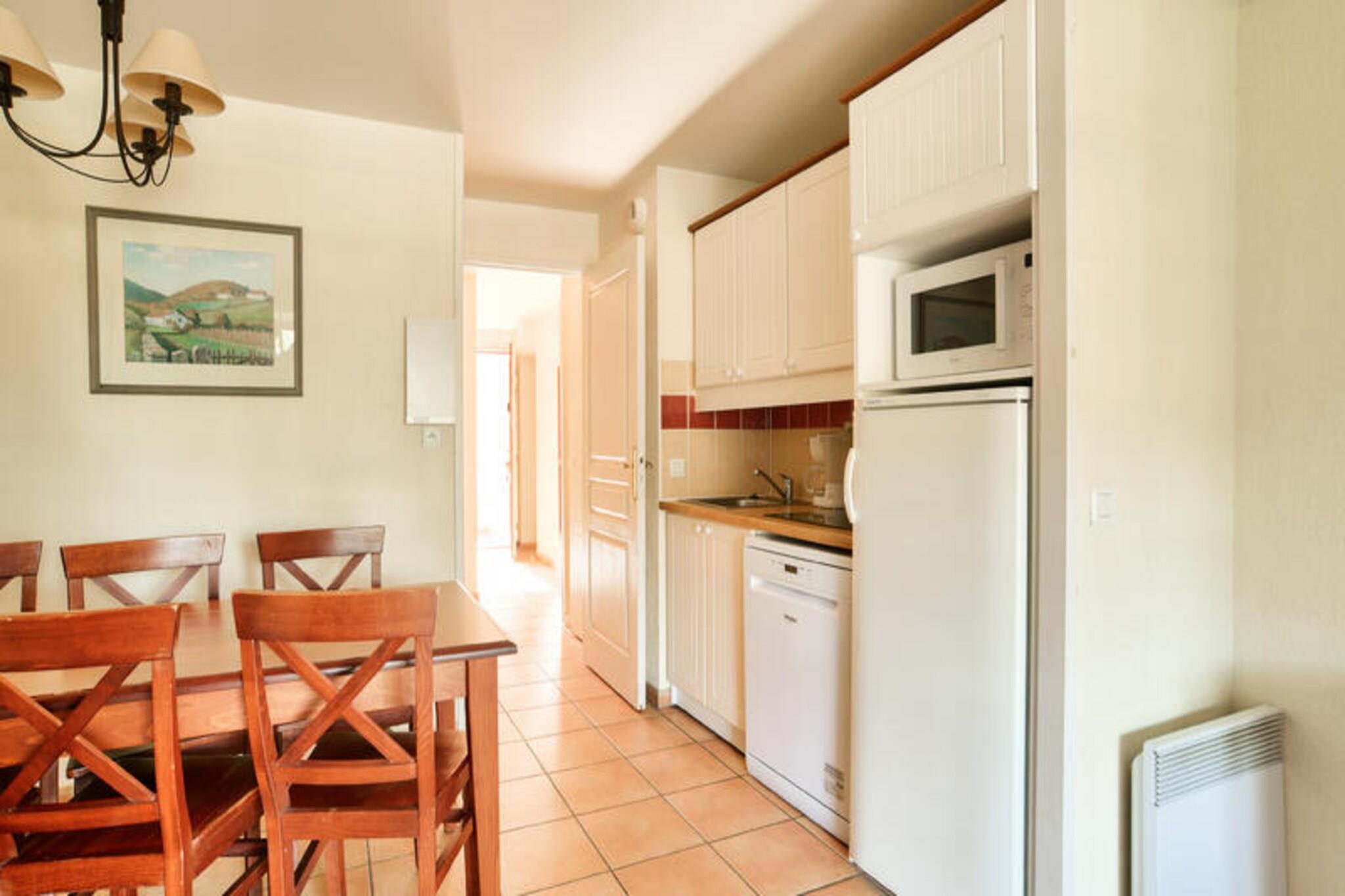 This charming apartment offers comfortable accommodation for up to 6 people with two bedrooms, including a bunk bed and a double bed. The living room features a sofa bed, perfect for additional guests. The apartment is pet-friendly, and a baby kit can be requested. Bed and bathroom linens are available for an extra fee, and end-of-stay cleaning is mandatory. A ?600 deposit is required, and outdoor parking is included for your convenience. Located in the heart of Saint-Jean-Pied-de-Port, this apartment is within walking distance to local shops, cafes, and markets, making it easy to explore the charming village. The residence is nestled in a large wooded park, offering an outdoor swimming pool, a children's playground, and nature activities such as badminton. Nature lovers can explore the Pyrenees on foot or horseback, while the summer months bring festive local events such as Basque pelota, bullfights, and village festivals. The apartment includes a fully equipped kitchen, ideal for preparing meals during your stay. Two bathrooms offer convenience, with one featuring a shower and the other a bathtub. The apartment also boasts a furnished balcony with a northern view, perfect for enjoying the fresh air. Additional amenities include free Wi-Fi, TV (depending on the accommodation), and the option to request bed linen and bathroom towels for an extra charge.