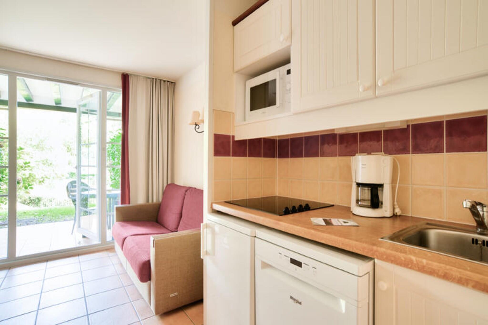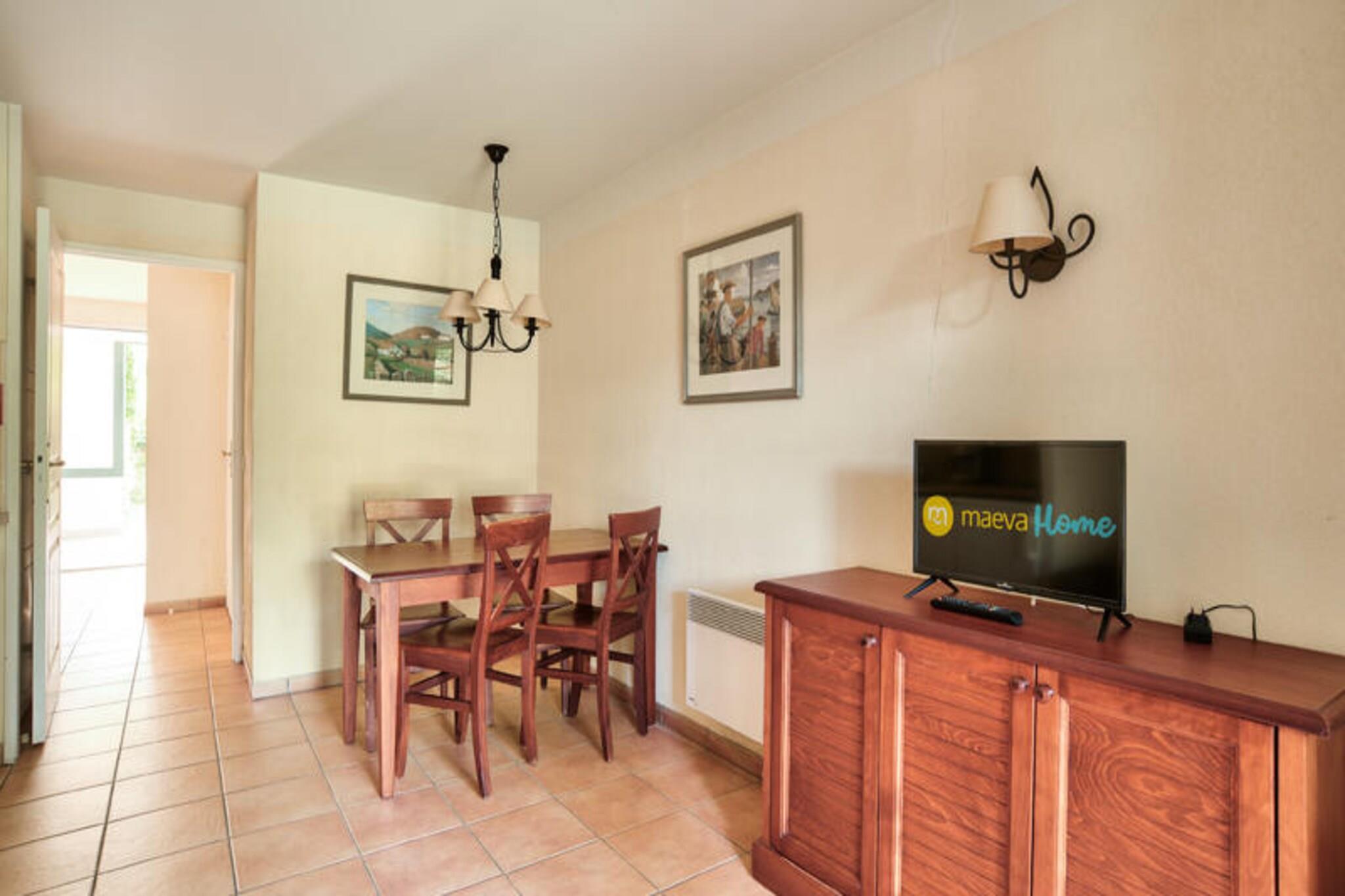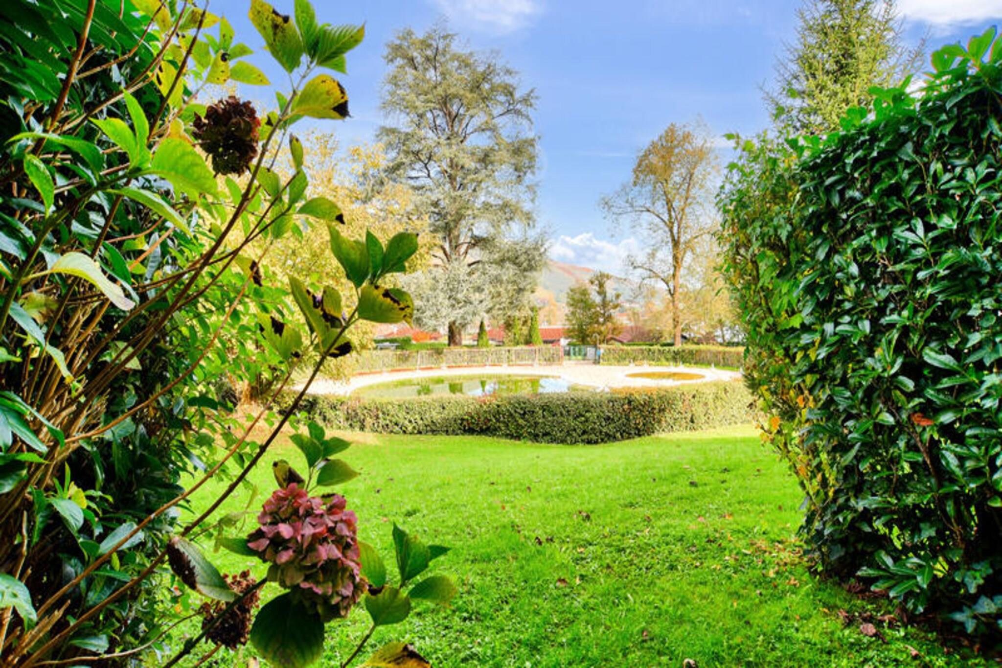 Set within a lush wooded park of a charming 19th-century estate, this ground-floor holiday apartment offers a cozy and family-friendly retreat. The property includes a living room with a comfortable sofa bed, a bedroom with two single beds, and a bathroom with a bathtub. Guests can enjoy a covered terrace perfect for relaxation, along with free outdoor parking nearby. This pet-friendly accommodation ensures every family member, including furry friends, can join the adventure. Located between 100 and 500 meters from local shops and activities, this holiday home is perfectly situated for exploring the vibrant surroundings. Visitors can enjoy nearby cafes, traditional markets, and festive events celebrating Basque culture, including Basque pelota and village festivals. Nature enthusiasts will love the easy access to hiking and horseback riding in the Pyrenees, while the on-site swimming pool offers a refreshing escape during warm summer days. Additional amenities include an American-style kitchen equipped with essentials for meal preparation and a shared outdoor swimming pool within the residence. A dedicated parking spot and thoughtful features such as coat hooks and towel drying options ensure a comfortable stay. With its tranquil setting and modern conveniences, this holiday home offers the perfect base for a relaxing getaway.
