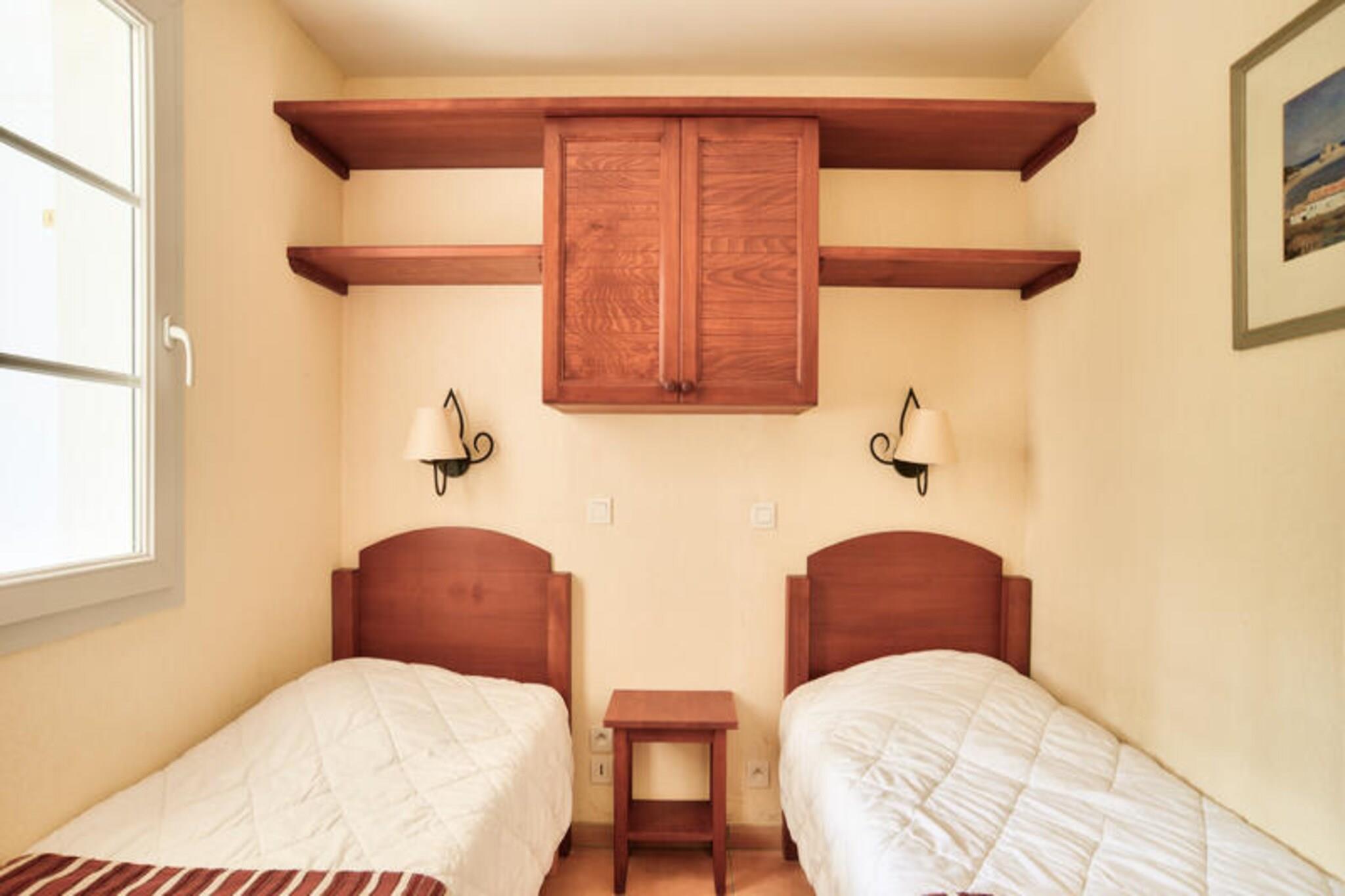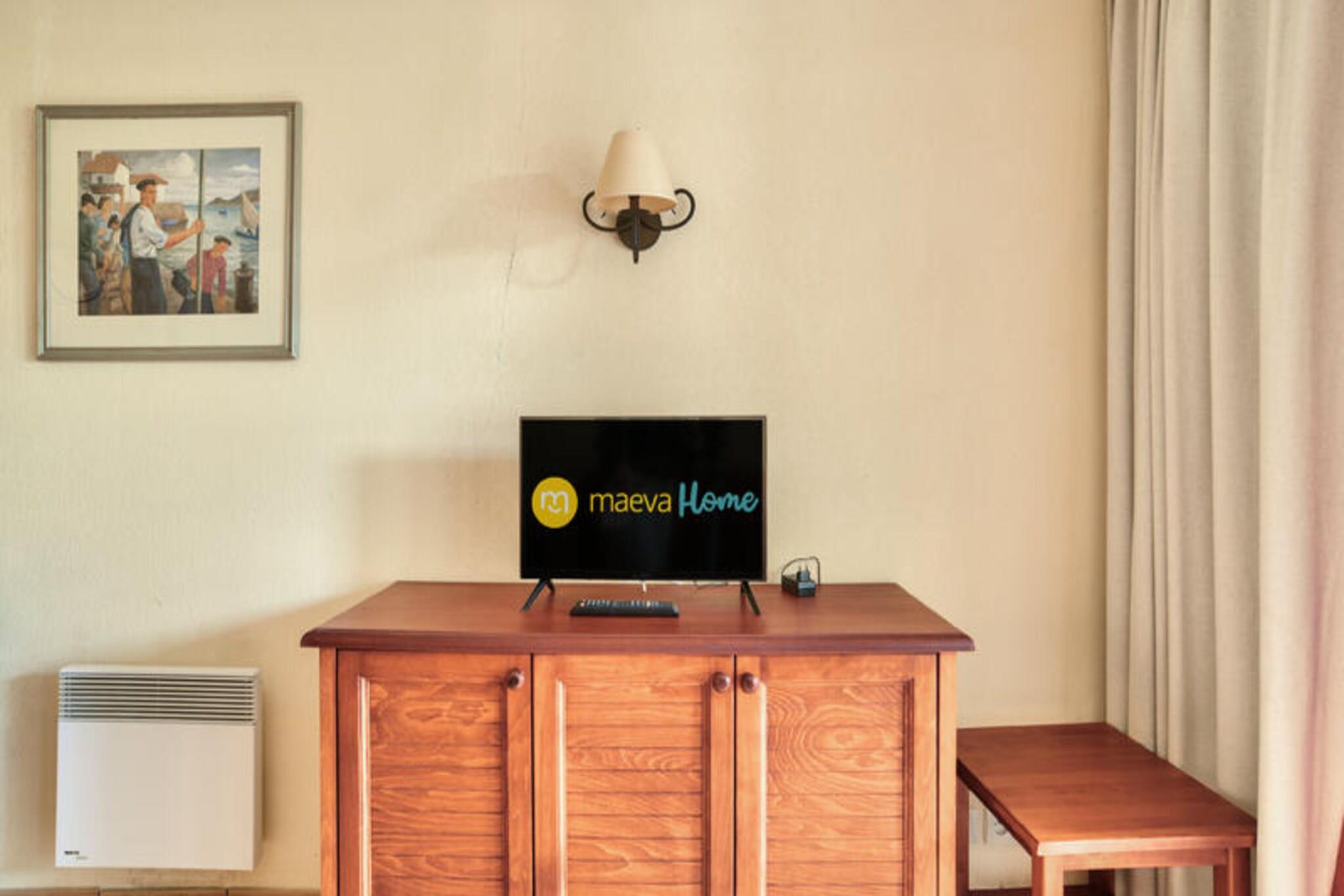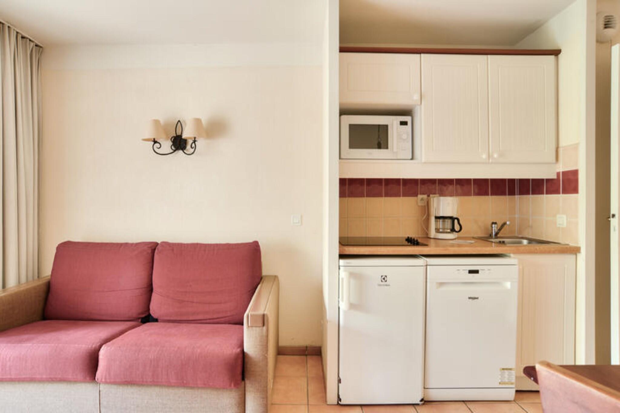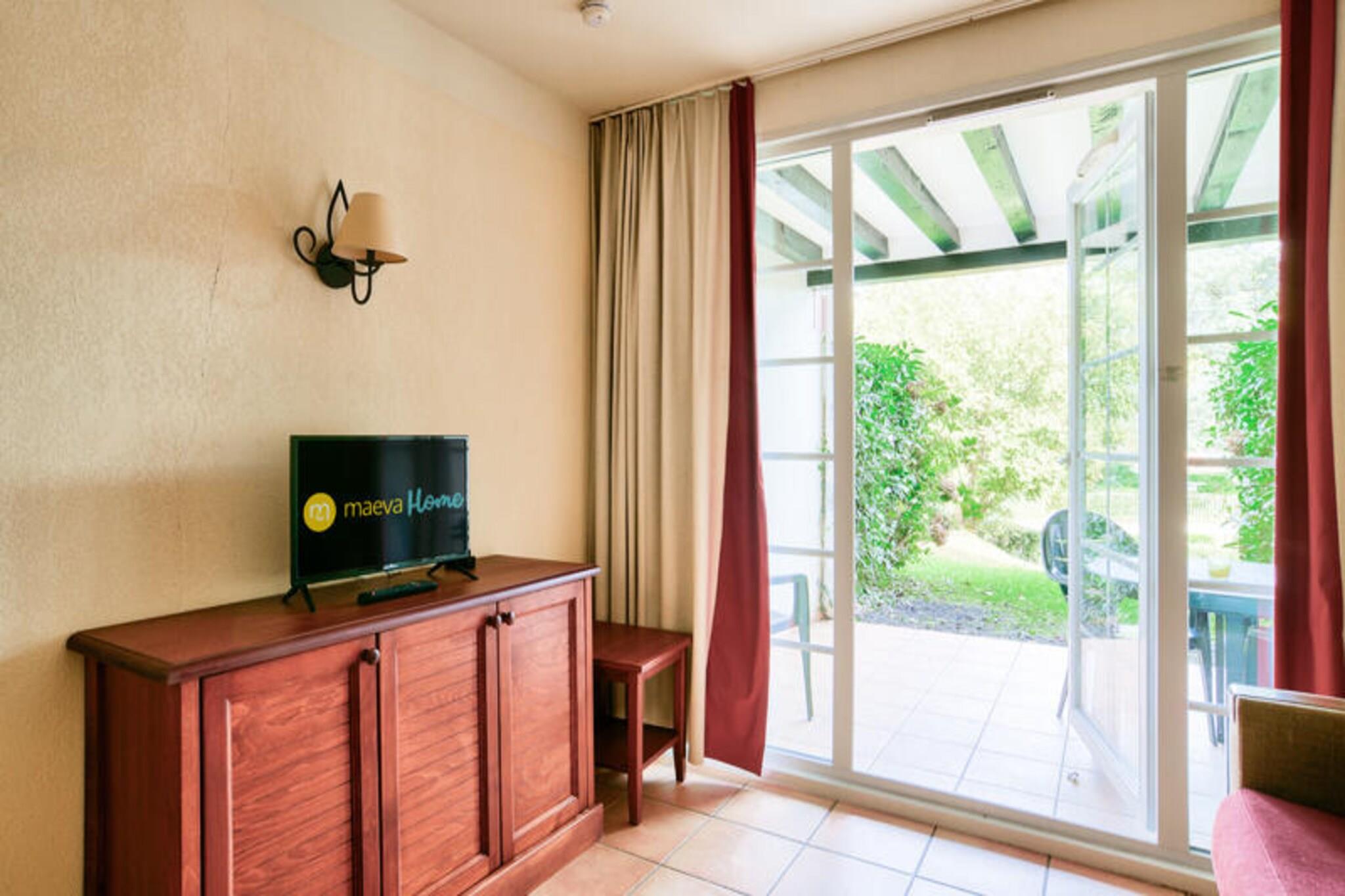 Set within a lush wooded park of a charming 19th-century estate, this ground-floor holiday apartment offers a cozy and family-friendly retreat. The property includes a living room with a comfortable sofa bed, a bedroom with two single beds, and a bathroom with a bathtub. Guests can enjoy a covered terrace perfect for relaxation, along with free outdoor parking nearby. This pet-friendly accommodation ensures every family member, including furry friends, can join the adventure. Located between 100 and 500 meters from local shops and activities, this holiday home is perfectly situated for exploring the vibrant surroundings. Visitors can enjoy nearby cafes, traditional markets, and festive events celebrating Basque culture, including Basque pelota and village festivals. Nature enthusiasts will love the easy access to hiking and horseback riding in the Pyrenees, while the on-site swimming pool offers a refreshing escape during warm summer days. Additional amenities include an American-style kitchen equipped with essentials for meal preparation and a shared outdoor swimming pool within the residence. A dedicated parking spot and thoughtful features such as coat hooks and towel drying options ensure a comfortable stay. With its tranquil setting and modern conveniences, this holiday home offers the perfect base for a relaxing getaway.
