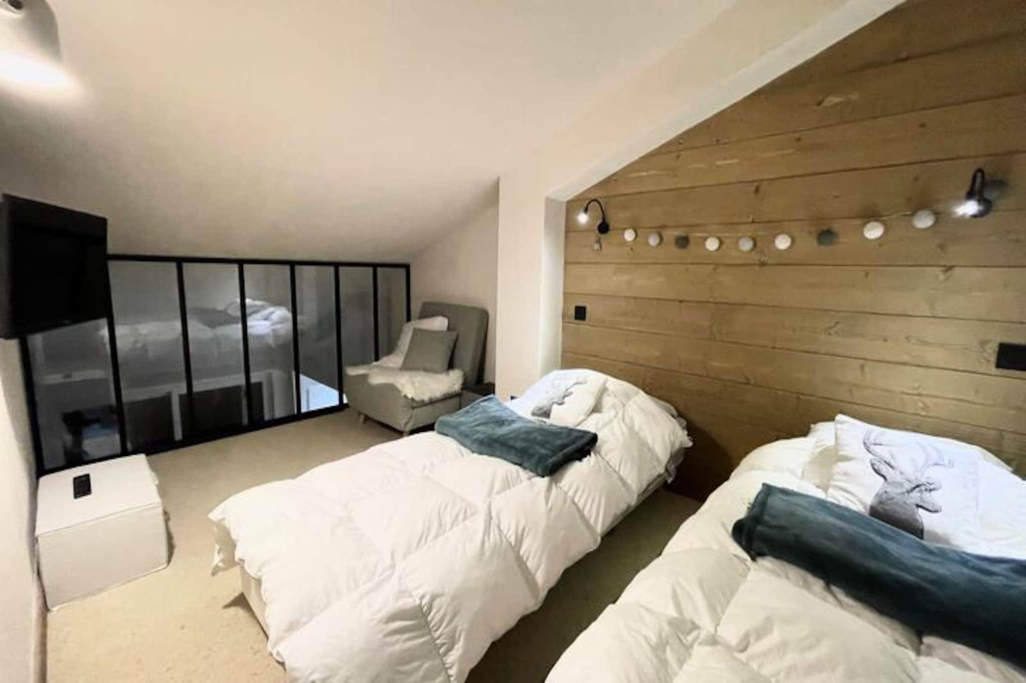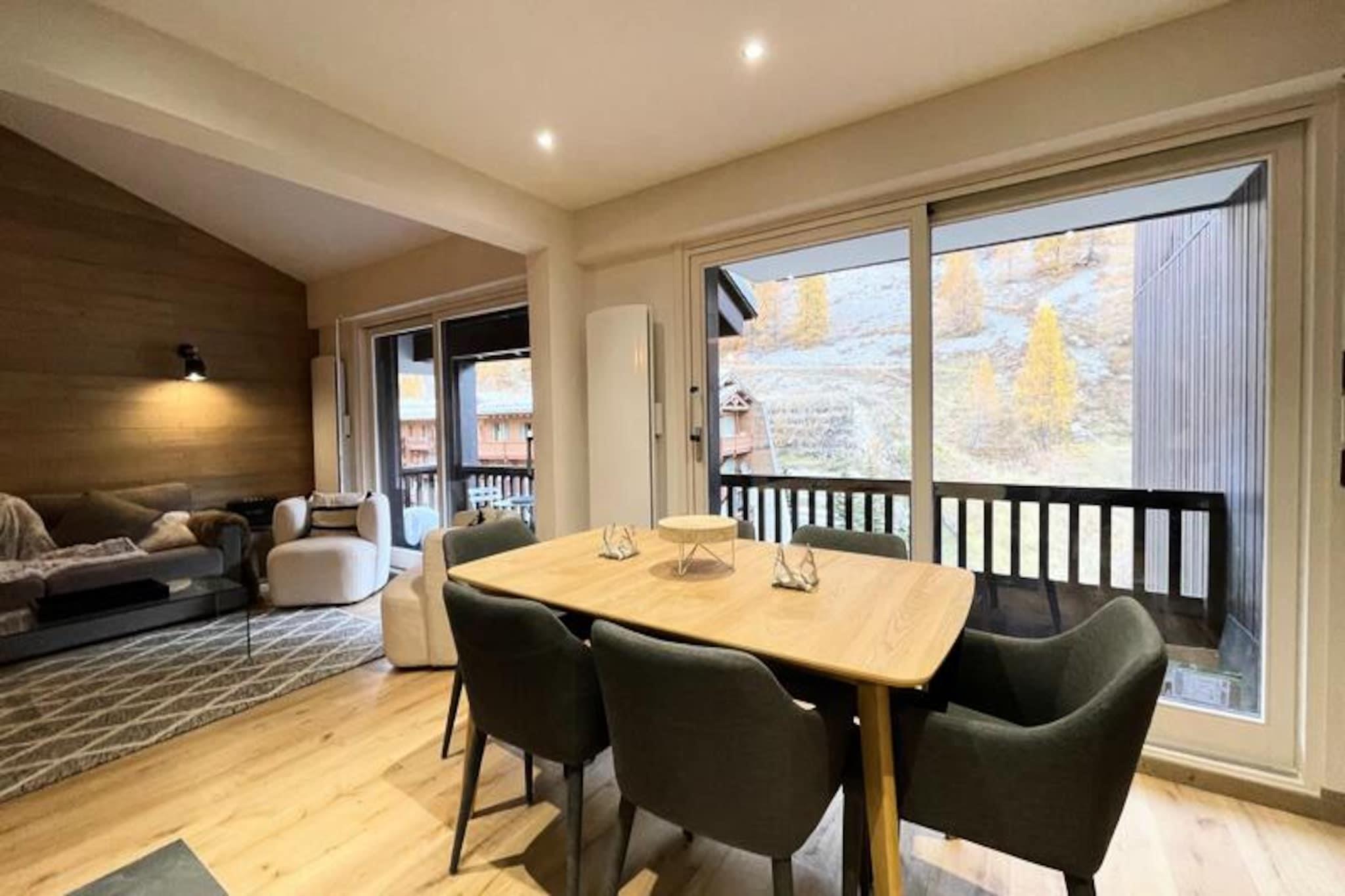 Amidst the enchanting alpine charm of Val d'Isère, this beautifully renovated duplex apartment offers a serene retreat just a 3-minute walk from the slopes. Located on the 4th floor of the prestigious Le Dôme residence, the property combines modern comfort with breathtaking mountain views, making it the perfect base for your next ski holiday. From the expansive terrace, soak in the uninterrupted vistas of the majestic Dôme mountain, a sight that will inspire your days in this iconic resort. Designed with families or couples in mind, the 56m² apartment comfortably accommodates 4-5 guests. The thoughtful layout includes a cozy blind bedroom with a double bed and TV, a mezzanine bedroom with a double and single bed, and a spacious living room featuring a plush sofa, television, and Bluetooth speaker. The fully equipped kitchen is a culinary delight, boasting a dishwasher, induction hob, Nespresso machine, and combination oven, while the dining area invites you to share meals and laughter. Additional conveniences like a washing machine, wine cellar, and ski locker ensure a seamless stay. Step outside and discover the vibrant heart of Val d'Isère, where charming boutiques, gourmet restaurants, and après-ski hotspots await. With the slopes just moments away, your alpine adventures begin effortlessly. Whether you're carving through pristine snow in winter or exploring scenic trails in summer, this central location offers unparalleled access to the best of the region. Choose this elegant apartment for its blend of style, comfort, and proximity to the slopes. With linens provided, beds made upon arrival, and optional hotel-style cleaning services, every detail has been considered to make your stay as relaxing as possible. Create unforgettable memories in the French Alps, where the beauty of Val d'Isère meets the comforts of home.