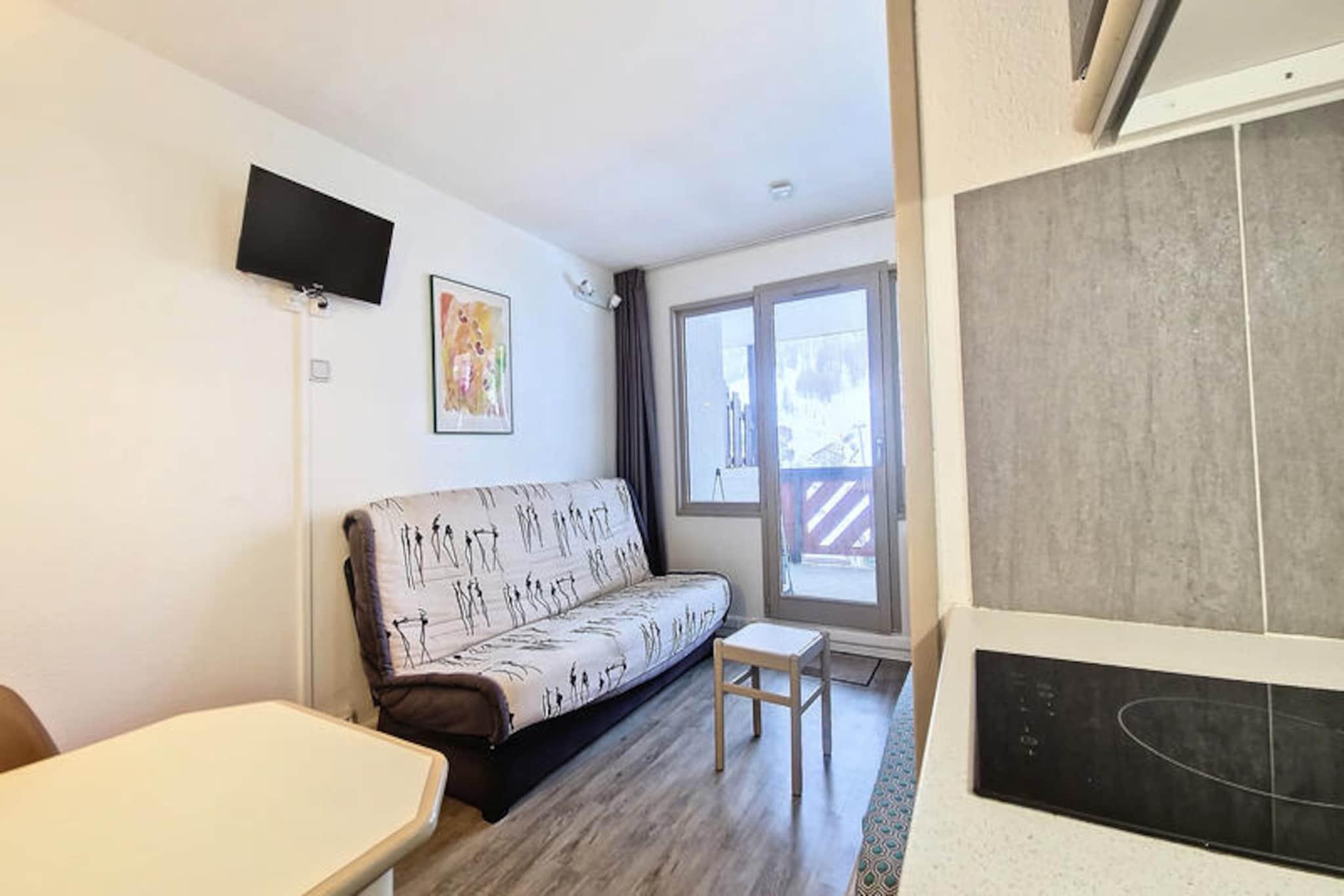 In the heart of the breathtaking French Alps, this cozy studio apartment in Val d'Isère’s La Daille district promises an unforgettable alpine escape. Positioned just steps from the ski lifts and offering true ski-in/ski-out convenience, this residence is perfect for those seeking seamless access to the world-class slopes of the Tignes-Val d'Isère ski area. With its south-facing balcony, you can soak in the crisp mountain air and enjoy serene views of the surrounding peaks. The free shuttle service ensures easy access to the lively resort center, just 1 km away, where charming shops, restaurants, and après-ski options await. Inside, the 22 m² studio is thoughtfully designed to accommodate 2-4 guests. The living area features a comfortable sofa bed, a dining space, and a lounge with a television for cozy evenings in. The entrance is equipped with two bunk beds, making it ideal for families or small groups. The compact kitchen comes fully equipped with electric hobs, a microwave, and a dishwasher, ensuring you have everything needed to prepare hearty meals after a day on the slopes. The bathroom includes a shower and toilet, and all linens and towels are provided for your convenience. Beyond the apartment, the La Daille district offers a tranquil yet convenient base with nearby shops and direct access to the slopes. During your stay, take advantage of preferential rates on ski lift passes and additional services like parking and Wi-Fi to make your holiday stress-free. Whether you’re here to carve through pristine snow in winter or explore the alpine trails in summer, this studio offers the perfect blend of comfort, convenience, and charm. Experience the magic of Val d'Isère and create memories to last a lifetime.