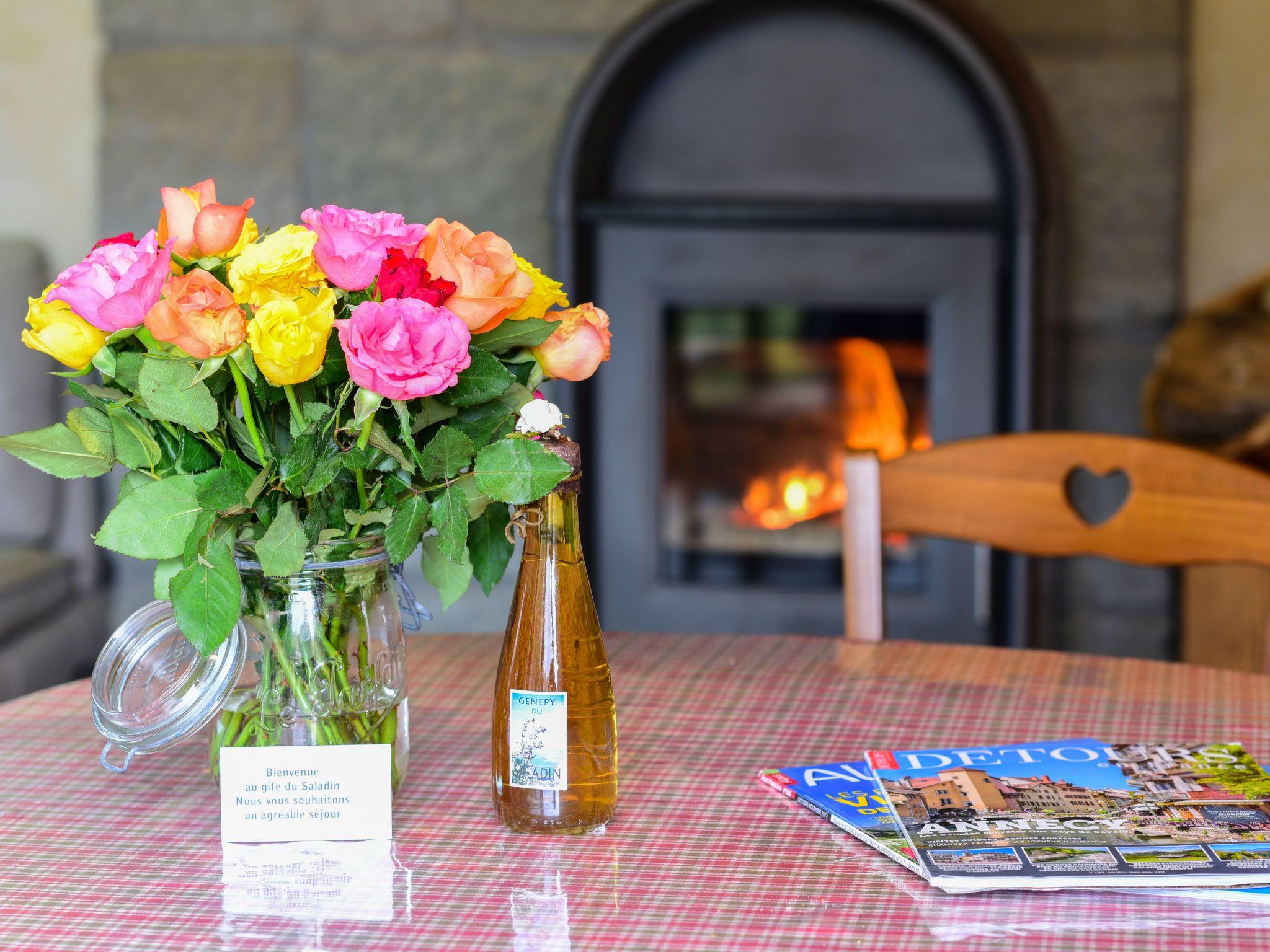 Built and fitted out by its owner in an old renovated traditional farmhouse, the gîte is made with noble materials (untreated wood, stone) and natural materials (wood wool, fermacell (gypsum and cellulose)) to create a healthy environment. This is one of the reasons why we ask tenants not to smoke inside. Beams, brushed wood, lime plaster and molasses (local stone) give this cosy flat an exceptional character.