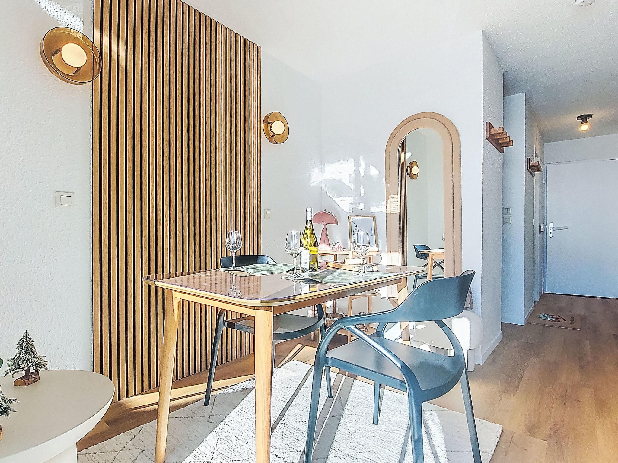 2-room apartment 42 m2 on 7th floor, south facing position. Partly renovated in 2025, comfortable and modern furnishings: living/dining room with 1 double sofabed (1 x 140 cm, length 190 cm), dining table and TV. Exit to the balcony, south facing position. Entrance hall with kitchen corner. Kitchenette in the entrance (oven, dishwasher, 3 induction hot plates, kettle, microwave, electric coffee machine, Capsules for coffee machine (Nespresso) free). Bathroom, sep. WC. Upper floor: (spiral staircase), 1 large room with 1 double bed (1 x 140 cm, length 200 cm), electric heating. Sleeping alcove with 1 x 2 bunk beds (80 cm, length 190 cm), electric heating. Shower/WC. Parquet floors. Small balcony 3 m2, south facing position. Very beautiful view of the mountains, the valley, the ski run and the resort. Facilities: safe, children's high chair, baby cot (extra), hair dryer. Internet (WiFi, extra). Please note: non-smokers only. Offer by a private individual according to Art. 155, IV of CGI. 73257010814HT