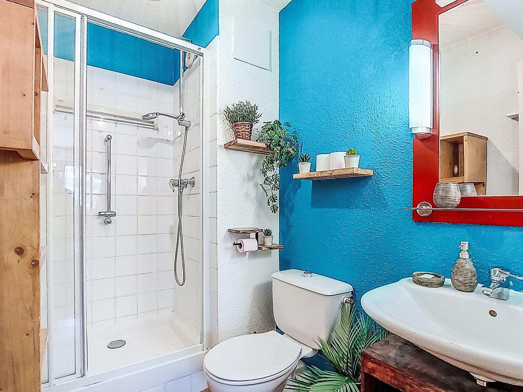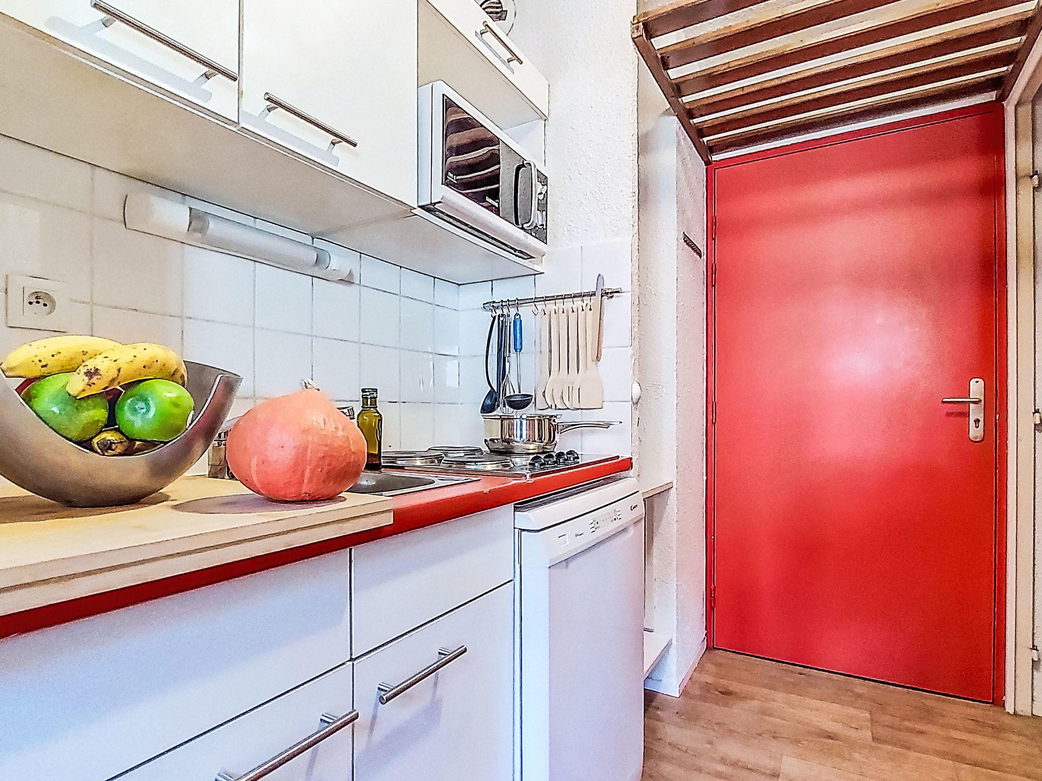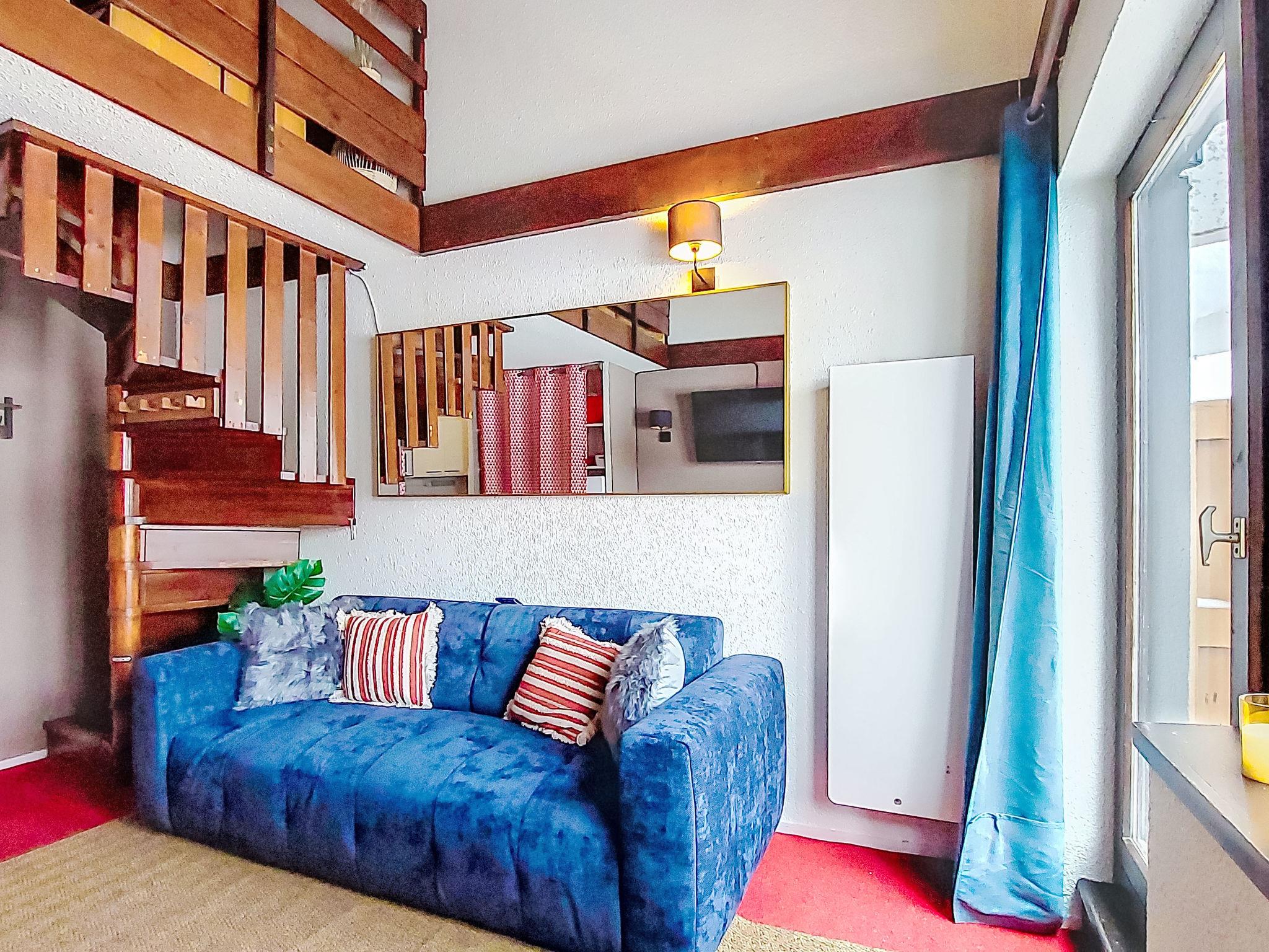 "Résidence Les Olympiades B 723", 3-room apartment on 7th floor, north facing position. Beautiful and cosy furnishings: living/dining room with 1 double sofabed (1 x 160 cm, length 200 cm), dining table and TV (flat screen), electric heating. Exit to the balcony, north facing position. Entrance hall with kitchen corner. Kitchenette (4 hot plates, dishwasher, toaster, kettle, electric coffee machine, Capsules for coffee machine (Nespresso) extra, combination microwave). Bathroom, sep. WC. Upper floor: (spiral staircase), 1 large double bedroom with curtain, Dressing room with 1 french bed (1 x 140 cm, length 190 cm), electric heating. Sleeping alcove with 1 x 2 bunk beds (80 cm, length 190 cm). Entrance hall with 1 bed (80 cm, length 190 cm). Shower/WC. Carpet. Small balcony 3 m2, north facing position. Balcony furniture. Very beautiful view of the mountains, the valley, the ski run and the resort. Facilities: safe, hair dryer. Internet (WiFi, extra). Please note: non-smokers only. Smoke alarm. Air Fryer Ninja Double. Offer by a private individual according to Art. 155, IV of CGI. 73257010820HT