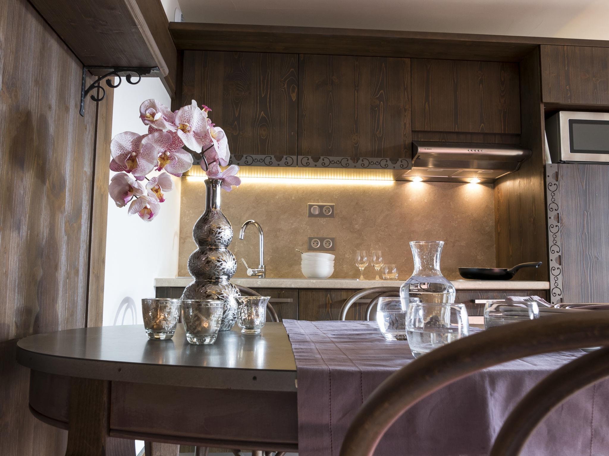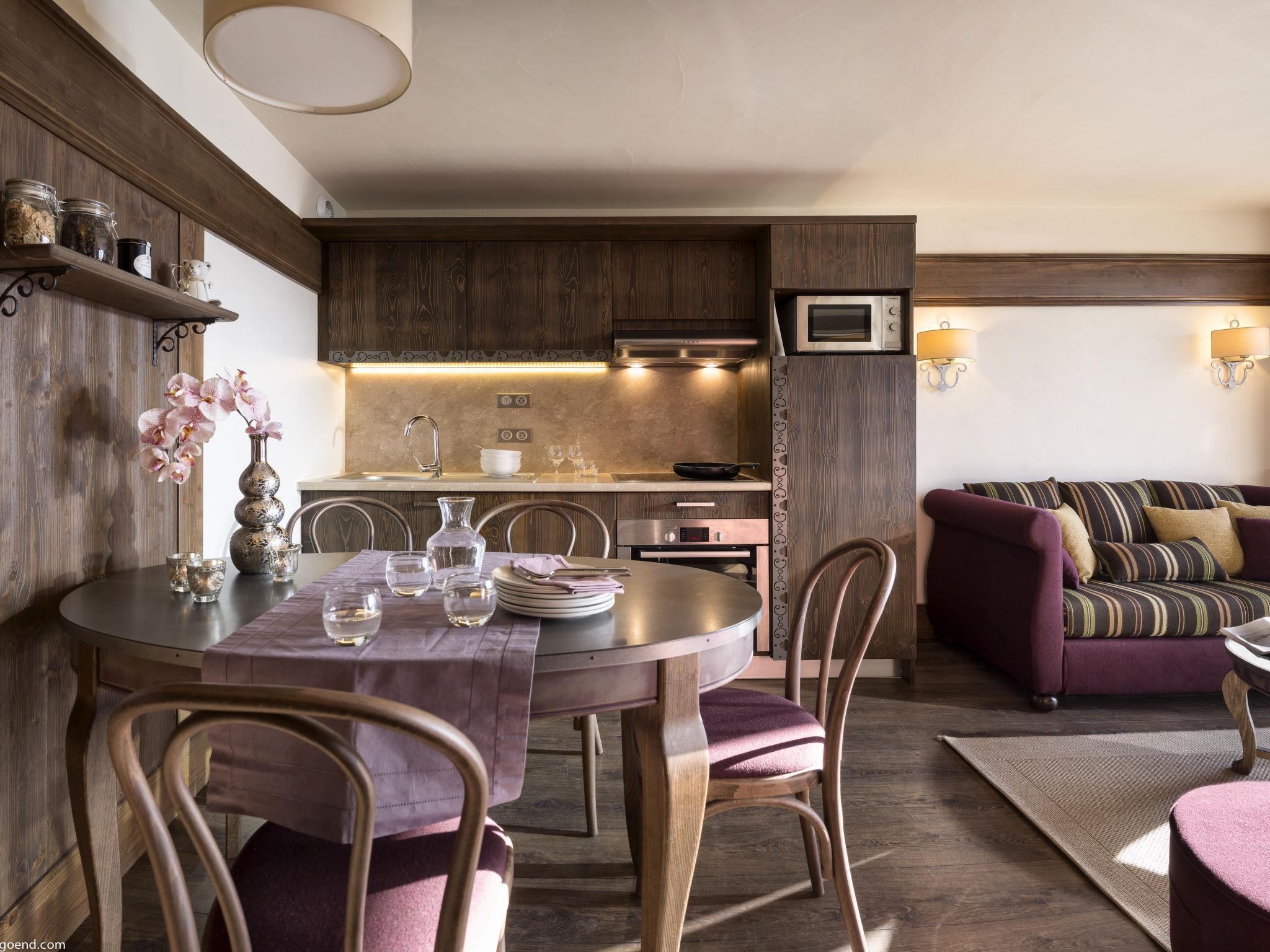 "Le Hameau du Kashmir", 3-room apartment 45 m2. Comfortable and tasteful furnishings: living room with dining table and TV. Exit to the balcony. 1 room with 1 french bed. 1 room with 2 beds. Open kitchen (oven, dishwasher, 4 ceramic glass hob hotplates, toaster, kettle, microwave, freezer, electric coffee machine). 2 baths or showers/WC. Heating. Balcony. Very beautiful view of the mountains. Facilities: safe, hair dryer. Internet (WiFi, free). Please note: non-smokers only. Maximum 1 pet/ dog allowed. The property is one of a type of property or apartment. Note: Both bedrooms each with direct access to bath/WC or shower/WC. This flat type can also be laid out on 2 levels.