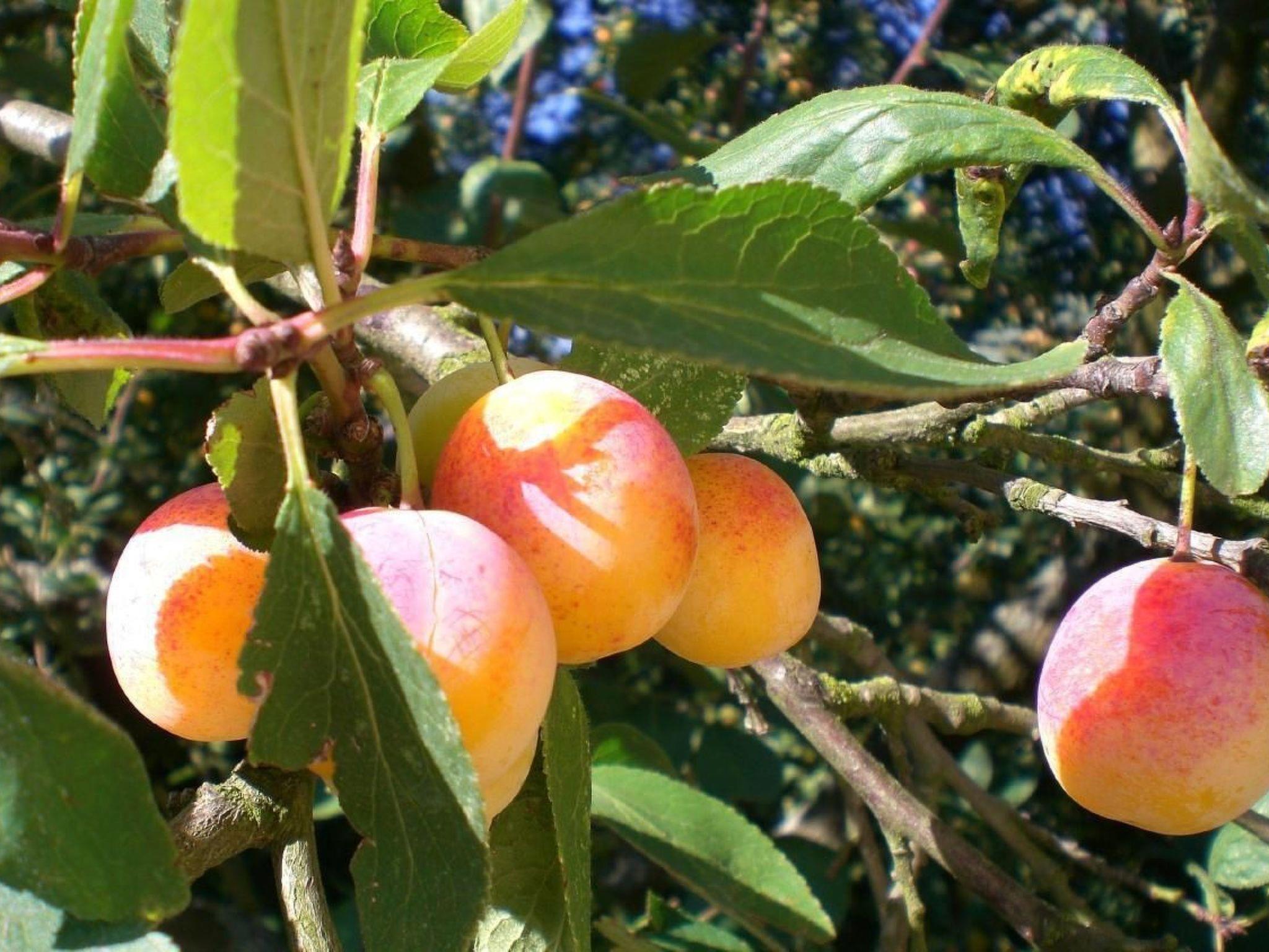 There is a large garden with fruit trees surrounded by hedges between the house and the residential street. There is a parking space for 2 vehicles at the entrance.