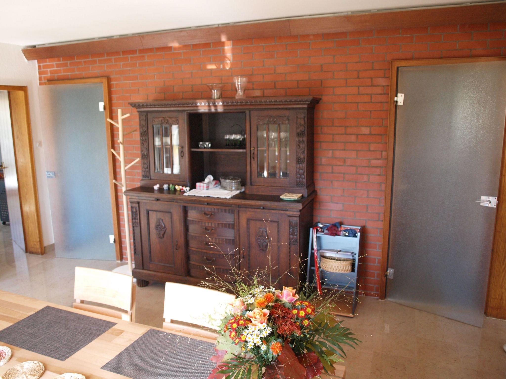 The light-flooded living room leads onto a large summer terrace where you can also enjoy the evening sun. The sofa bed for two can be used in addition to the bedrooms. On cold days, a modern wood-burning stove provides additional warmth alongside the central heating.
