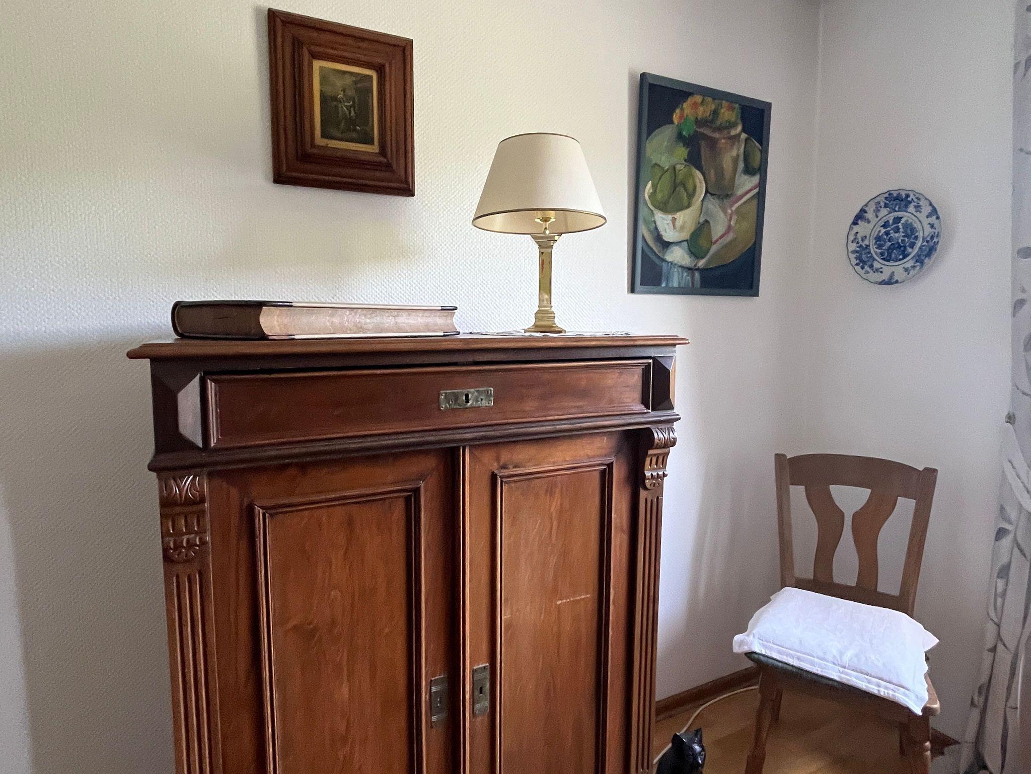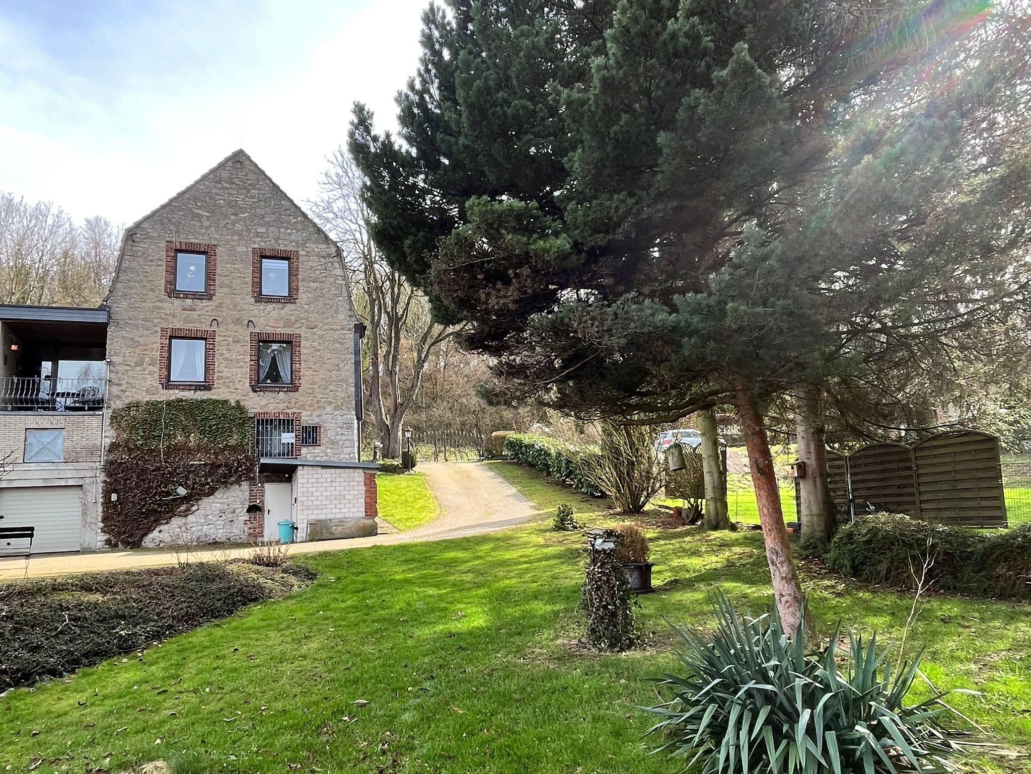 Die Wohnung befindet sich in einem historischen Bruchsteinhaus mit einem großen Anbau.