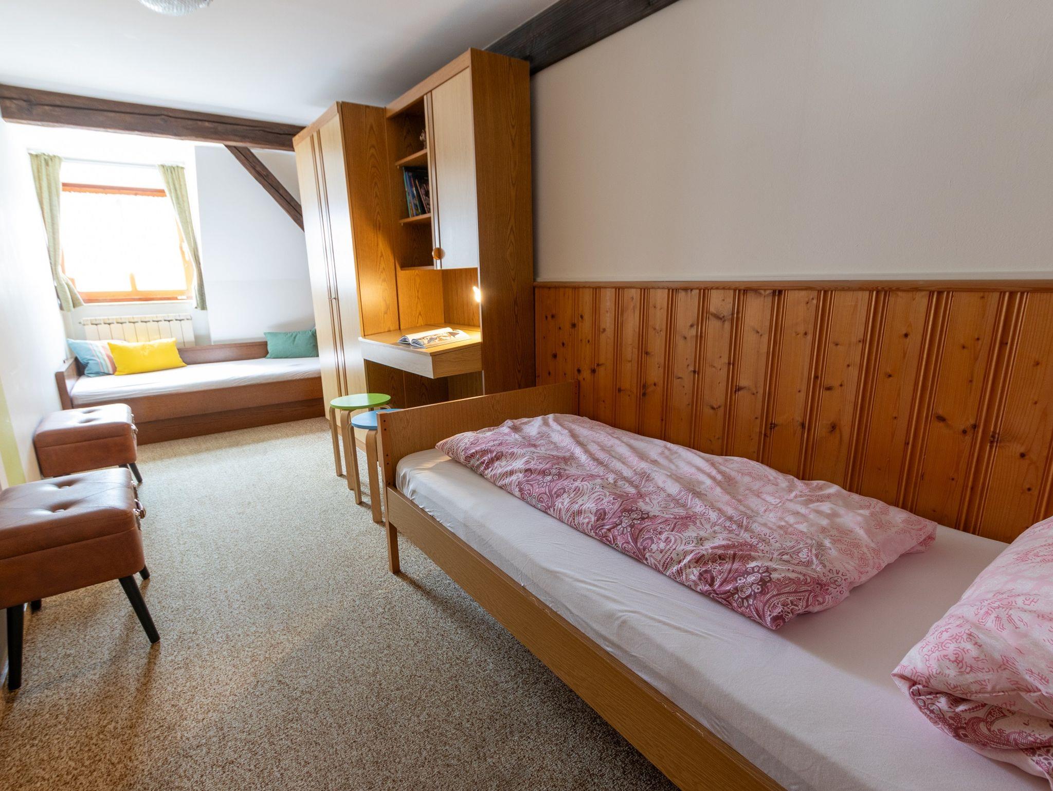Die Ferienwohnung verfügt über 2 Schlafzimmer mit einem Doppelbett und zwei Einzelbetten.
