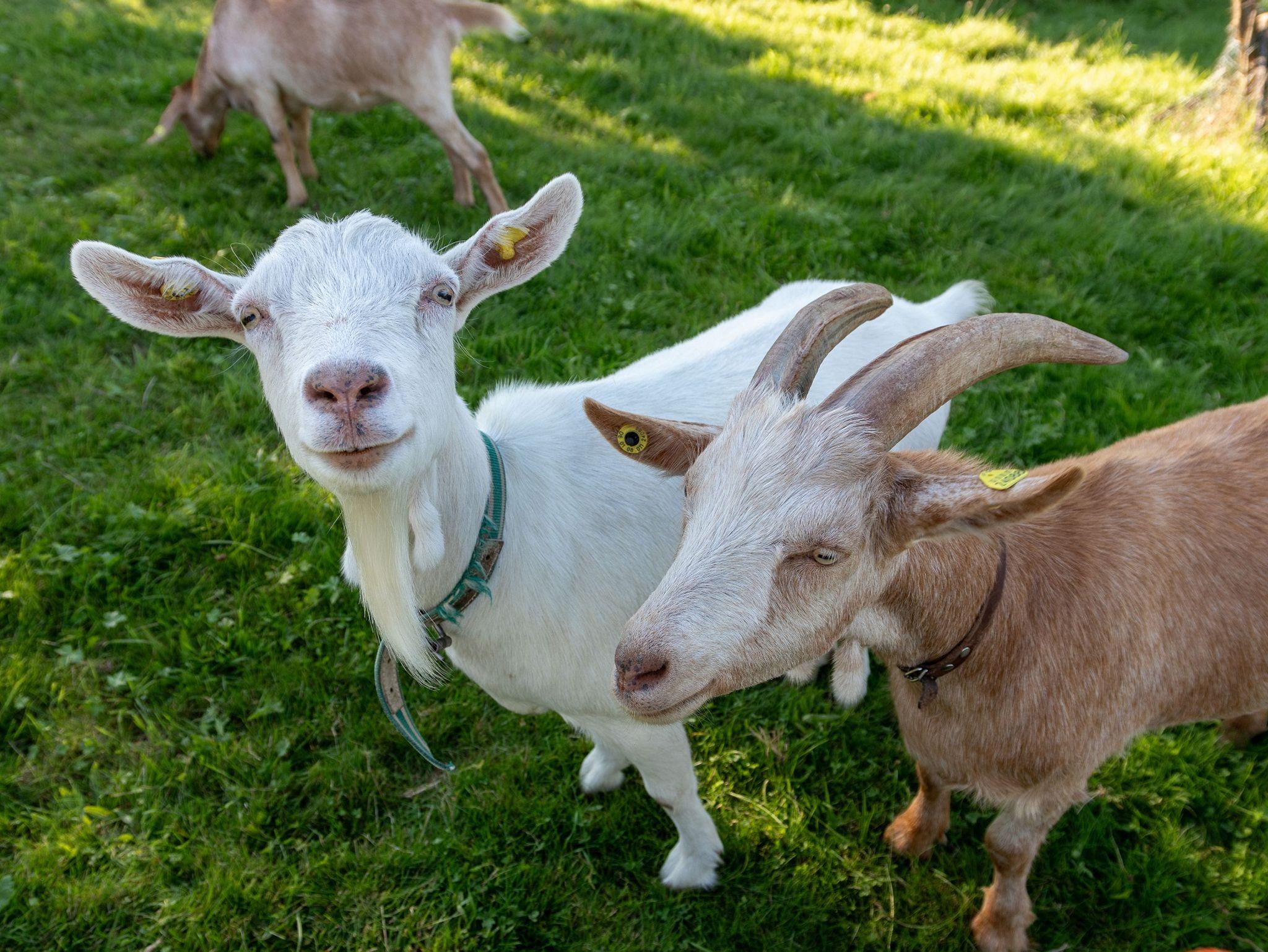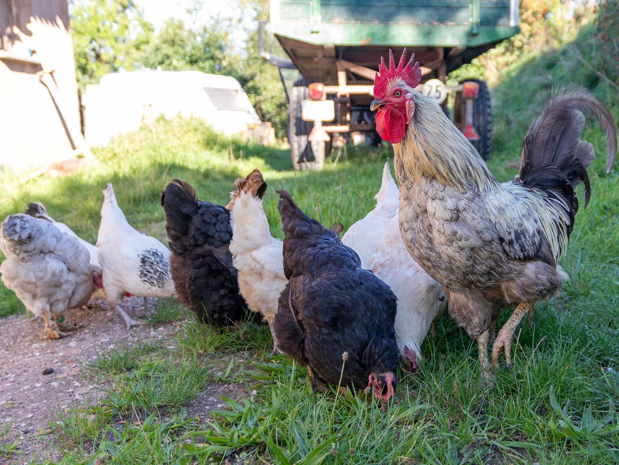 Am Hof leben auch Ziegen und zwei Hähne mit ihren Hühnern.