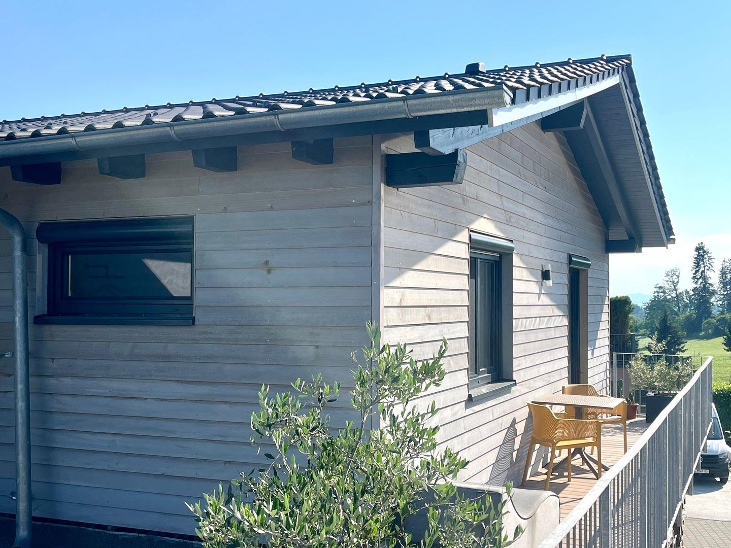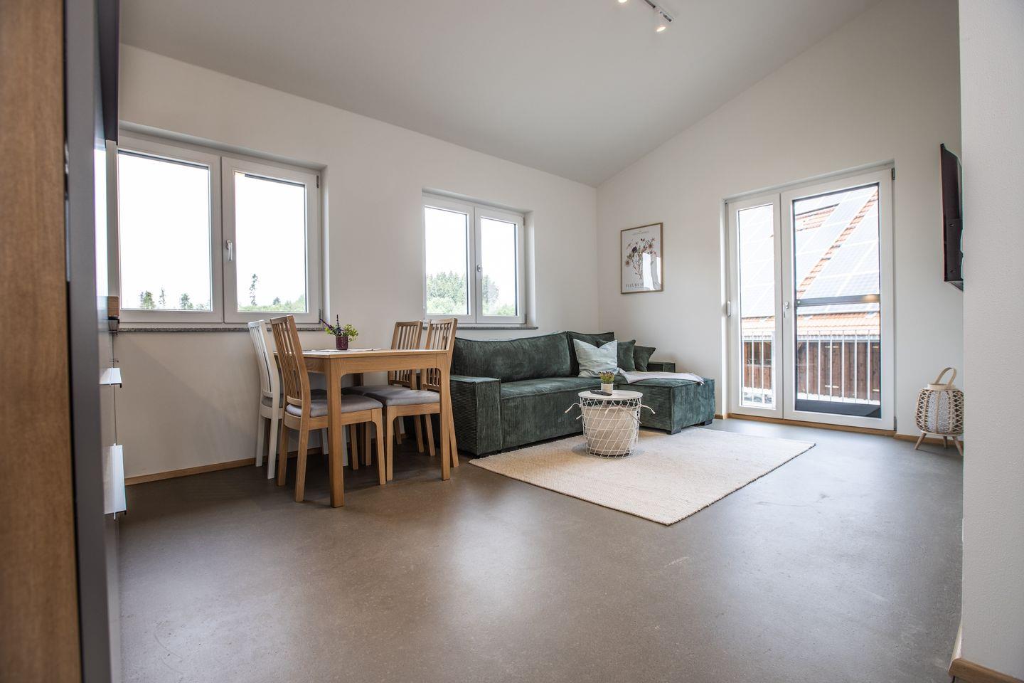 Die 2024 hochwertig ausgebaute Ferienwohnung bietet auf ca. 45 m² modernen Komfort und überzeugt mit einem großzügigen Balkon, ausgestattet mit Sitzmöbeln und Sonnenliege. Die hellen Räume und die großen Panoramafenster ermöglichen einen fantastischen Blick in die idyllische Umgebung.