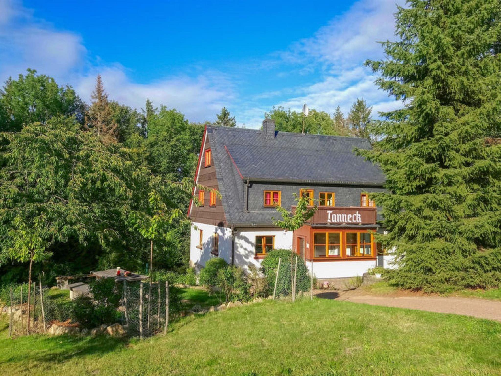 Das Ferienhaus Tanneck liegt in sonniger, sehr ruhiger Lage am Waldrand zwischen Schellerhau und Bärenfels. Auf einem weiträumigen 3000 m2 Wiesengrundstück, befinden sich ein Sitzplatz mit einer Biertischgarnitur (inkl. Grill) sowie eine Terasse direkt am Haus. Für 5 PKW steht ein Privatparkplatz zu Verfügung (20m).
