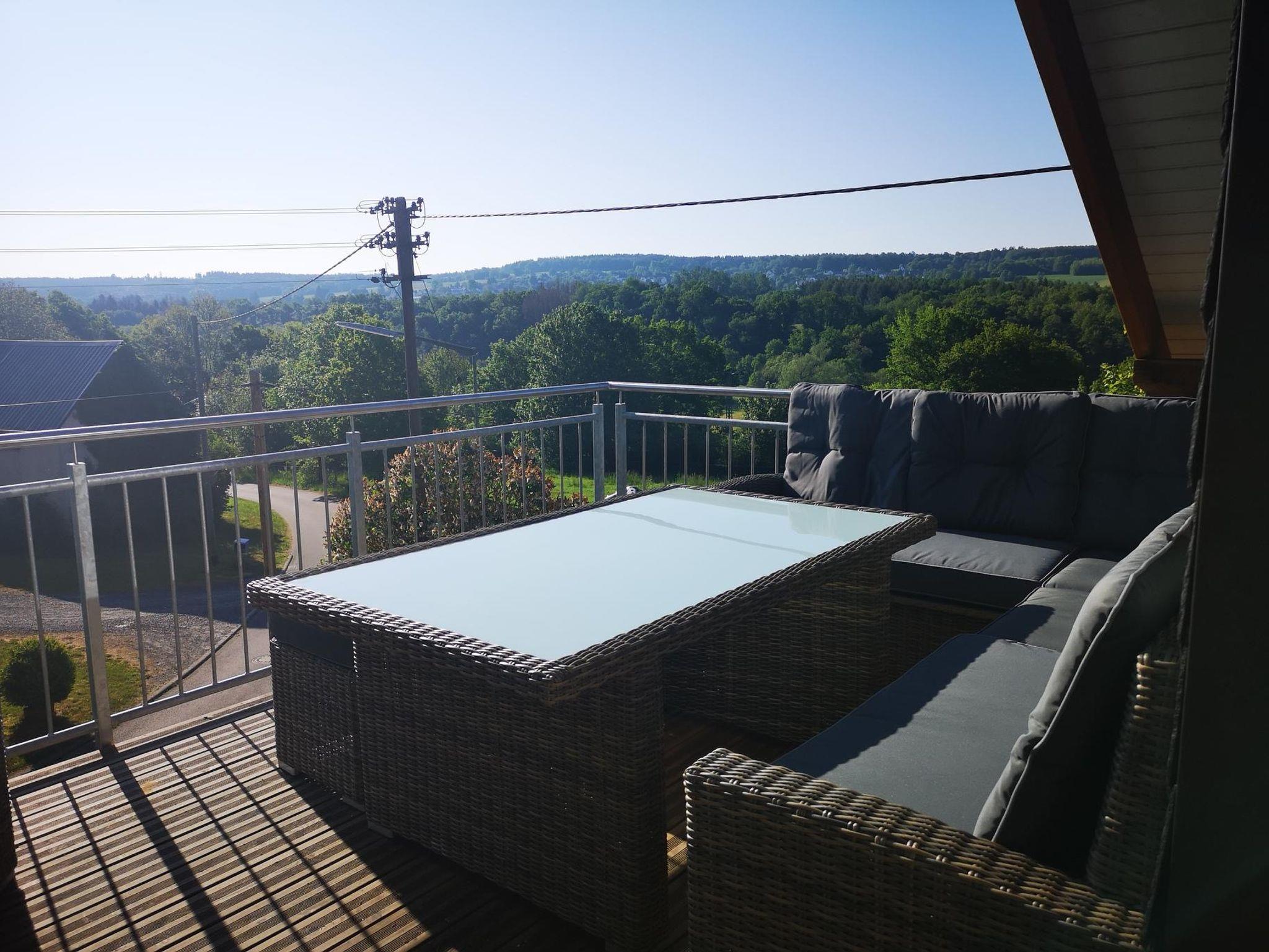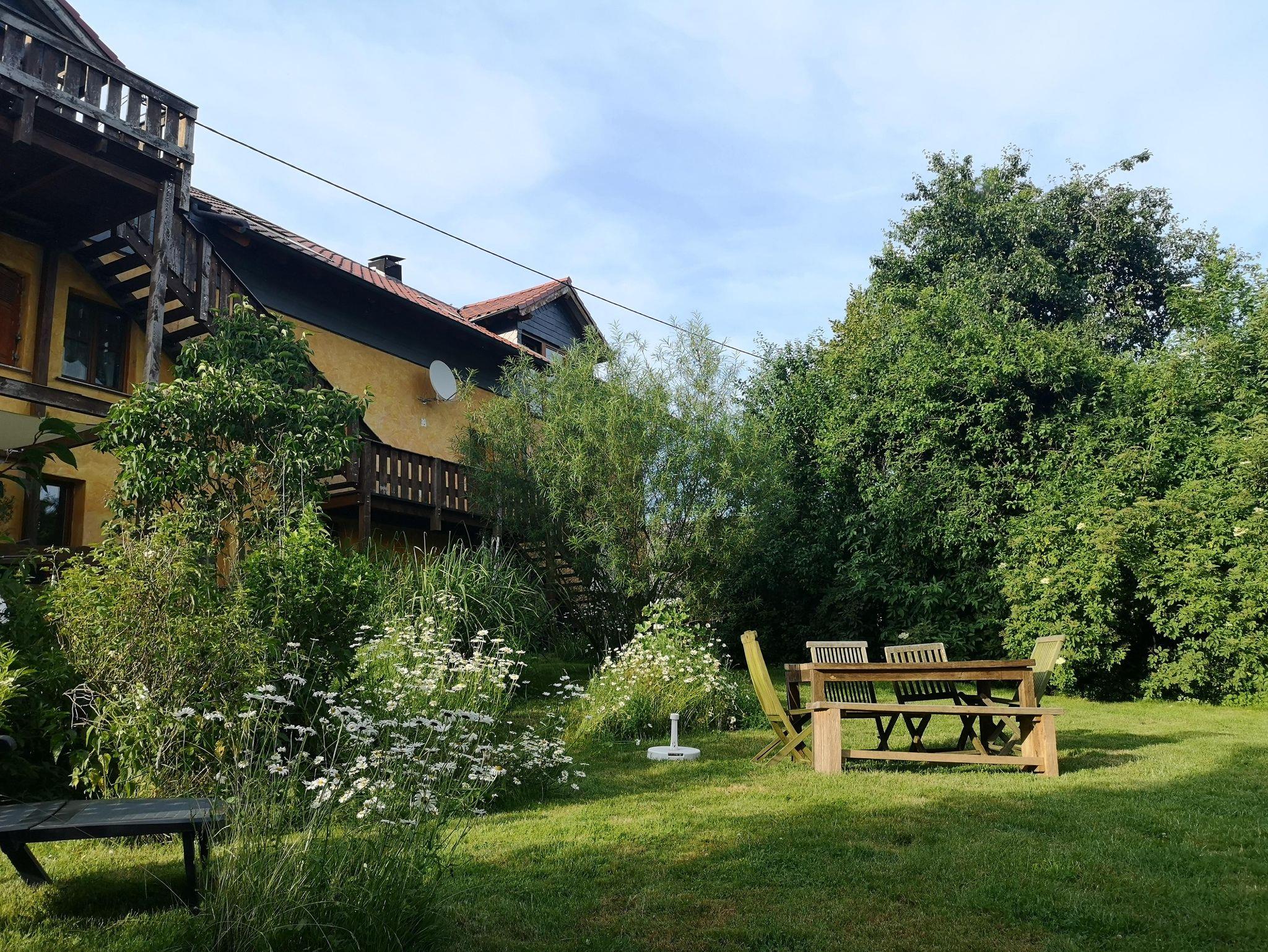 An den Küchenbereich offen angrenzend befindet sich der Essbereich. Hier können Sie auf den 6 Stühlen an dem großen, massiven Eichentisch Platz nehmen, um gemeinsam zu essen, zu spielen oder sich einfach nur zu unterhalten. Der Esstisch ist bei Bedarf auf ca. 3 m ausziehbar. Vom Essbereich aus haben Sie durch die bodentiefen Fenster einen wunderbaren Blick auf die angrenzenden Wiesen und Wälder sowie den Offenstall und das Paddock für die Pferde.