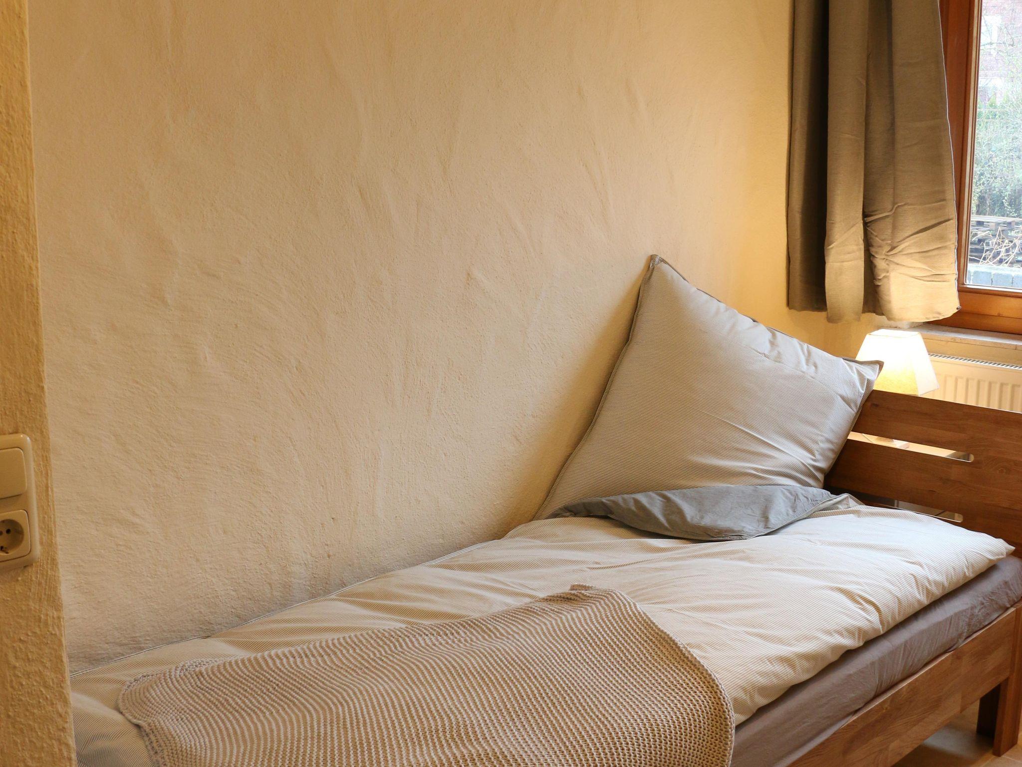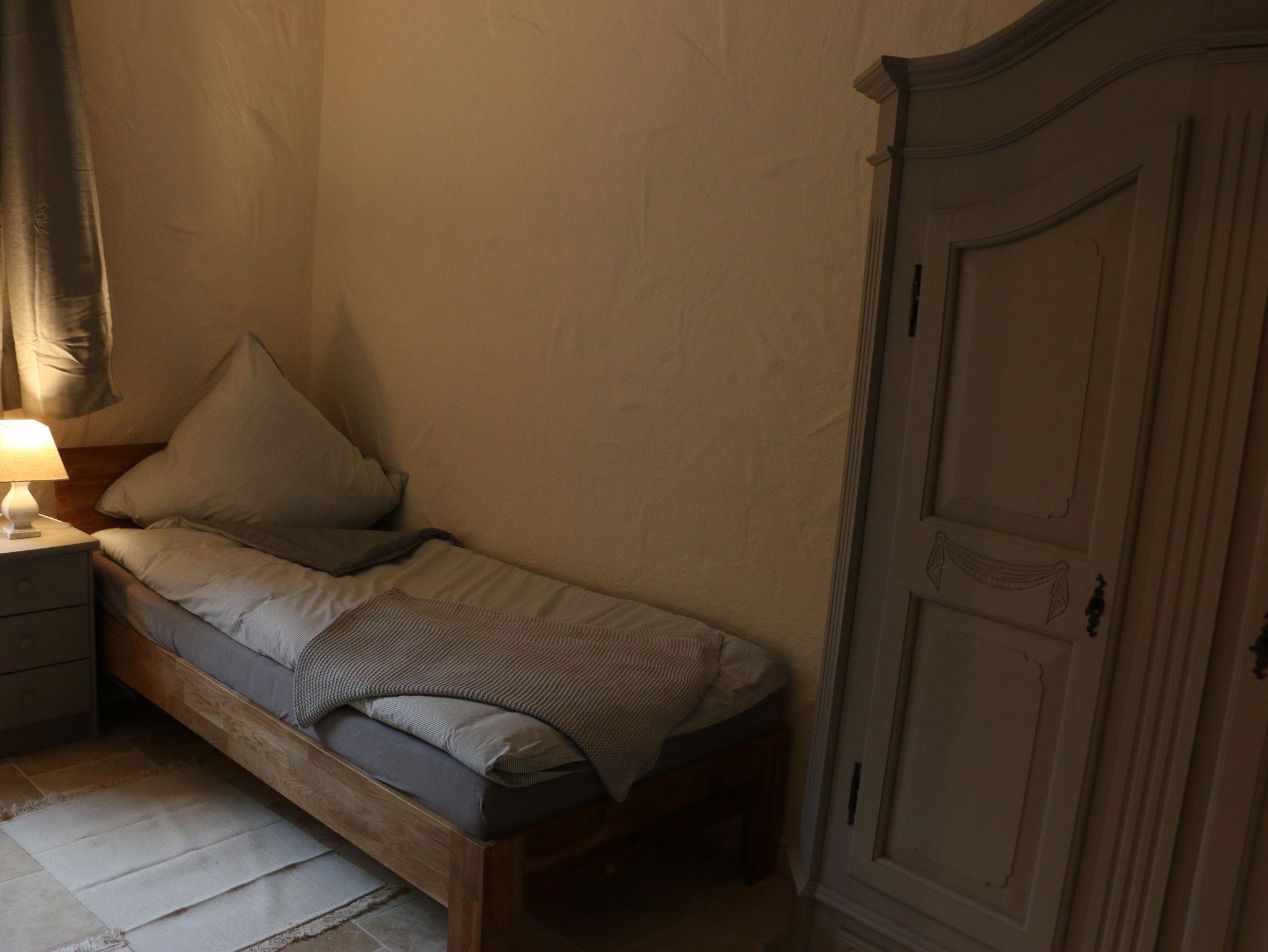 Das kleinere Schlafzimmer haben wir mit 2 Einzelbetten in einer Größe von jeweils 90 x 200 m ausgestattet. Diese können bei Bedarf jedoch auch zusammengeschoben werden, so dass auch hier eine Art Doppelbett zur Verfügung steht.