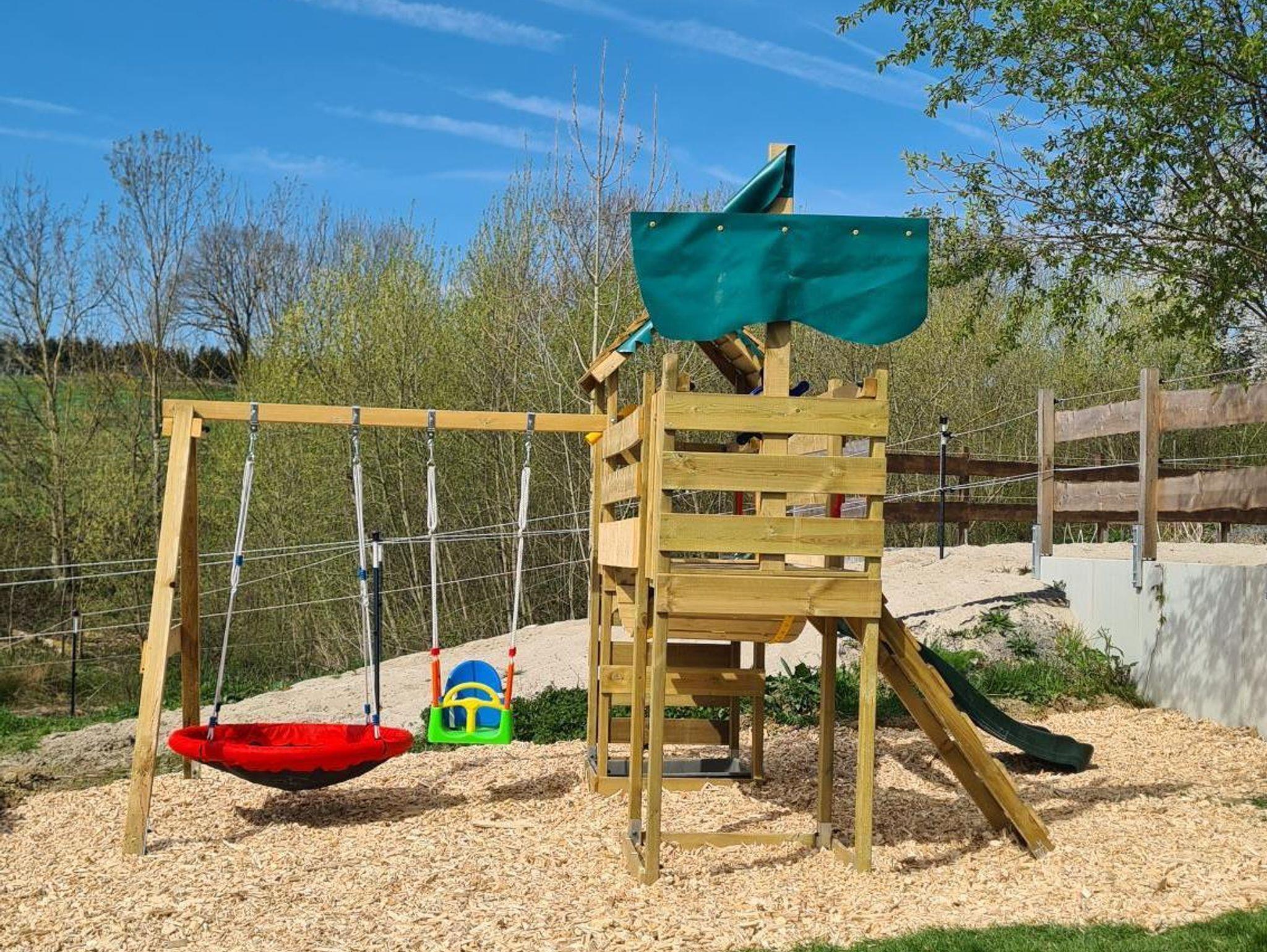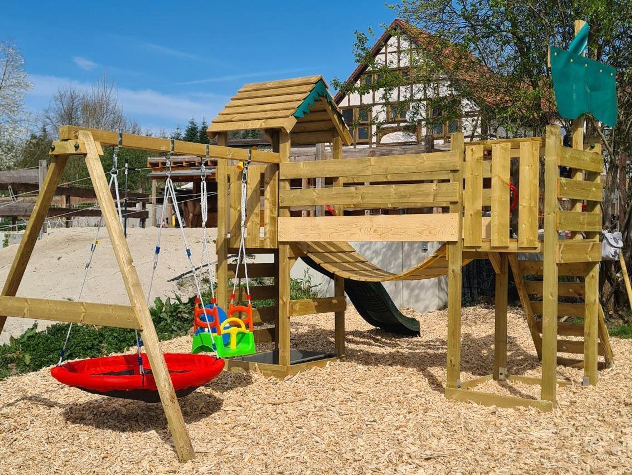 ... auch hier ist bzw. war der Name Programm, denn der Gebäudeteil des Lindenhofes, in dem sich nun unsere Ferienwohnung „Heuboden“ befindet, diente in früheren Zeiten als Lagerraum für das frisch abgeerntete und getrocknete Heu. Der Heuboden befand sich unmittelbar über den ehemaligen Stallungen, war bis unter das Dach hin offen und erstreckte sich somit über 2 Geschosse. Das Heu wurde vom Ladewagen aus mittels Gabeln bzw. später dann mittels Gebläse auf den Heuboden transportiert.