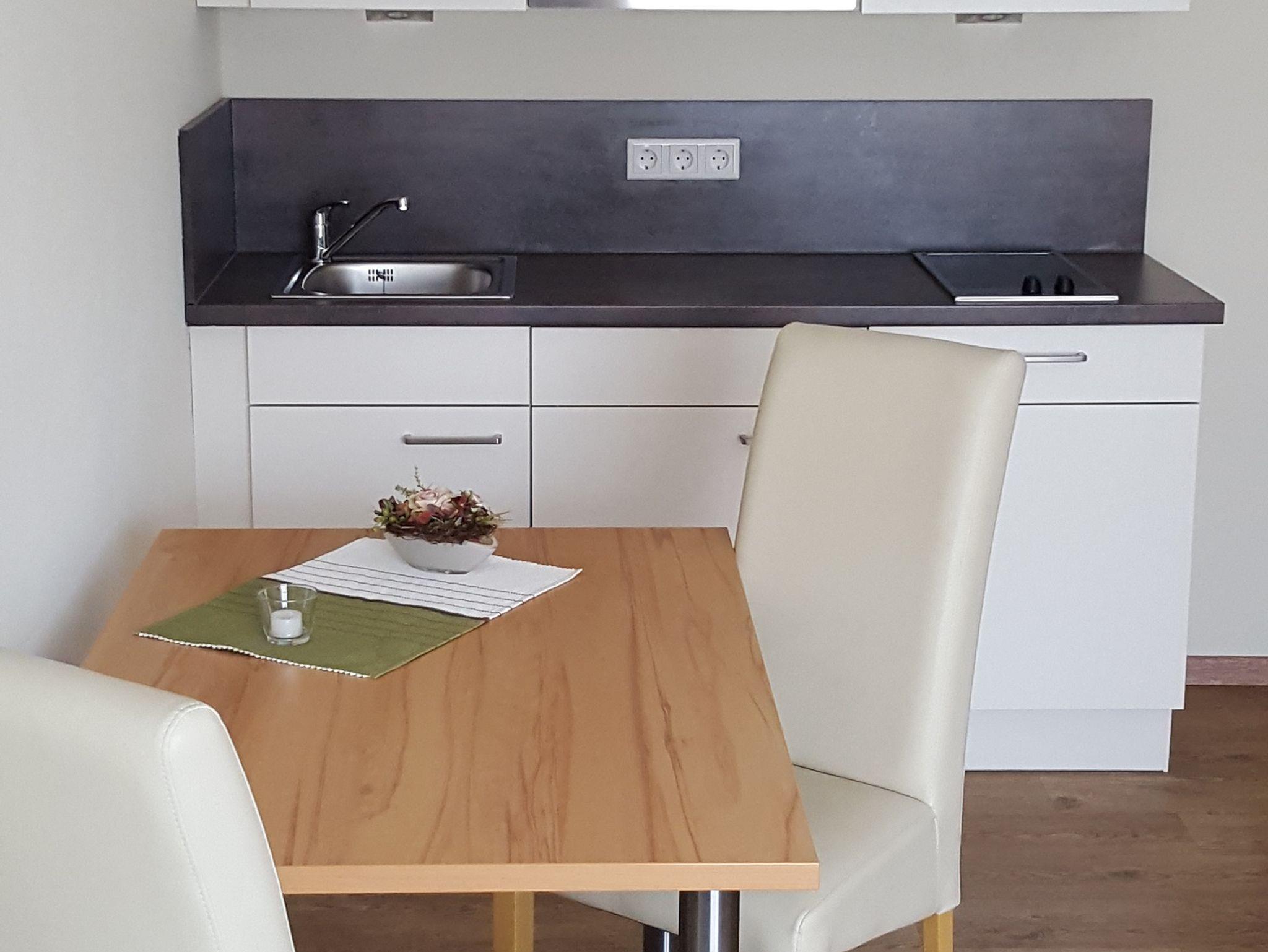 Es steht Ihnen eine gut ausgestattete Küchenzeile mit 2er Ceranfeld, Spüle, Mikrowelle, Kaffeemaschine, Wasserkocher und Kühlschrank zur Verfügung. Ein Esstisch und zwei Stühle sind vorhanden. Das Doppelbett kann auch als Einzelbetten gestellt werden. Bei Buchung bitte angeben wie sie es wünschen. Das Badezimmer ist mit Dusche und WC eingerichtet.