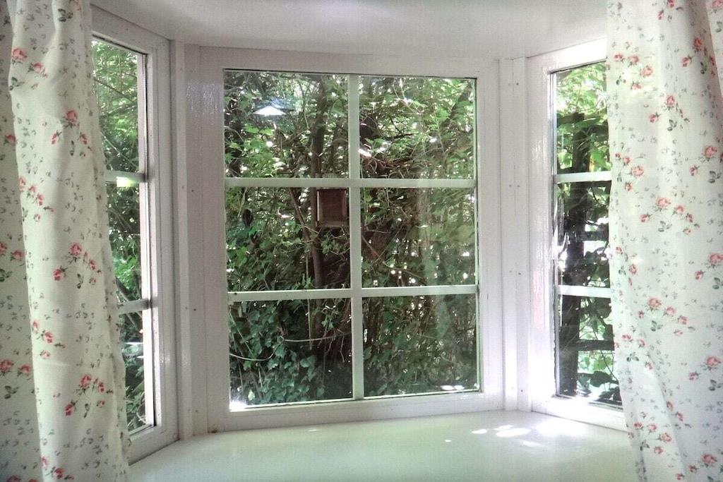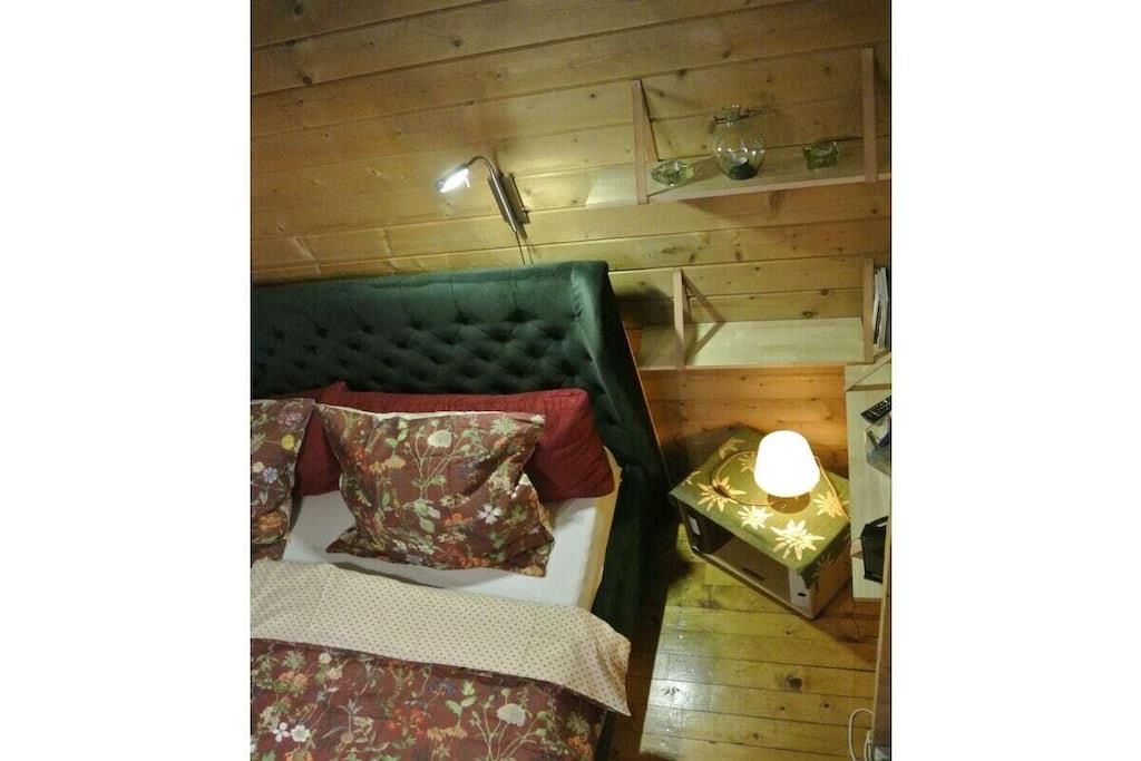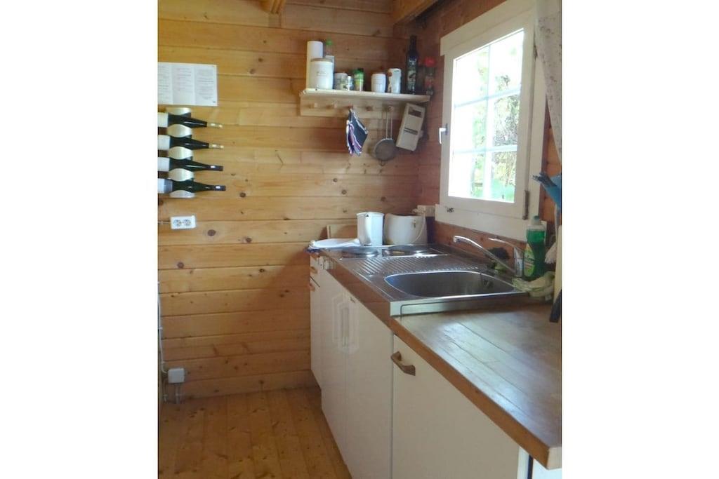 Unique red wooden house in the middle of a garden with flowers and trees, here you can look forward to spring. On the banks of the Moselle and close to the cycle path.