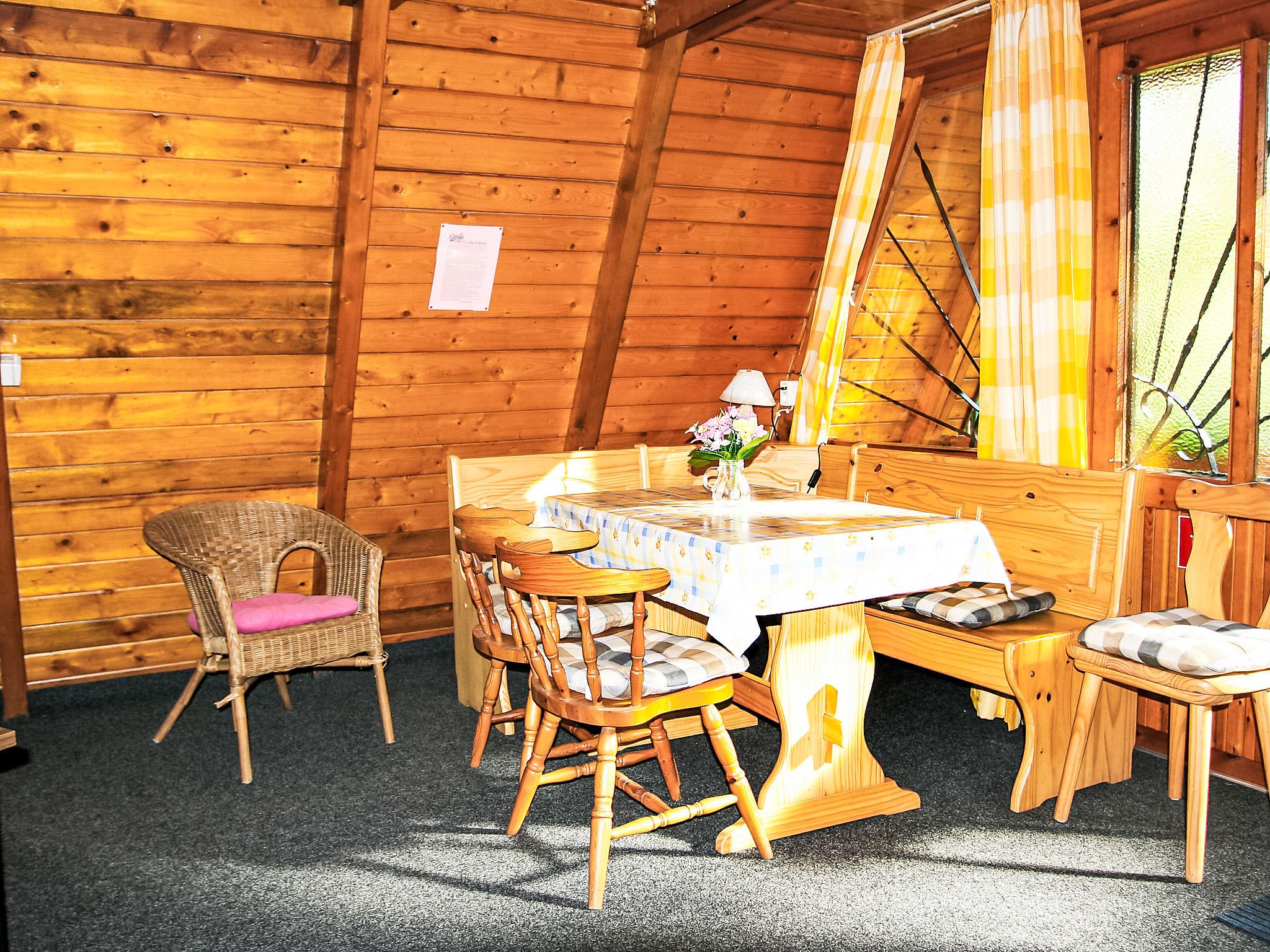 Cosy timber house "Nepumuk". On the outskirts, 1 km from the centre of Arendsee, 200 m from the lake, 200 m from the beach, in the woods. For shared use: property (fenced). Table tennis, children's playground (swing). In the complex: washing machine (extra), tumble dryer (for shared use, extra), bicycle rental. Motor access (via unmade road). Public parking 250 m extra. Grocery 500 m, supermarket 1 km, restaurant 300 m, bus stop "Arendsee, Strandbad" 400 m, railway station "Seehausen" 18 km. Minigolf 500 m. Please note: car recommended. Groups of teenagers on request only. The owner lives on the same property. The photograph shows a typical example. Neighbourhood highly sensitive to noise. Quietness and good behaviour expected. The total of 7 wooden roof holiday homes are located in a small holiday complex, 200 m away from the Arendsee lake, which offers a beach, boat rentals and steamboat trips (extra).