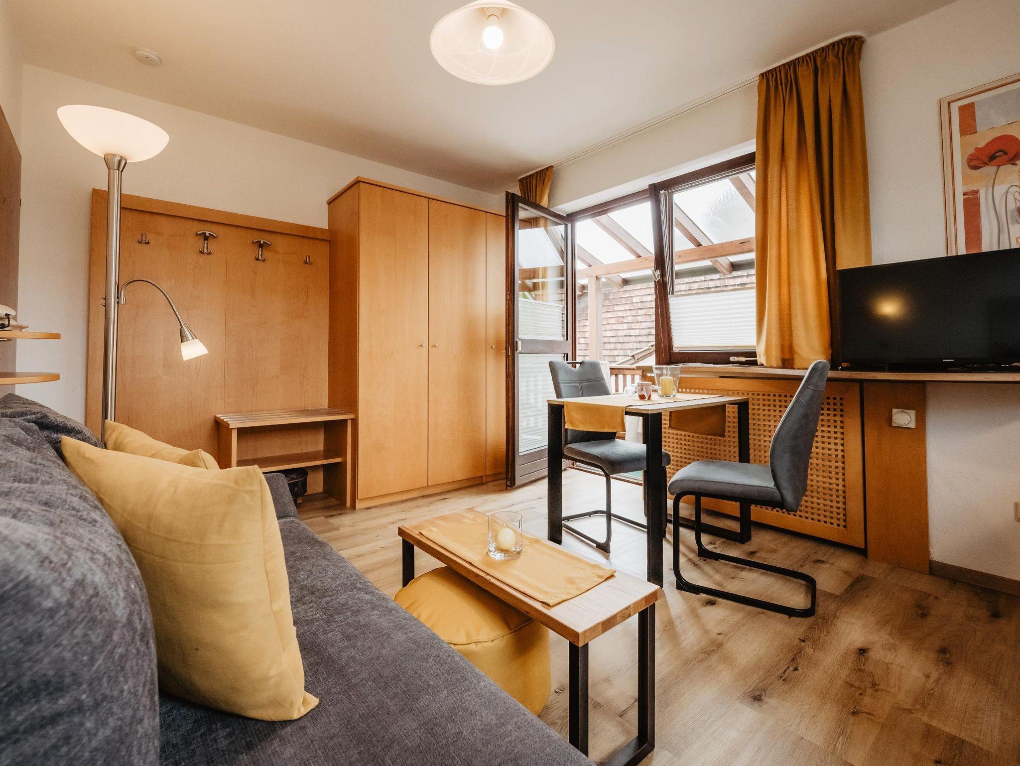 Gemütliches, ruhiges Zweizimmerappartement mit ca. 35 qm für 2 Personen im 1. Stock. Der überdachte Süd-West-Balkon lädt besonders in den Nachmittags- und Abendstunden zum Entspannen ein. Geräumige Küchenzeile, kostenloses W-LAN, SAT-TV, sowie eine gemütliche Sitzgruppe sorgen für einen rundum entspannten Aufenthalt.