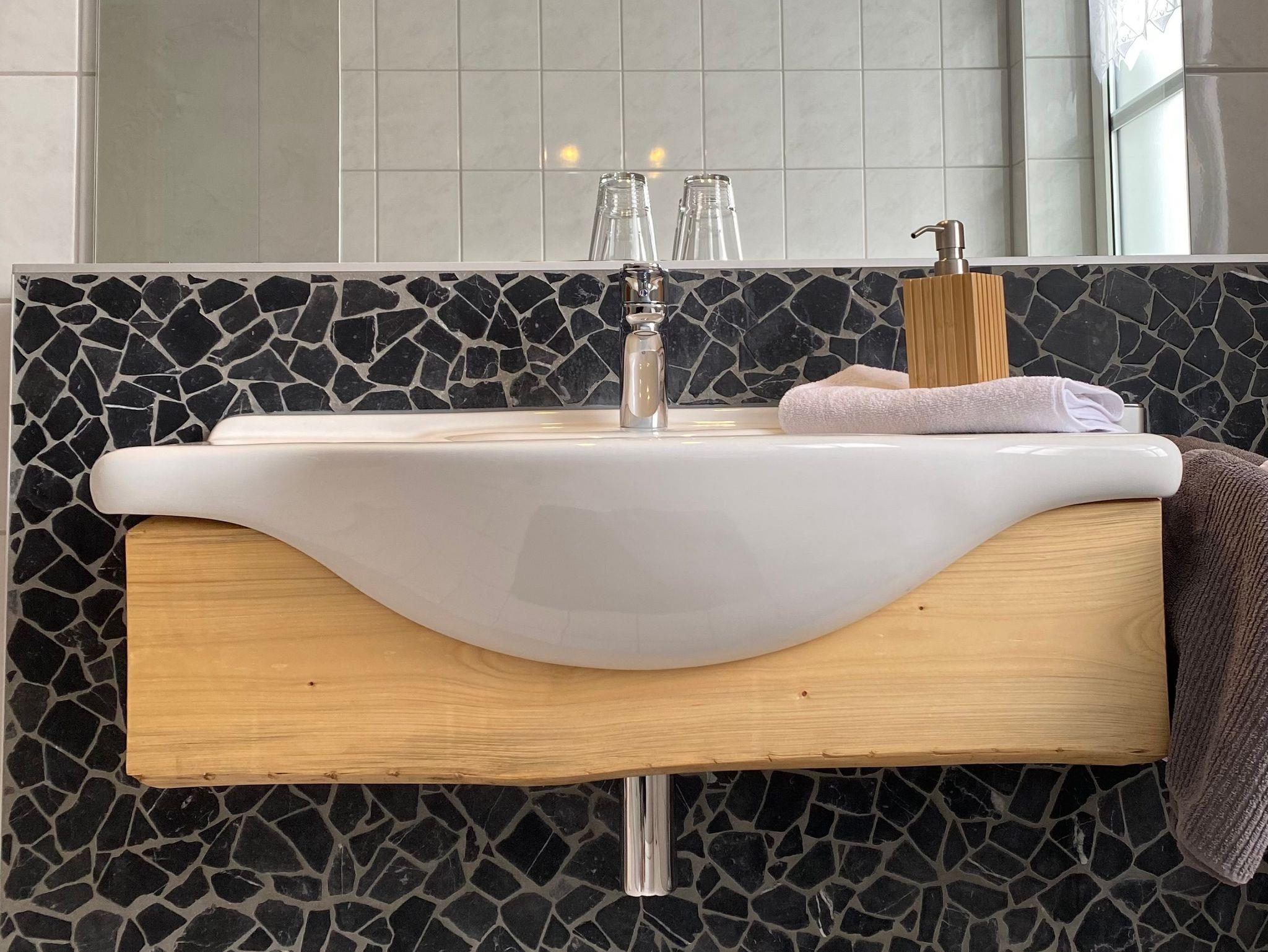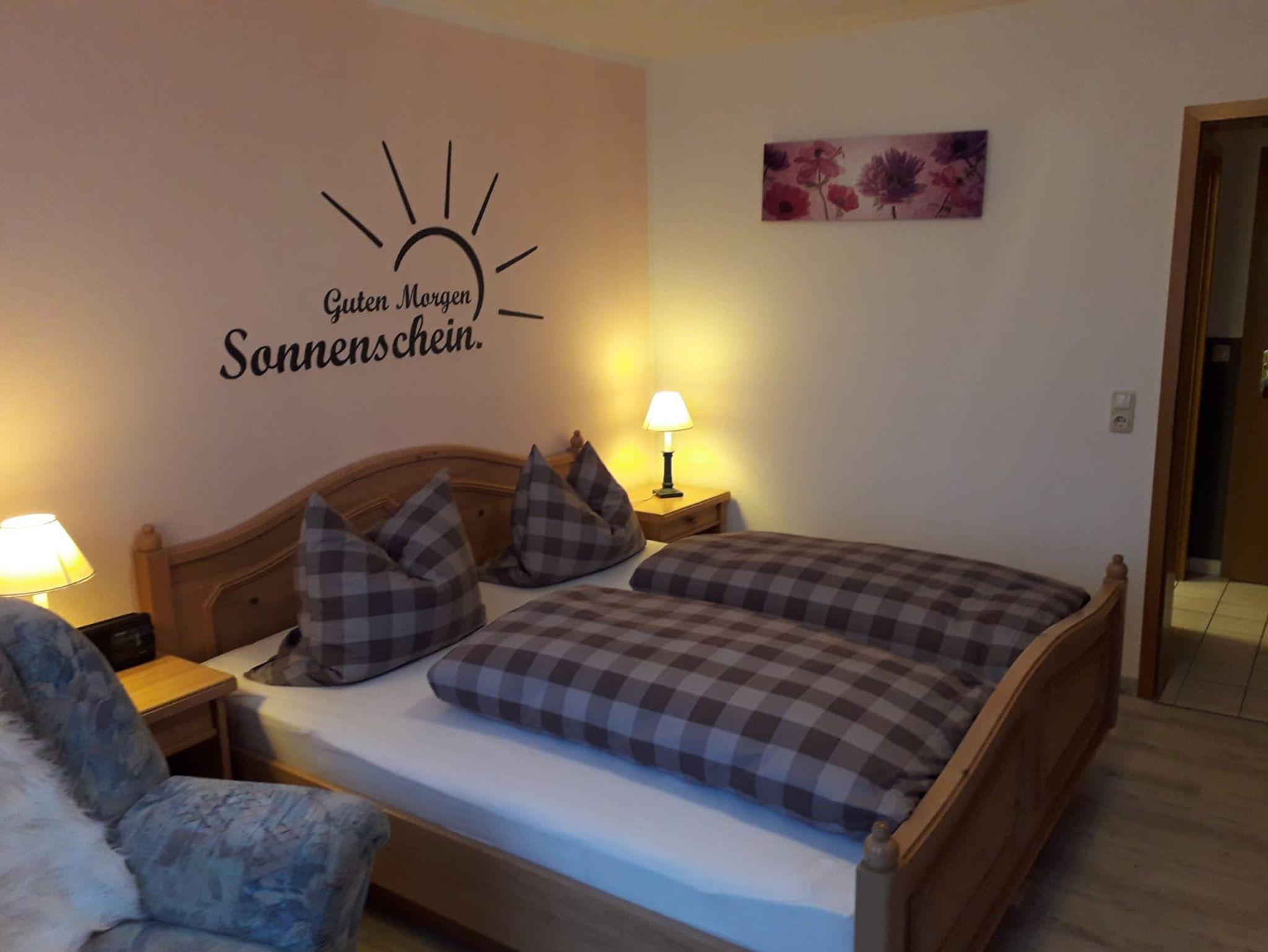 70qm zum Wohlfühlen,für 2-5 Personen, Die Küche mit gemütlichem Wohnraum und Essecke,lässt keine Wünsche offen. Ein E-Herd mit Cerankochfeld, Kühlschrank mit Gefrierfach,Geschirrspüler, Mikrowelle,Toaster, Kaffeemaschine, Eierkocher,Wasserkocher, komplett ausgestattet mit Geschirr und Kochgeschirr für 5 Personen. Zwei großzügige Schlafräume mit jeweils einem Doppelbett und einem Beistellbett , sowie 2 moderne Bäder mit 2 mal Dusche/ WC tragen zum Wohlfühlen bei. Unsere Ferienwohnung Bachwiesenblick oben ist liebevoll mit Naturholz Möbel eingerichtet und hat einen großen Balkon.