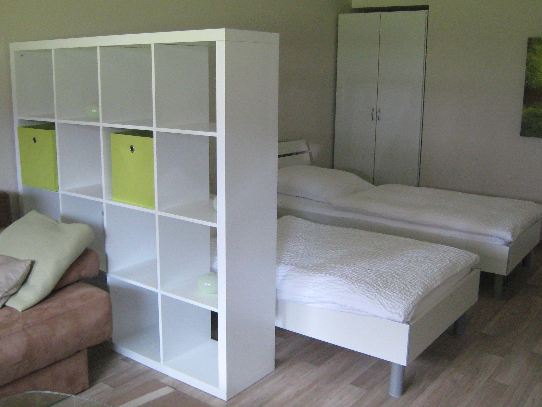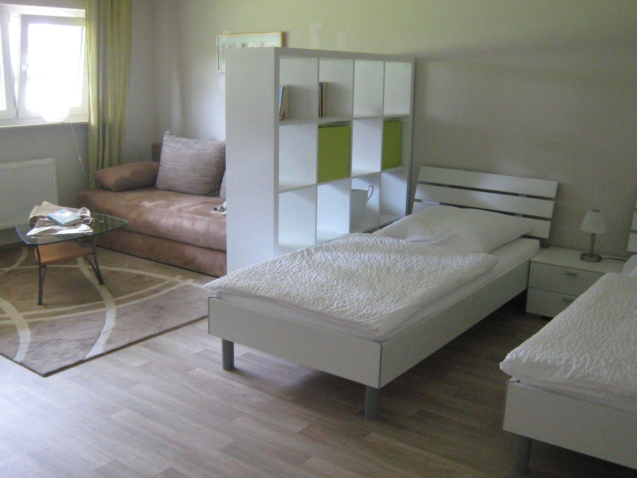 Im Wohn-/Schlafbereich befinden sich zwei getrennt stehende Betten, die bei Bedarf zu einem komfortablen Doppelbett zusammengestellt werden können. Zusätzlich bietet ein gemütliches Schlafsofa (1,80 m breit) Platz für bis zu zwei weitere Personen.