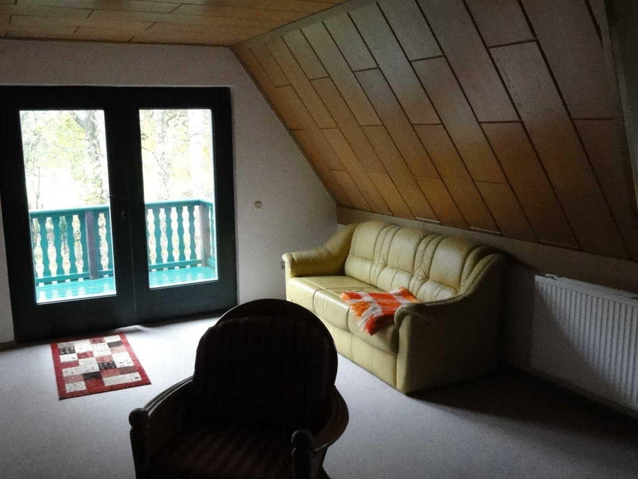 Diese geräumige Ferienwohnung befindet sich im Anbau eines Einfamilienhauses und ist über eine äußere Wendeltreppe erreichbar. Vorhanden sind zwei Zimmer, ein Wohnraum mit Sitzecke, TV und einer Couch und ein Schlafzimmer mit Doppelbett. Weiterhin gibt es eine Pantryküche und einem kleinen Esstisch. Wohnzimmer, Schlafzimmer und Küche sind Durchgangszimmer. Der Lichteinfall wird durch schöne Gaubenfenster unterstrichen.