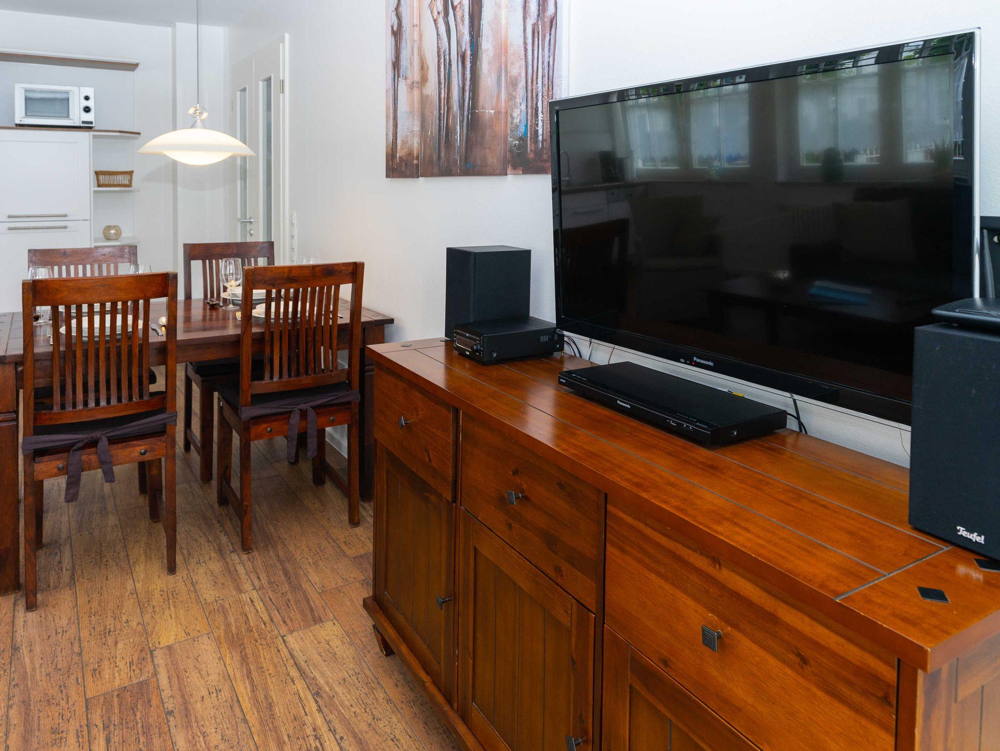 Im Kellergeschoss befindet sich eine gemeinschaftlich genutzte Sauna, so dass auch für ein Wellness-Angebot gesorgt ist. Ein der Wohnung zugeteilter Stellplatz für Ihren Pkw befindet sich direkt am Gebäude. Viele weitere Annehmlichkeiten wie TV, DVD-Spieler, Stereoanlage, kostenloser Internetzugang über WLAN und eine Gemeinschaftswaschmaschine vervollständigen Ihr Urlaubsangebot. Ein Kinderhochstuhl und ein Kinderreisebett sind bei Bedarf gegen eine geringe Gebühr beim Wohnungsverwalter erhältlich.