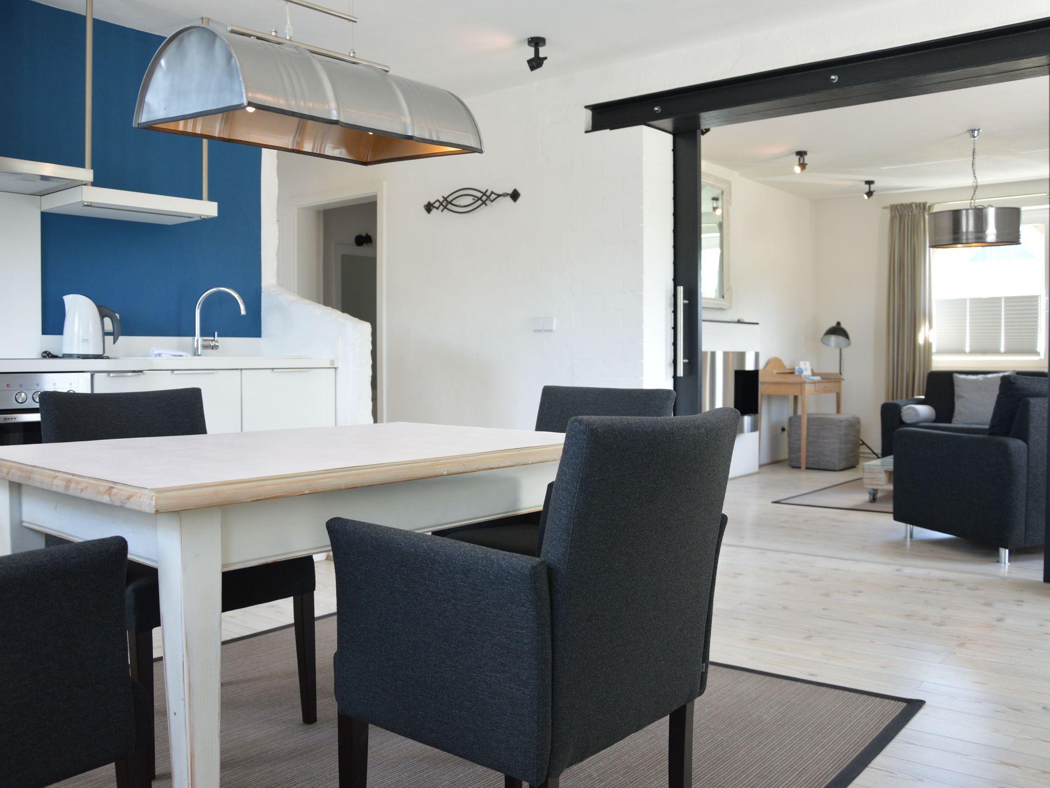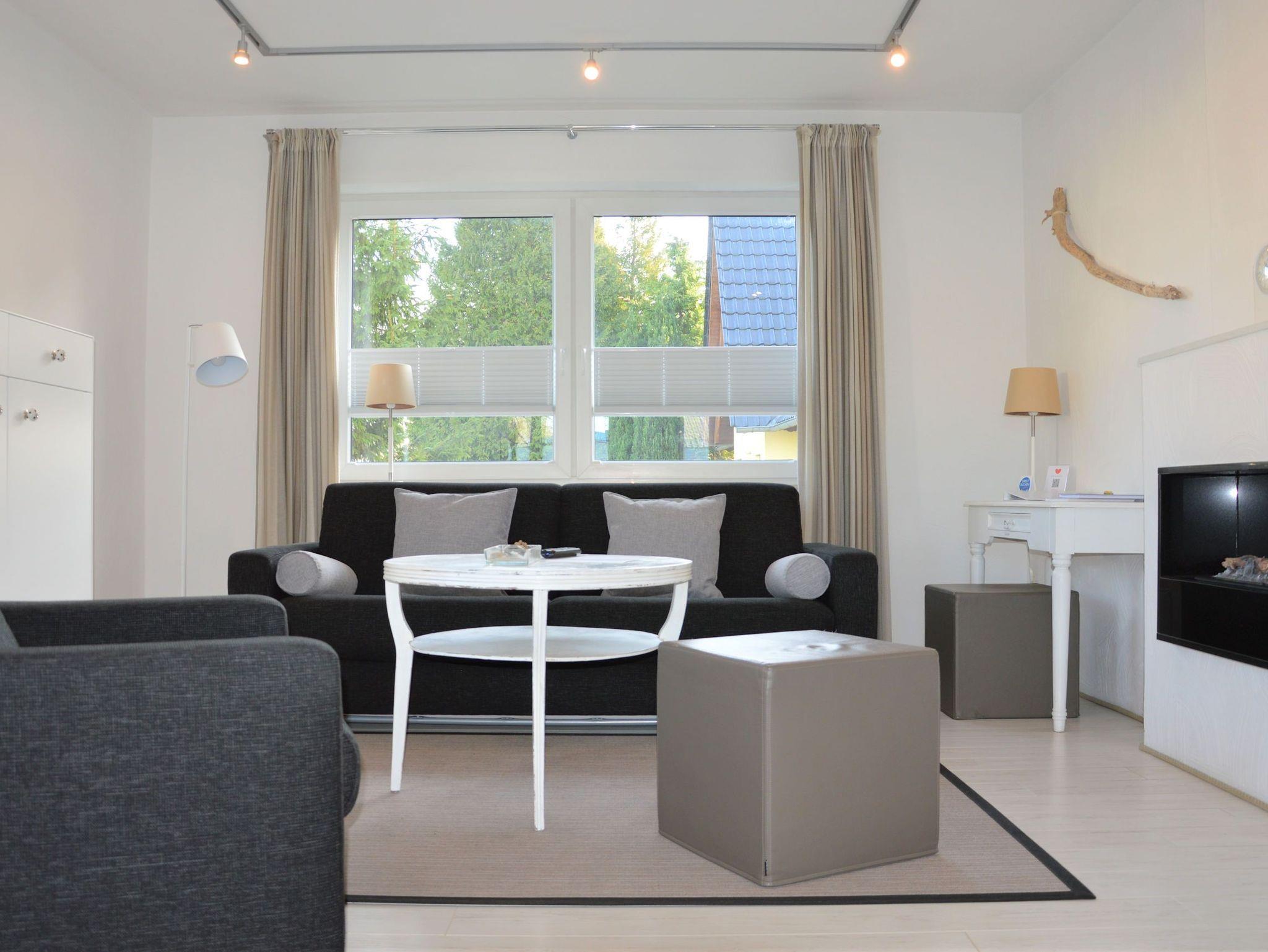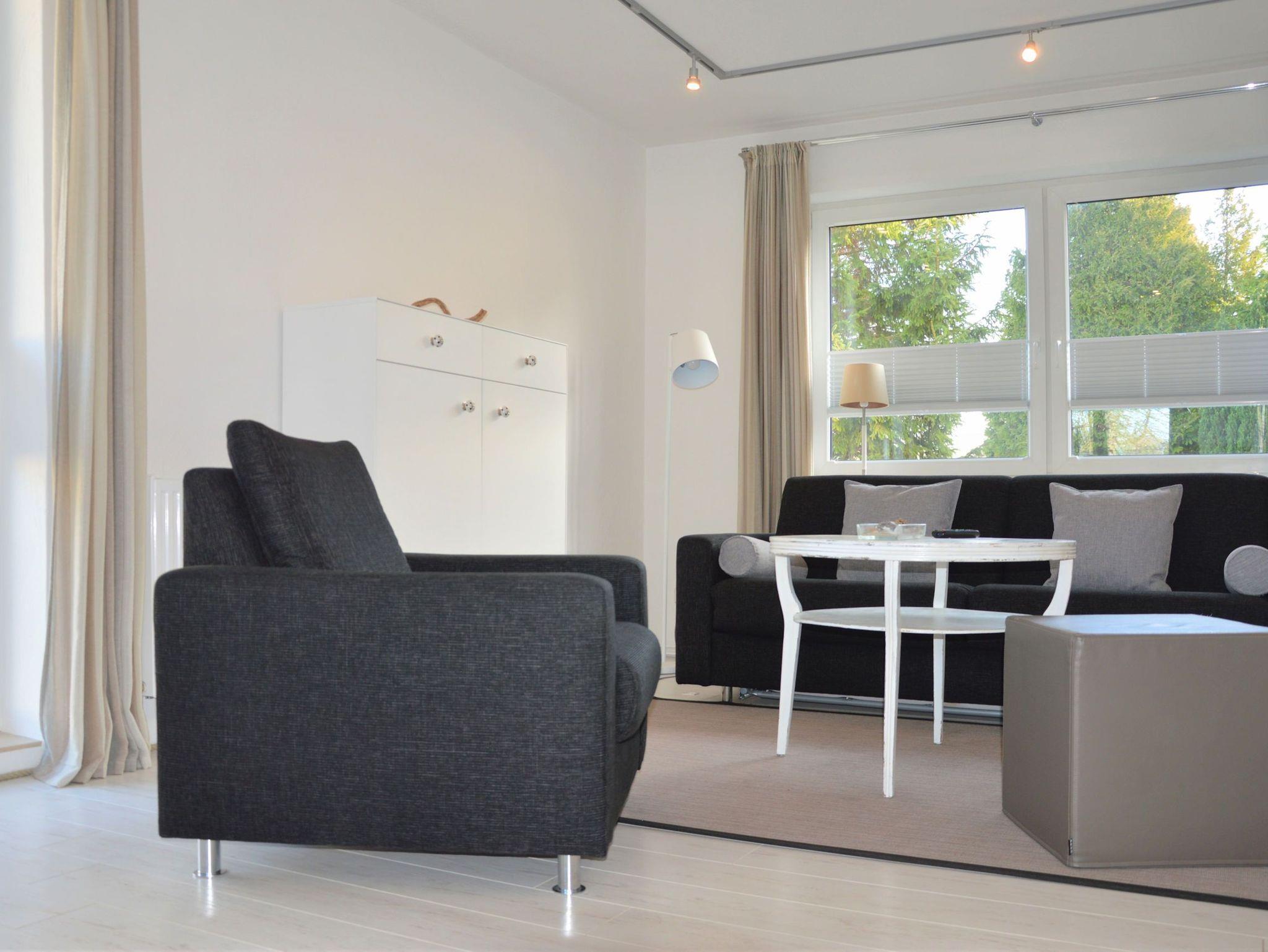 Diese schöne Villa Herbstwind mit insgesamt 3 Ferienwohnungen liegt nahe des Schmachter Sees in guter Zentrumslage, der Binzer Strand ist ca. 600 Meter entfernt. Die größzügigen Apartments sind zeitgemäß, puristisch und elegant eingerichtet, hier kann man sich wohlfühlen. Jedes Apartement hat einen Parkplatz am Haus und einen Balkon. Die große Wohnküche kann im Handumdrehen durch eine moderne Schiebetüranlage vom Wohnraum getrennt werden, somit hat auch die dritte Person, welche auf dem sehr bequemen Schlafsofa nächtig, genügend Privatsphäre. Die Küchen sind mit allem ausgestattet, was auch zu Hause nicht fehlen darf: Kochfeld, Backofen, Mikrowelle, Geschirrspüler. Die schönen Esstische mit komfortablen Stühlen laden zum Verweilen ein und geben dem selbstgekochten Menü den passenden Rahmen.