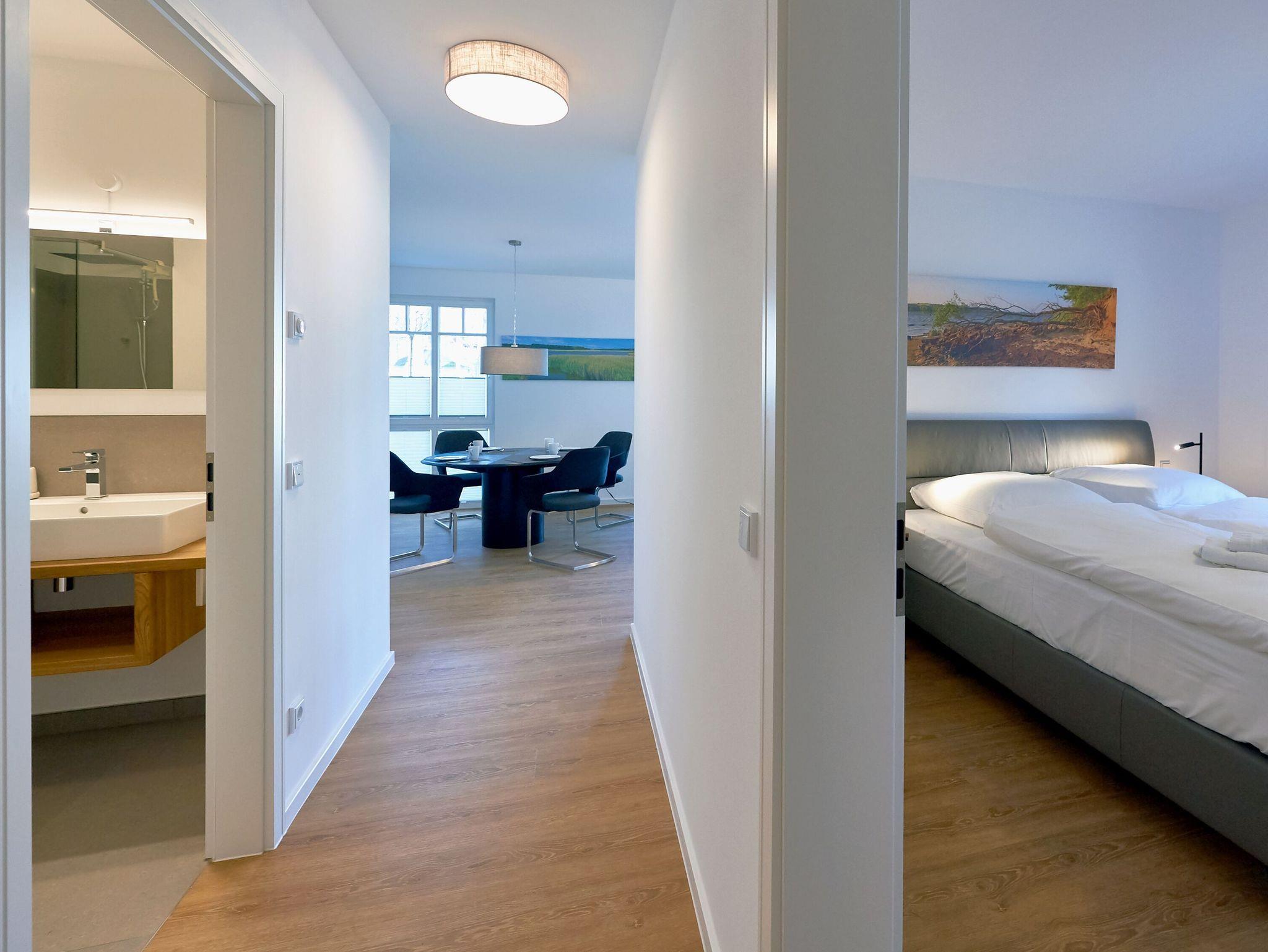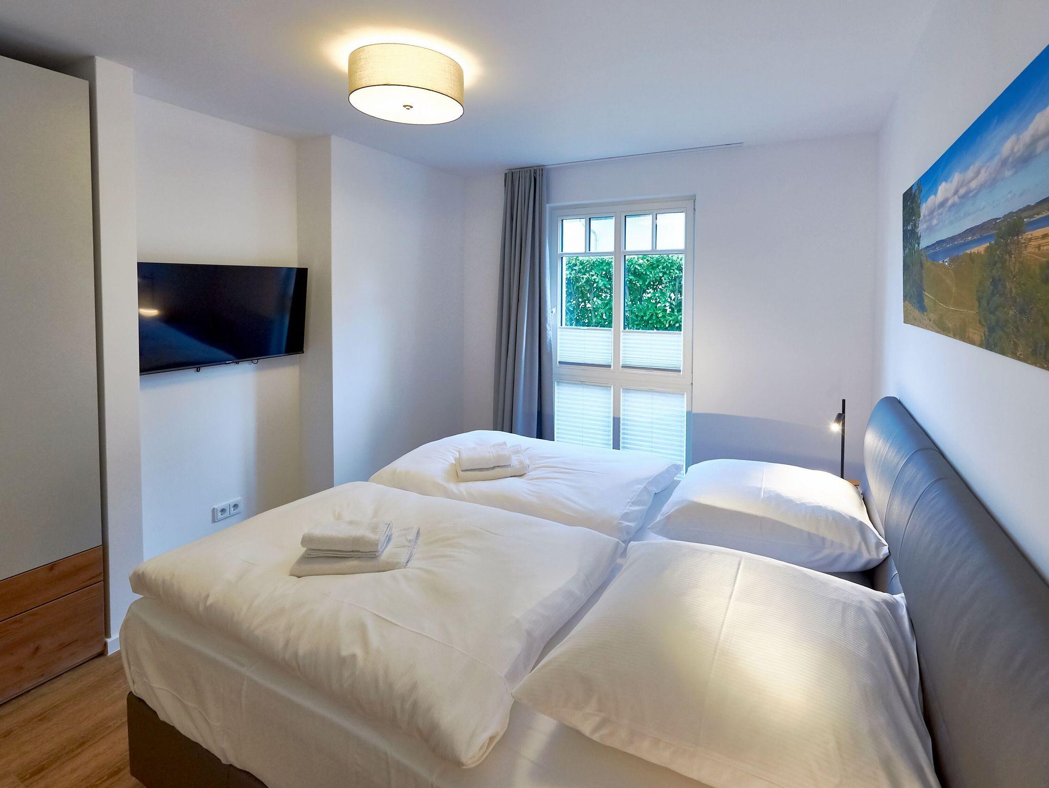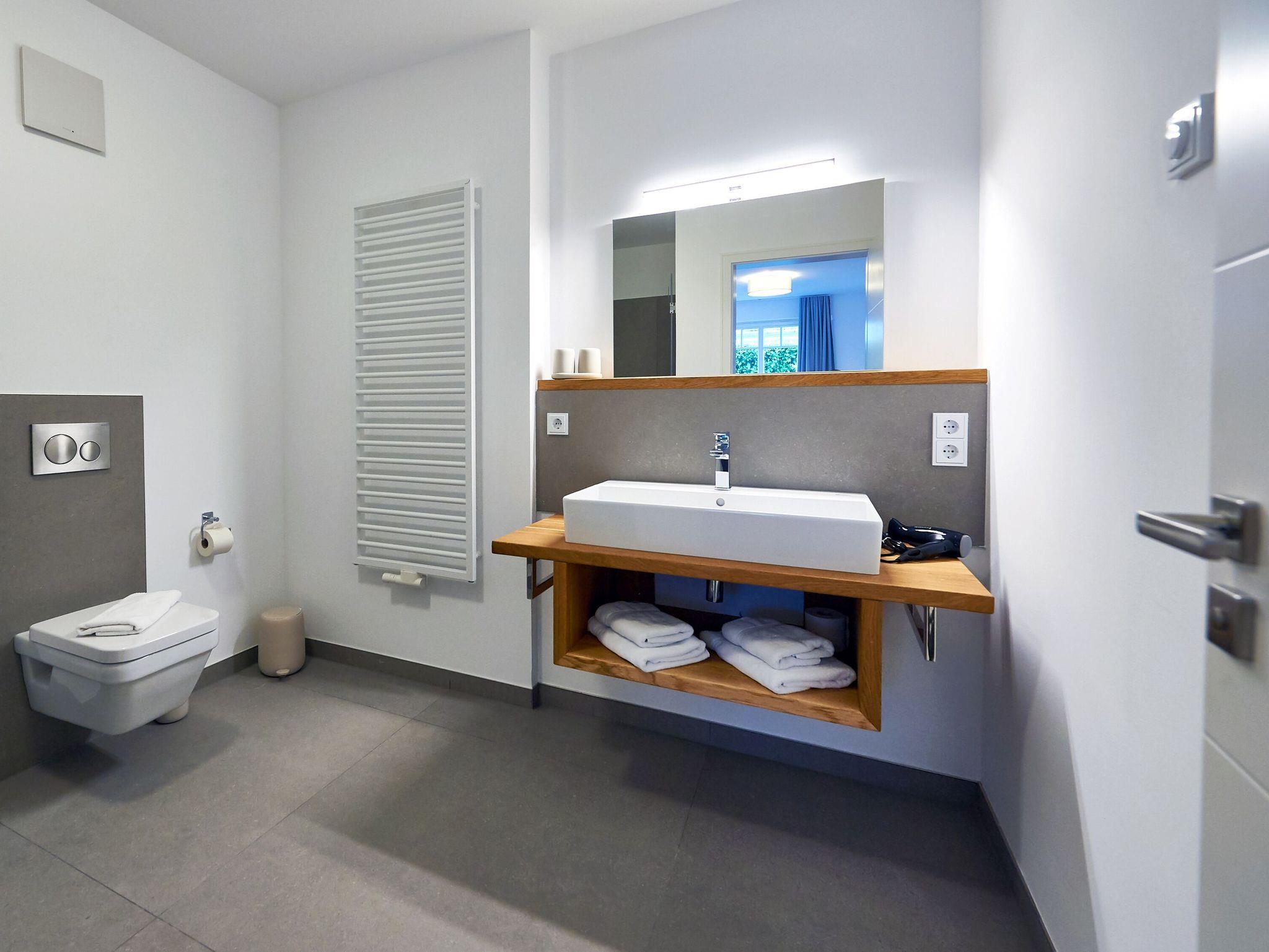 In der eleganten Designerküche ist alles vorhanden, damit Sie Ihren Kochkünsten freien Lauf lassen können: ein großer Herd inklusive Backofen und Abzugshaube, eine Mikrowelle, ein Kühlschrank mit Gefrierfach, eine Spülmaschine, eine Kaffeemaschine, ein Wasserkocher, ein Toaster. Selbstverständlich mangelt es auch nicht am nötigen Koch- und Essgeschirr. Im wenige Gehminuten entfernten Ortszentrum finden Sie Bäcker und einen Edeka-Einkaufsmarkt. Und natürlich freuen sich auch die hiesigen Restaurants, Cafés und Bars immer über einen Besuch.