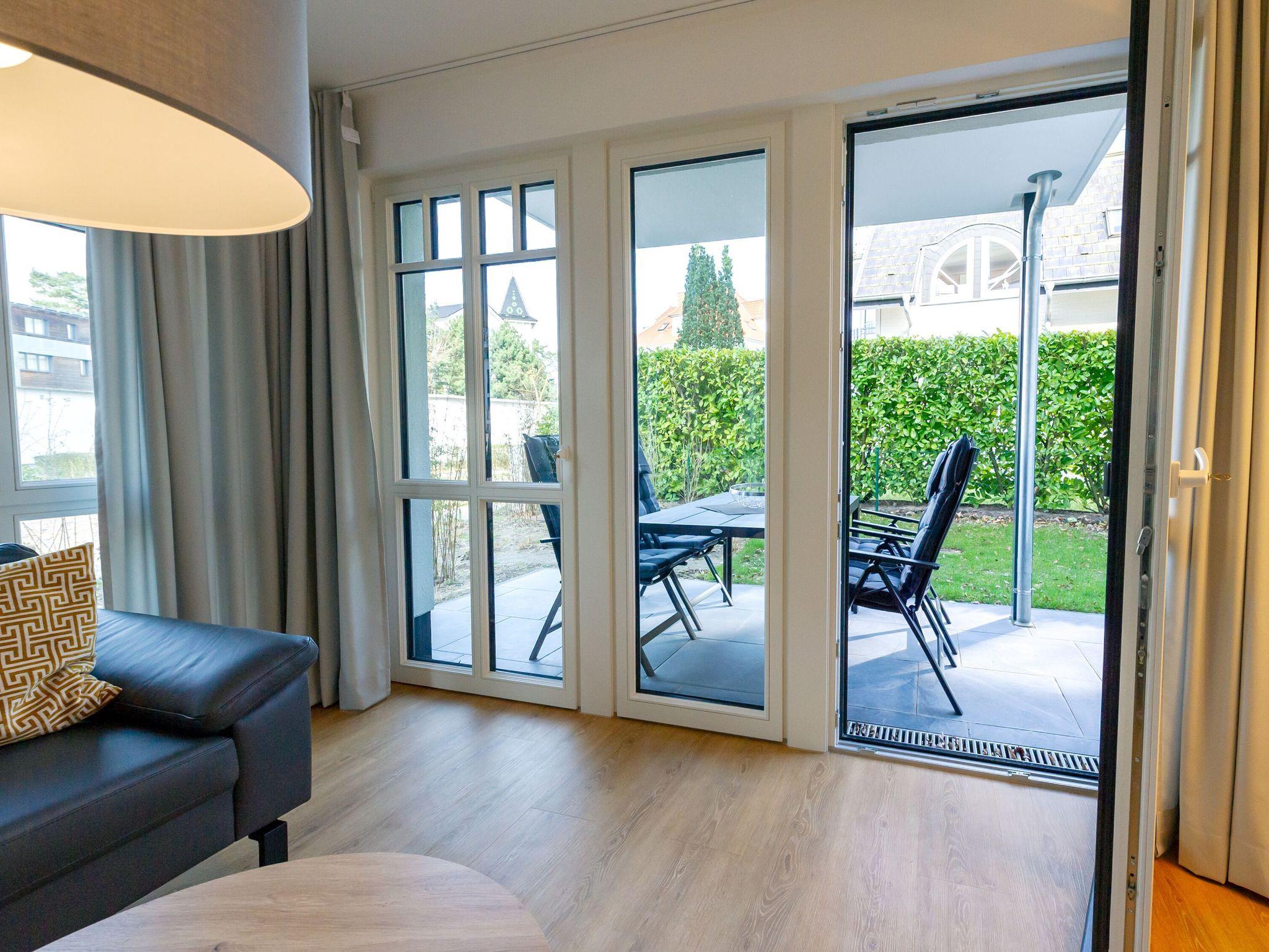 Die im Erdgeschoss der Villa Beatrice gelegene Wohnung 03 ist geräumige 87 qm groß und neben einem kombinierten Wohn-/Esszimmer zwei getrennte Schlafzimmer - jeweils mit Bad en suite - sowie eine möblierte Terrasse. Das Ganze natürlich in allerbester Lage zum herrlichen Binzer Strand und für bis zu 4 Personen nebst gut erzogenem Vierbeiner buchbar.