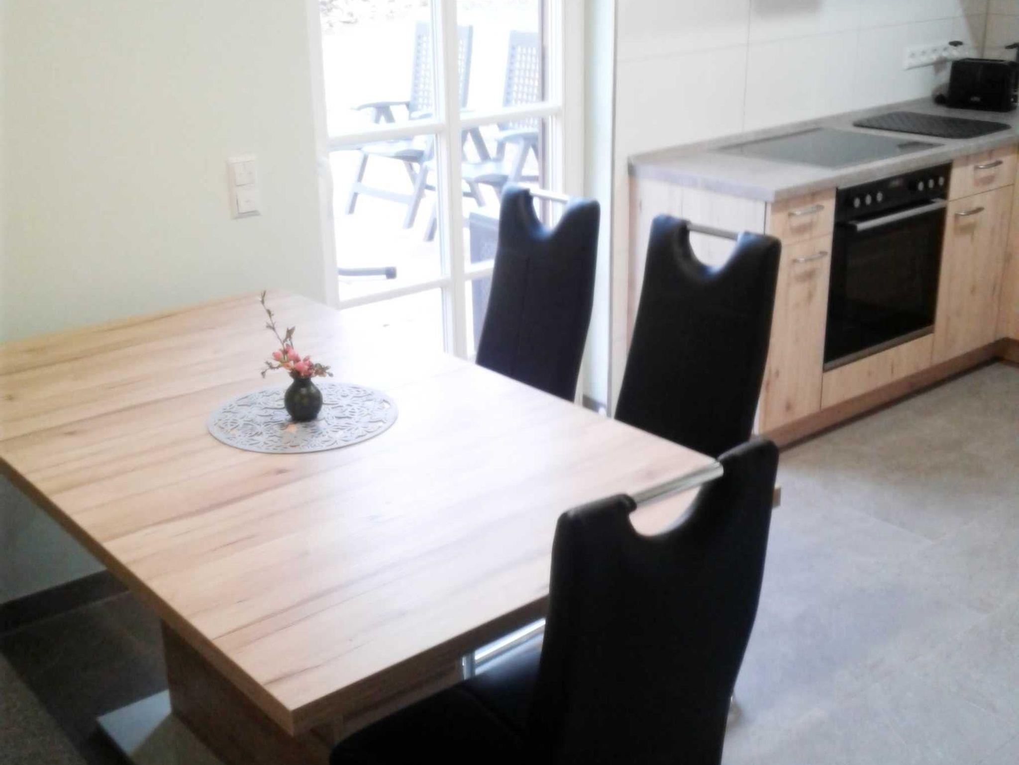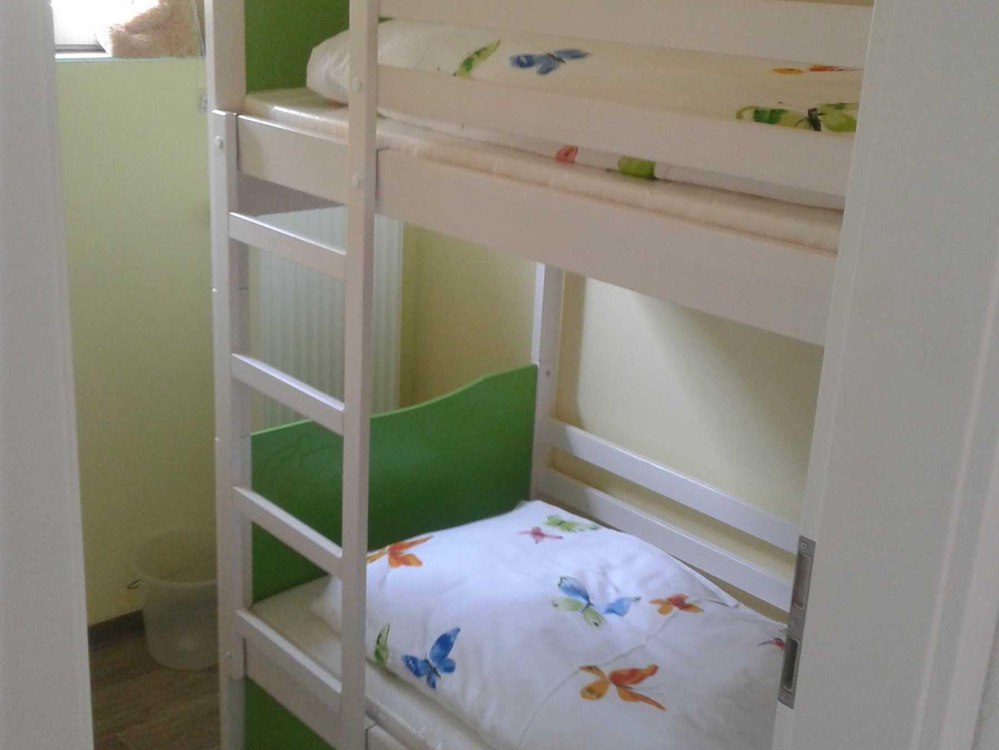 Die Wohnung bietet auf 75 qm genug Platz für 2 Erwachsene und 2 Kinder. Der Eingang zur Wohnung ist mit einer Rampe für Gehbehinderte versehen. Sie ist ausgestattet mit einem Schlafzimmer mit Boxspringbett (200x200) und großem Kleiderschrank, ein Kinderzimmer mit zwei Etagenbetten, ein Wohnzimmer mit einer Spielecke, ein Bad mit begehbarer Dusche sowie einer Küche mit Essecke. Die Küche ist voll ausgestattet mit Ceran-Kochfeld, großem Backofen, einer Kühl- und Gefrierkombination, Spülmaschine, Mikrowelle, Toaster, Wasserkocher und einer Kaffee-Kapsel-Maschine. Von der Küche erreichen Sie die Gartenterrasse mit einer Spiel- und Liegewiese.