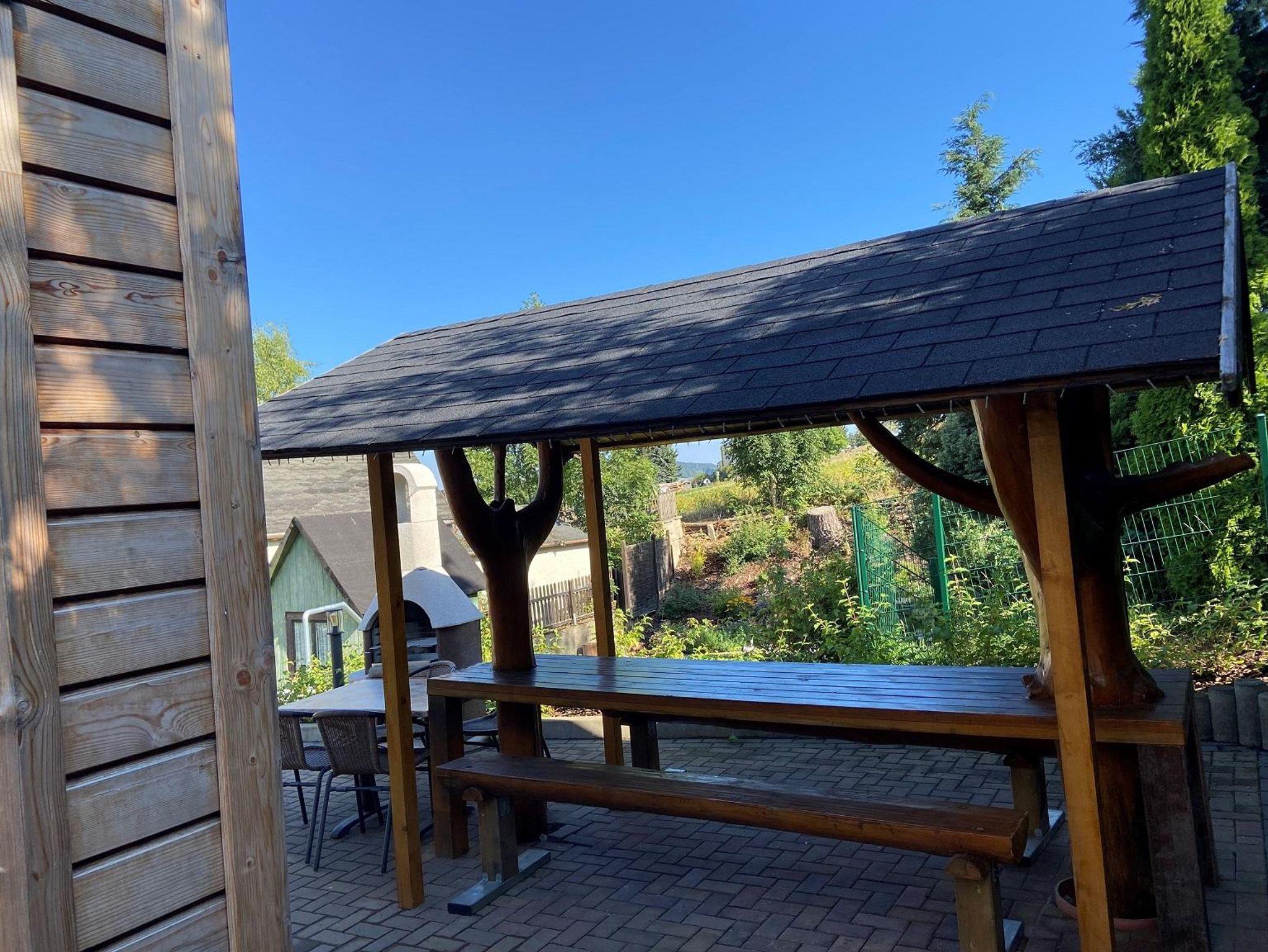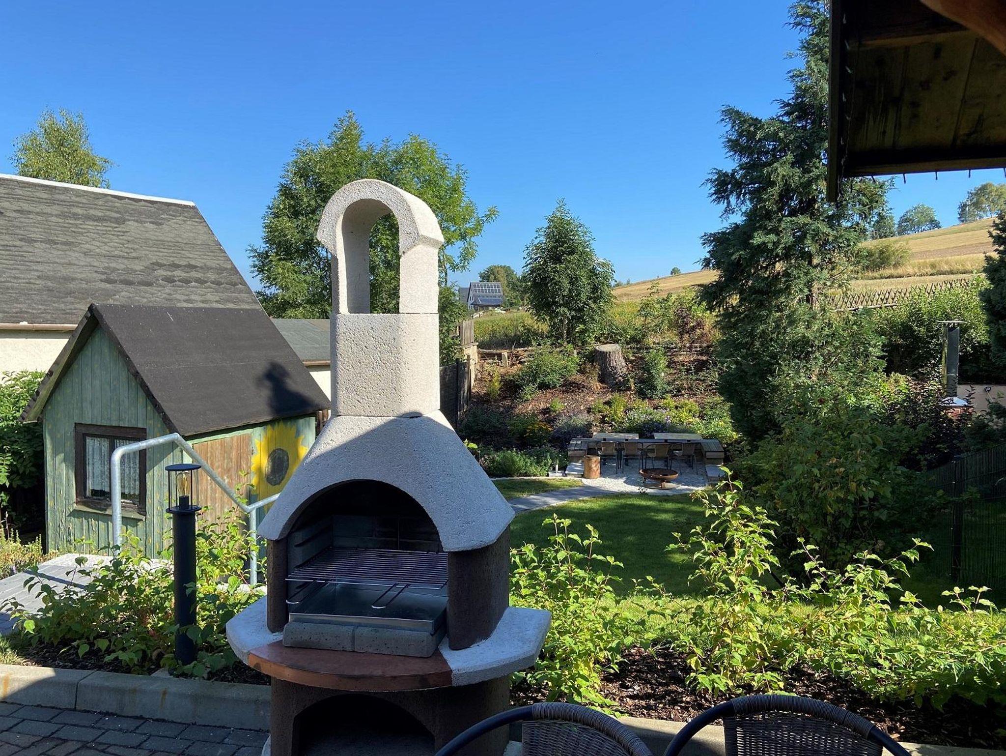 Unser neues,liebevoll & gemütlich eingerichtetes,freistehendes 85qm großes Ferienhaus & 2 KfZ-Stellplätze auf dem 470 qm Grundstück stehen für Sie zur alleinigen Nutzung bereit.Alles wurde für unsere Gäste neu angelegt.Besonders hervorzuheben ist der überdachte Freisitz & der gemauerte Grill hinter dem Haus & die Feuerstelle mit Sitzgelegenheit im unteren Teil des grünen Gartens.Wer totale Ruhe sucht sollte bedenken,das das Haus an der Ortsstraße (50 km/h) liegt.Die Schlafräume sind im hinteren Teil des Bungalows Richtung Garten&Wiesen,die sich am Grundstück befinden.In der unmittlelbaren Umgebung (60 m) befindet sich ein kl.Edeka mit Lebensmitteln des täglichen Bedarfs mit frischen Backwaren & Metzgerei.Das Crottendorfer Räucherkerzenland mit Café und einem sehr guten Frühstücksangebot befindet sich nur 500 Meter entfernt (8% Rabatt-Gutschein liegt bereit).Entfernung:Annaberg-B. 13,Oberwiesenthal 15 km,Schwarzenberg 17 km,Aue 26 km,Chemnitz 50 km,Dresden/Leipzig 124 km,Karlsbad 48km.