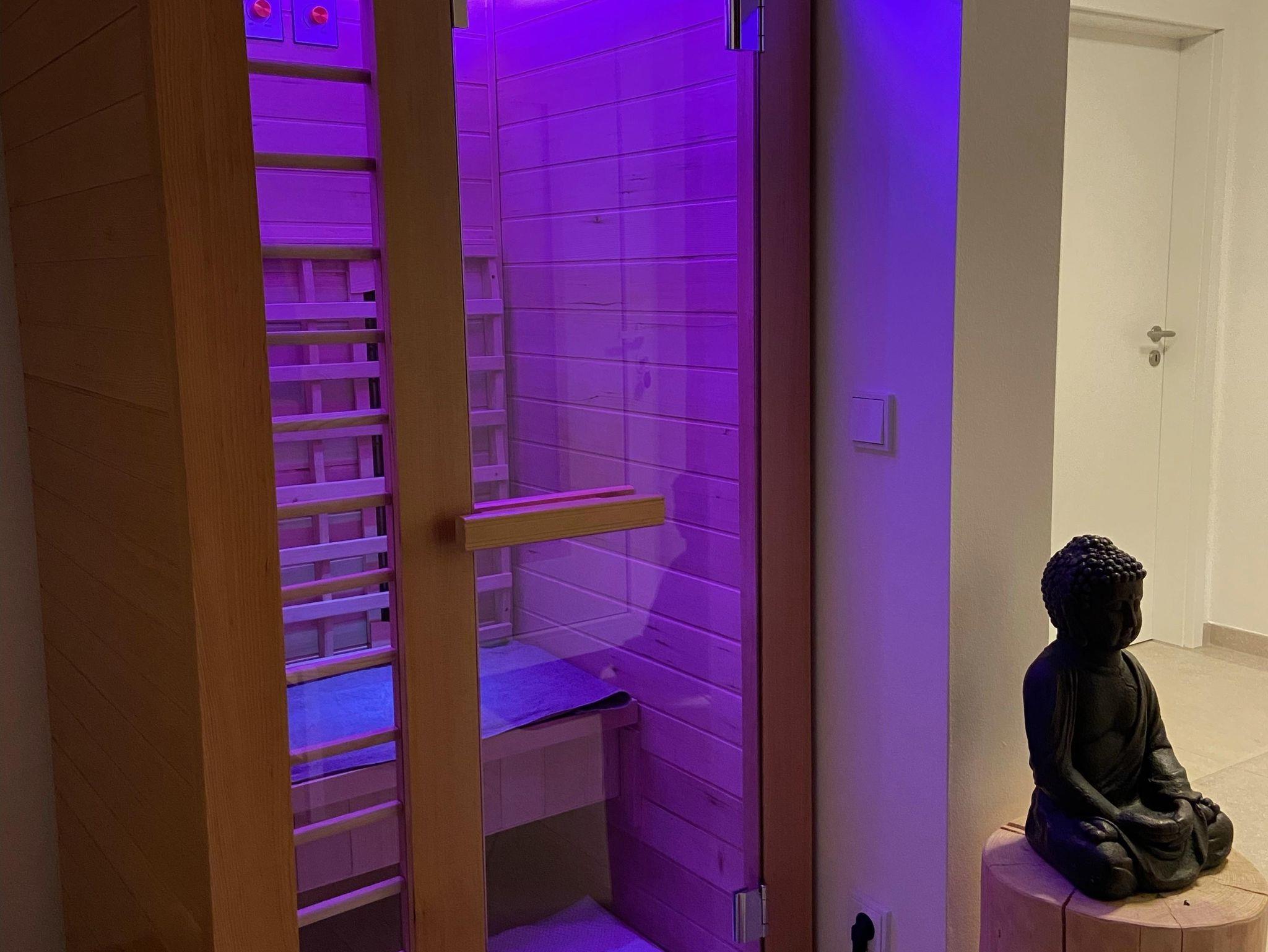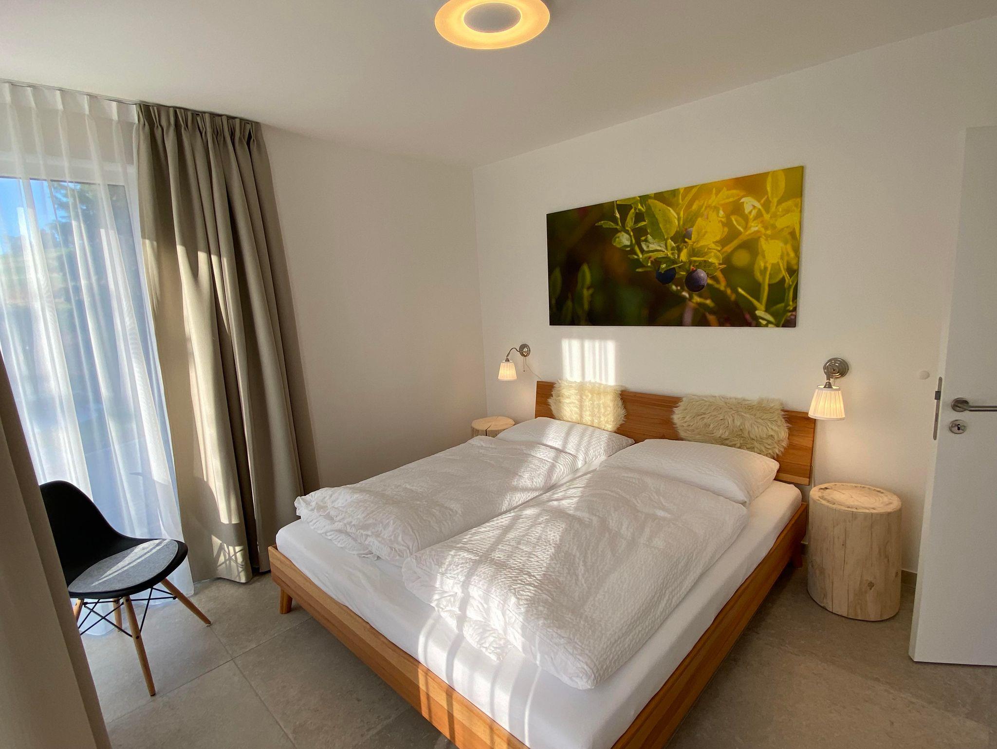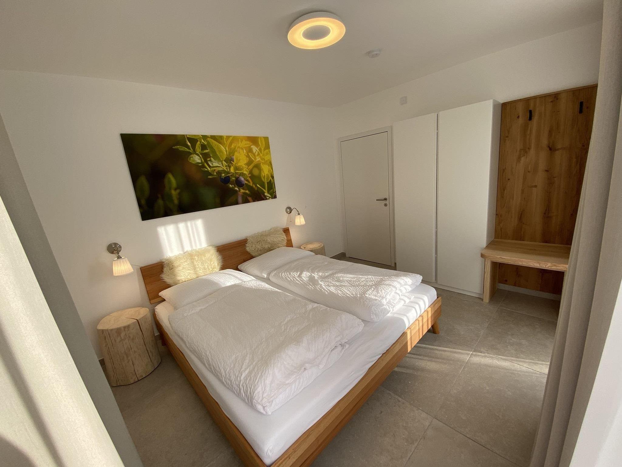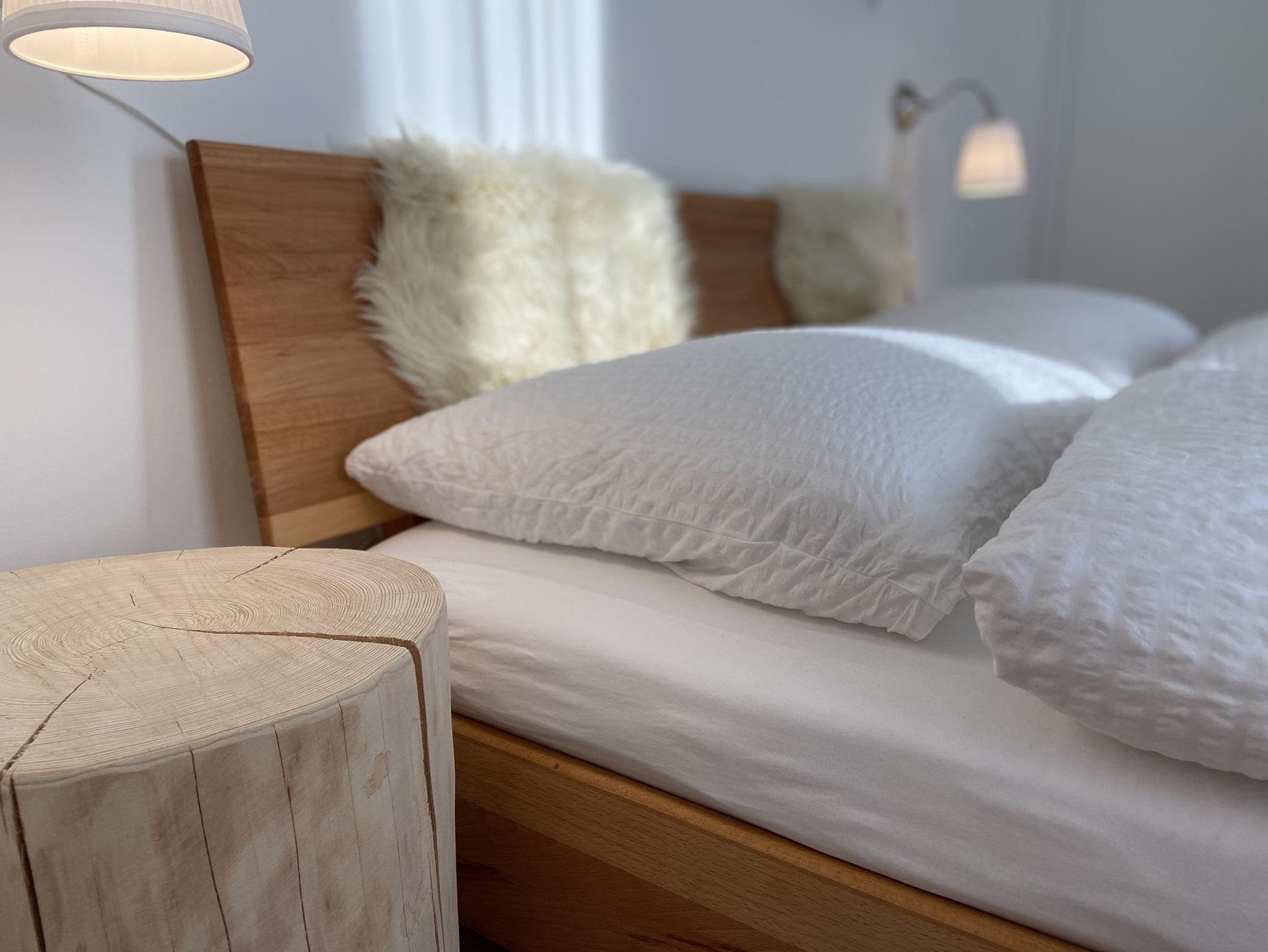 Das Ferienhaus bietet auf 85 Quatratmeter Platz bis zu vier Personen. Das Ferienhaus ist hochwertig ausgestattet mit Altholz an den Wänden, großen Fliesen, bodentiefer Echtglasdusche mit Regenschauerduschkopf, Infrarotkabine, Sichtdachstuhl im Wohn-und Essbereich, Fußbodenheizung und gemütlicher und aufeinander abgestimmter Einrichtung. Es erwarten Sie 2 getrennte Schlafzimmer mit je 2 Bio-Echtholzdoppelbetten. Der offene Wohn- und Essbereich verfügt über eine voll ausgestattete Küchenzeile mit Backofen, Herd, Spülmaschine, Kühlschschrank mit Gefrierfach, Kaffeemaschine, Wasserkocher, Toaster sowie einen großzügigen Essplatz und einer gemütlichen Leseecke mit Sofa. Das Badezimmer ist ausgestattet mit einer ebenerdigen Dusche, Waschbecken, WC und Föhn.