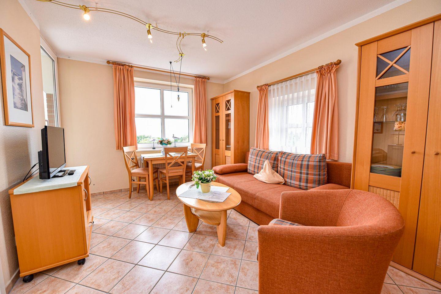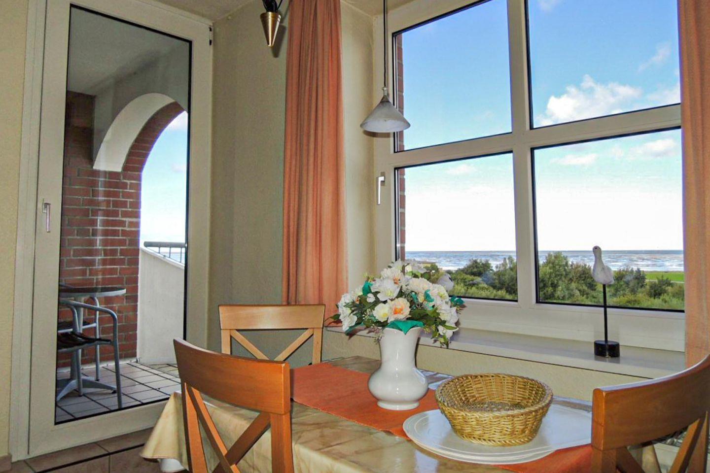 Komfortables 2-Zimmer Appartement mit Seeblick im 4.OG im Haus DEICHGRAF. Allergikerfreundlich gefliestes Seeblick-Appartement mit kleinem Balkon. Im Wohn- / Essraum befindet sich eine Schlafcouch, ein dazu passender Sessel sowie ein Esstisch von welchem aus Sie einen herrlichen Blick auf das Wattenmeer und den Weltschifffahrtsweg haben. Der Schlafraum ist mit zwei Einzelbetten ausgestattet. Es gibt eine offene Küchenzeile mit Back-Mikrowelle, Vierplattenherd und Geschirrspülautomat. Dazu bietet das Appartement ein großzügiges und barrierefreies Duschbad mit einem Duschsitz für komfortables und sicheres Duschen im Sitzen. Kostenloser PKW-Stellplatz.