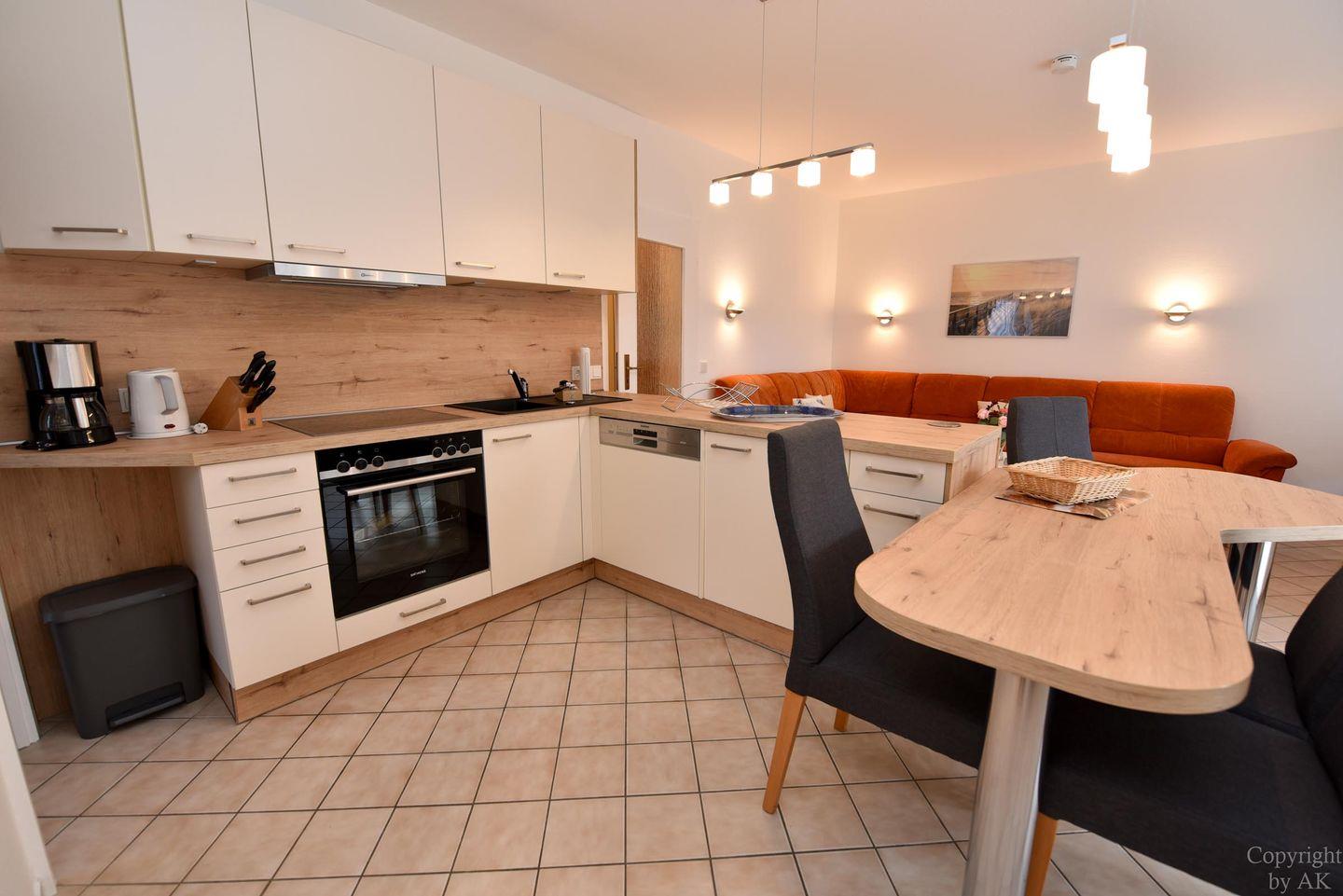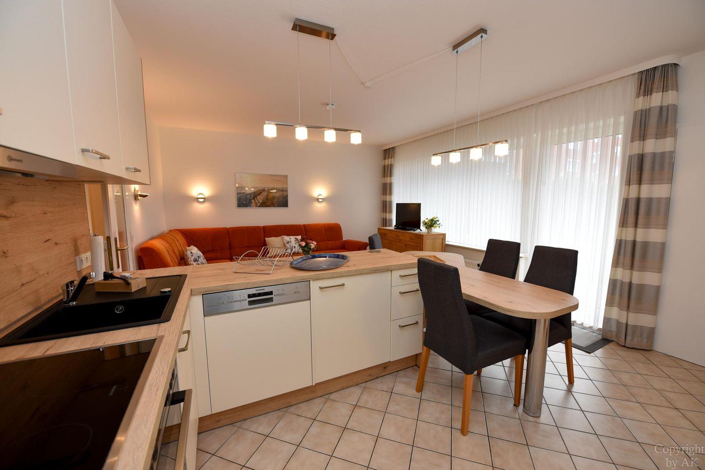 3-Zimmer-Ferienwohnung im EG des Hauses LEE mit WLAN ist für 4 Personen ausgestattet. Großzügiges gefliestes Appartement. Im Wohn-/ Esszimmer befindet sich eine integrierte Einbauküche mit Küchentisch und 5 Stühlen, Mikrowelle und einem Geschirrspülautomat. Im Wohnbereich steht eine große Eckschlafcouch. Es gibt Kabel-TV, DVD Player für Blue Ray. Ein Schlafzimmer ist mit einem Ehebett und großem Kleiderschrank ausgestattet und der zweite Schlafraum bietet 2 Einzelbetten. Die Wohnung verfügt über ein modernes Wannenduschbad. Kostenfreie Schwimmbadnutzung im Haus.