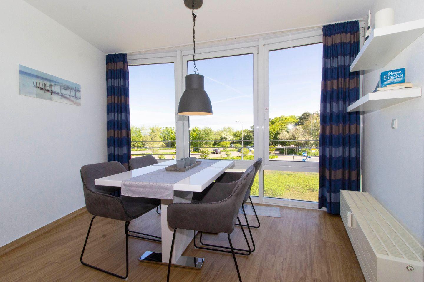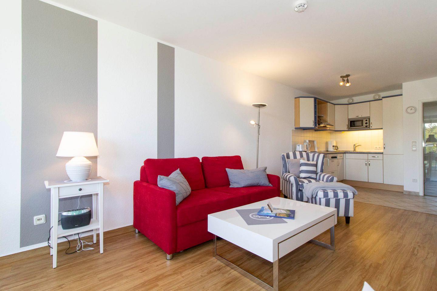 Die Ferienwohnung punktet mit einem unschlagbaren Wellnessangebot. In der Kurpark-Residenz können unsere Urlaubsgäste kostenlos das hauseigene Schwimmbad und die Sauna nutzen. Für Fragen stehen unsere Mitarbeiter täglich an der Rezeption des Hauses zur Verfügung. In den Sommermonaten 2026 gehört außerdem ein eigener Strandkorb zu dieser Ferienwohnung. Ein Parkplatz in der Tiefgarage ist ebenfalls im Preis enthalten.
