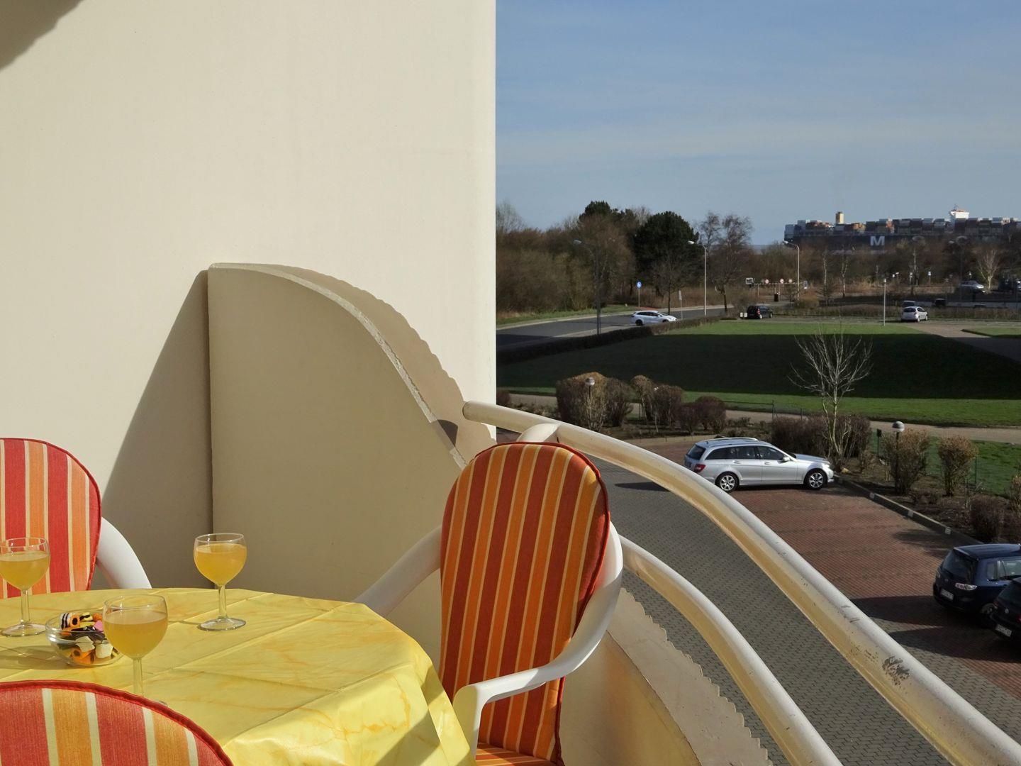 Haus Lord Nelson, Typ 2, App.-Nr. 214 bis 4 Pers. 2. Etage, ca. 40 qm Größe, Weltschifffahrtsweg (ohne Meerblick/Richtung Elbe), Wohnbereich mit Schrankbett mit Komforthöhe, sep. kleines Kinderzimmer mit Etagenbett (durch 100 cm hohen Einstieg auch für Erwachsene geeignet), Dusche/WC, Küchenzeile mit Backofen, Geschirrspüler, 4-Platten-Ceranfeld, Mikrowelle, zus. Senseo-Kaffeemaschine, Balkon, Kabel-TV (Smart-TV),DVD/Blu-Ray-Player, kostenl. High-Speed-WLan Zugang im App., Tiefgaragenstellplatz, Nichtraucherwohnung, Haustiere sind nicht gestattet, Strandkorb im Sommer 2026