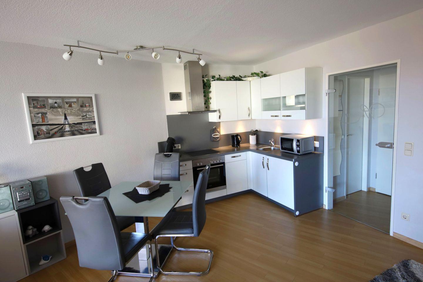 Diese modern eingerichtete 2-Zimmer-Ferienwohnung bietet Platz für bis zu 4 Personen, ideal für Paare und kleine Familien. Hier erwartet Sie neben einer modernen Möblierung ein stilvolles Farbkonzept. Abgesehen von der optimalen Ausstattung punktet das Domizil vor allem durch seine Top-Lage an der Nordsee. Von hier aus erreichen Sie den nahegelegenen Strand in wenigen Minuten, ein Bäcker und Einkaufmöglichkeiten sind ebenfalls nicht weit entfernt. Zu Fuß können Sie ebenfalls das Wahrzeichen Cuxhavens, die Kugelbake, bei einem Spaziergang besichtigen.