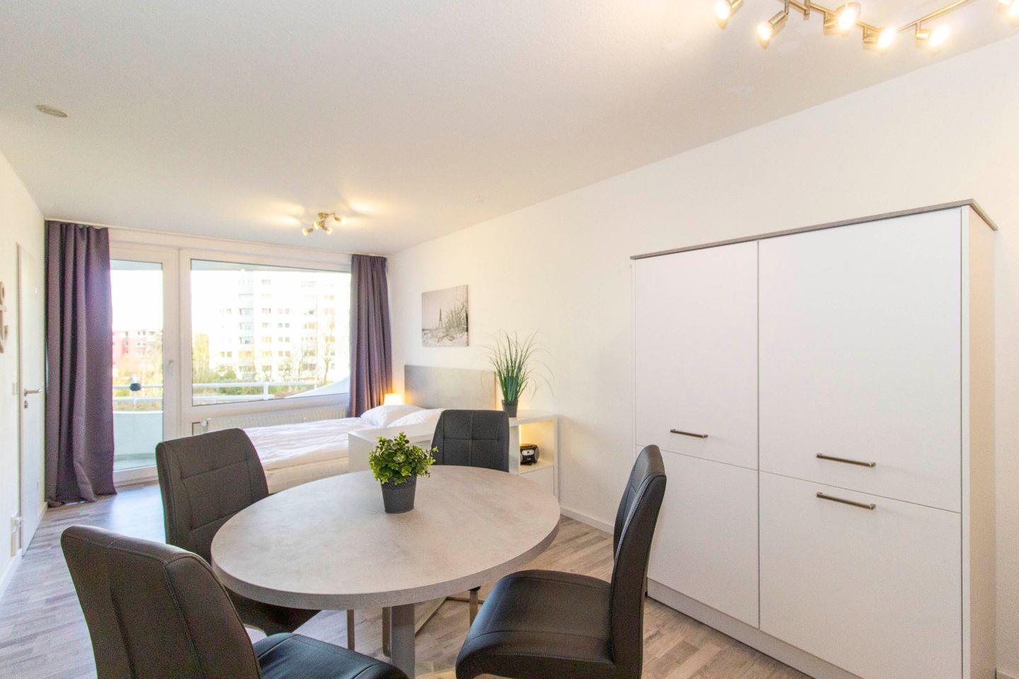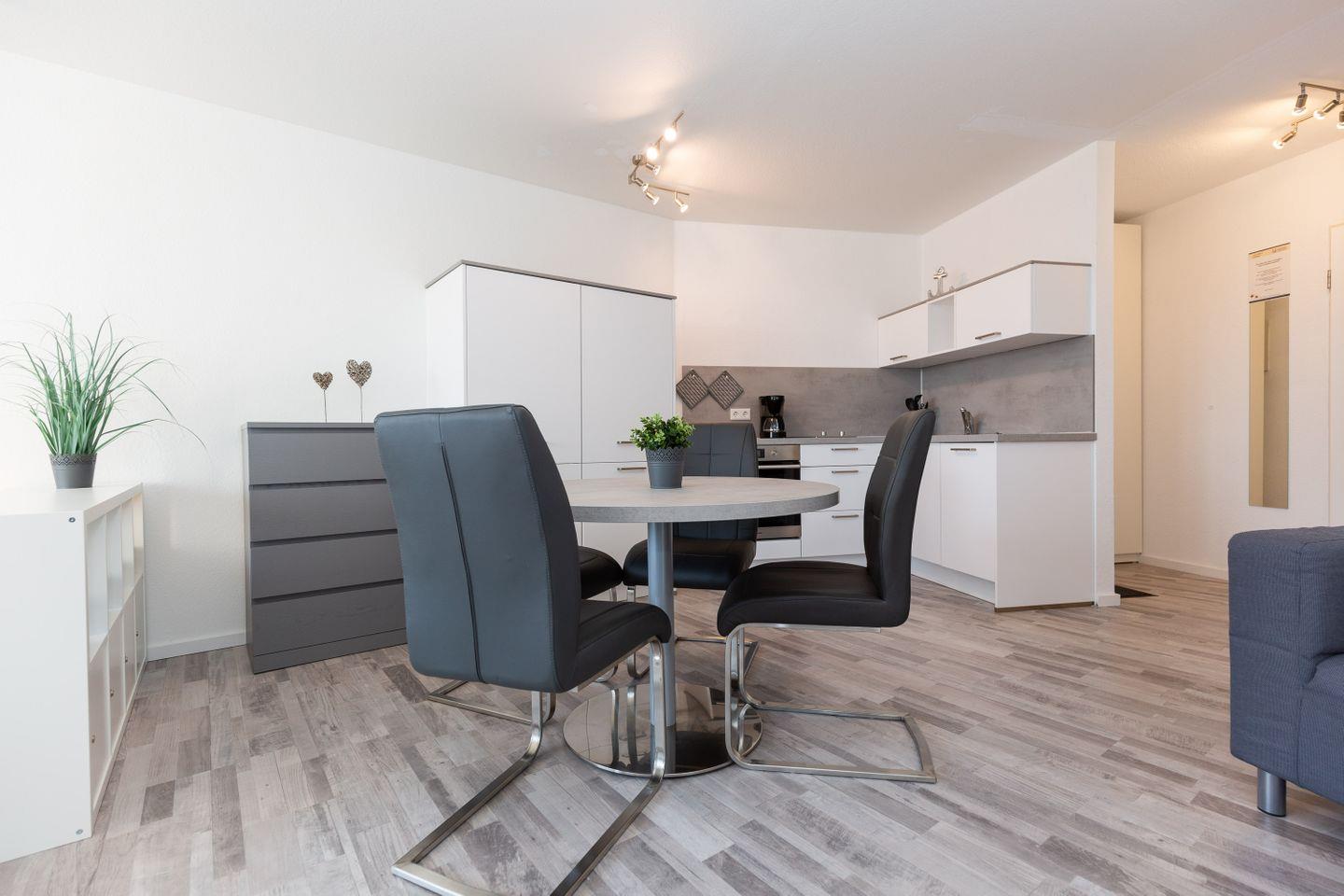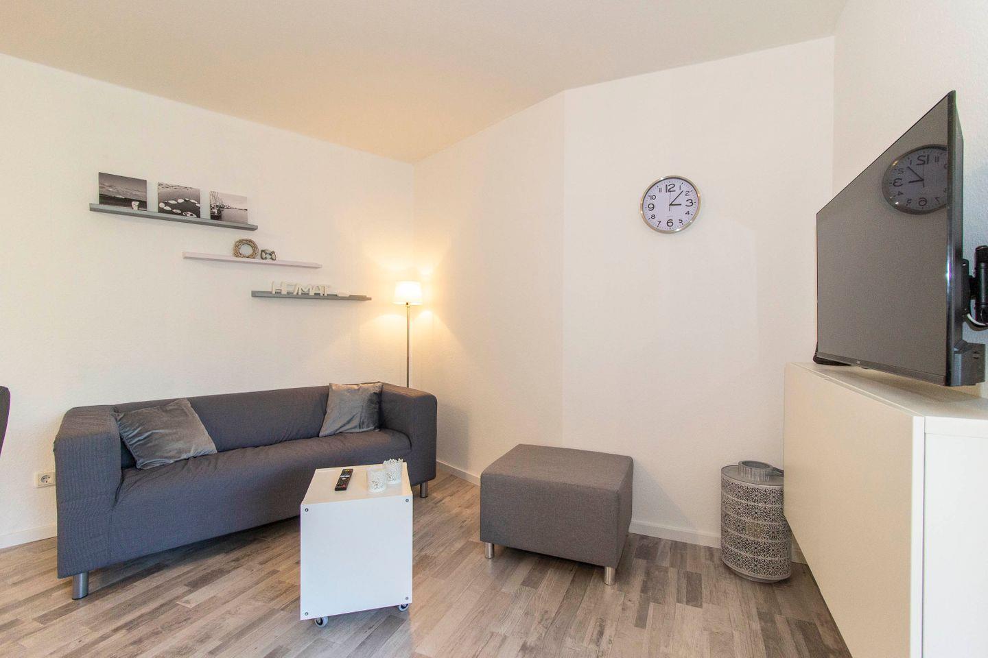 Die stilvoll eingerichtete 2-Zimmer-Ferienwohnung in Cuxhaven bietet Platz für bis zu 4 Personen. Farblich herrschen hier warme Grautöne. Das Farbkonzept kreiert ein stimmiges Ambiente. Neben einer modernen Möblierung punktet das Domizil vor allem durch seine Top-Lage an der Nordsee. Von hier aus erreichen Sie den nahegelegenen Strand in wenigen Minuten, ein Bäcker und Einkaufmöglichkeiten sind ebenfalls nicht weit entfernt. Zu Fuß können Sie ebenfalls das Wahrzeichen Cuxhavens, die Kugelbake, bei einem Spaziergang besichtigen.