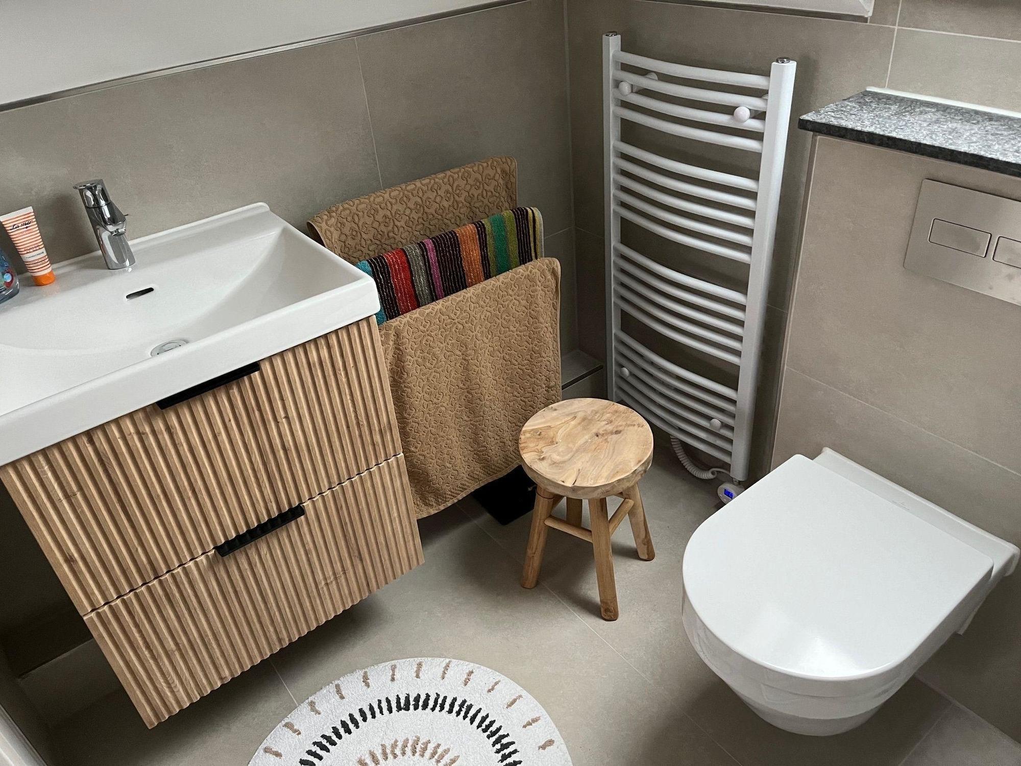 Die Ferienwohnung bietet eine komfortable Auszeit mit durchdachter Ausstattung. Das Schlafzimmer ist mit einem gemütlichen Doppelbett ausgestattet und ermöglicht erholsame Nächte. Die separate Küche lässt keine Wünsche offen: Ein Geschirrspüler, Elektro- und Gasherd, Backofen, Mikrowelle und Kühlschrank stehen zur Verfügung, ergänzt durch eine Kaffeemaschine, Espressomaschine, Toaster und Gefriermöglichkeit. Ein Esstisch lädt zu gemeinsamen Mahlzeiten ein. Das Badezimmer überzeugt durch ein Fenster, Duschbad und Haartrockner. Für Unterhaltung sorgt der TV, während die Waschmaschine und der Wäschetrockner praktische Annehmlichkeiten bieten. Ein Parkplatz ist ebenfalls vorhanden. Zusätzliche Details wie Gewürze im Starterset und eine Garderobe runden das Angebot ab. Die freundlich gestalteten Räume sind dank Heizung zu jeder Jahreszeit einladend. Diese Ferienwohnung ist ideal für einen entspannten Aufenthalt.