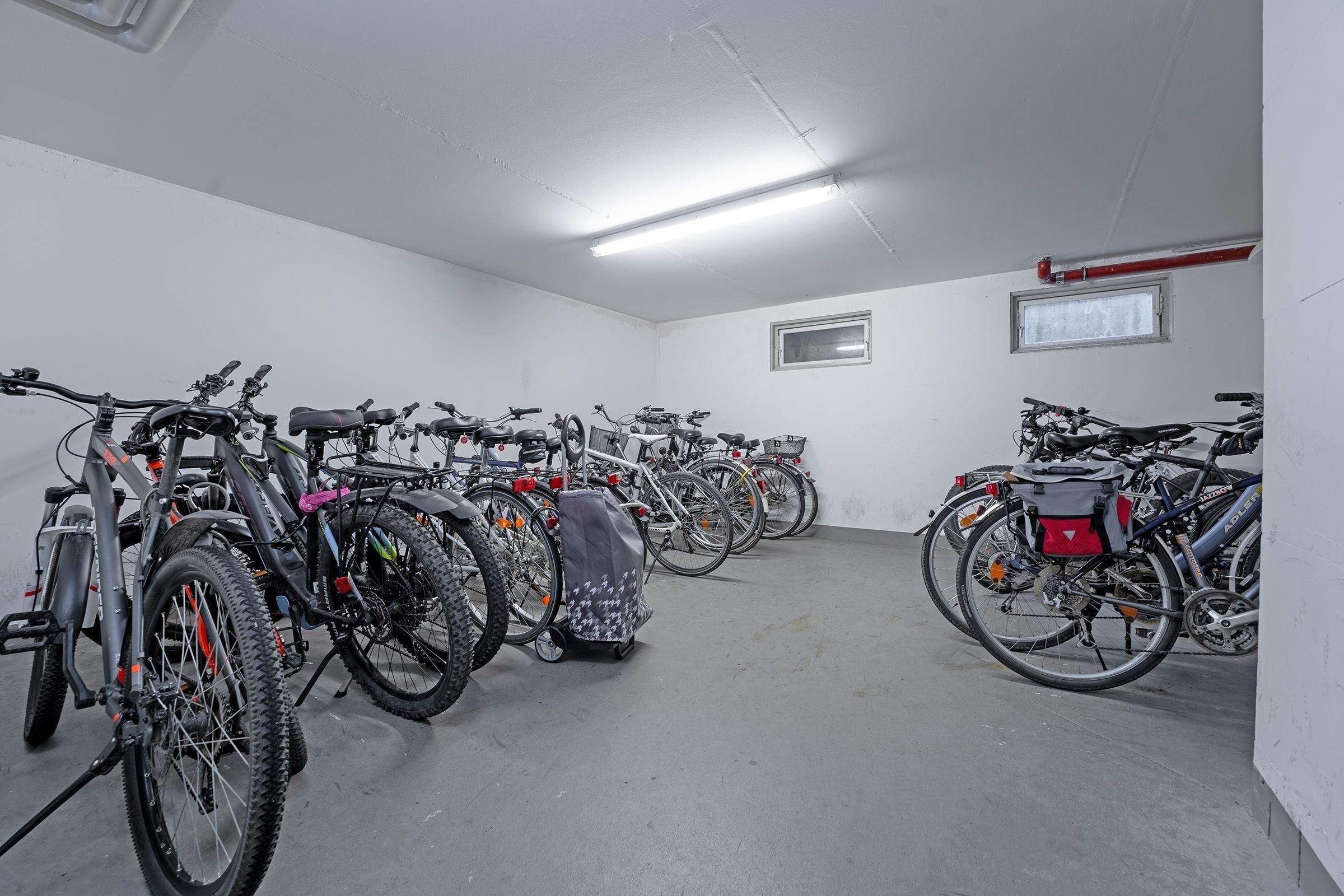 Ein PKW-Außenstellplatz haben Sie auf dem Grundstück, den Fahrradabstellplatz im Keller, ebenso wie eine Gemeinschafts-Waschküche mit Waschmaschine und Trockner.