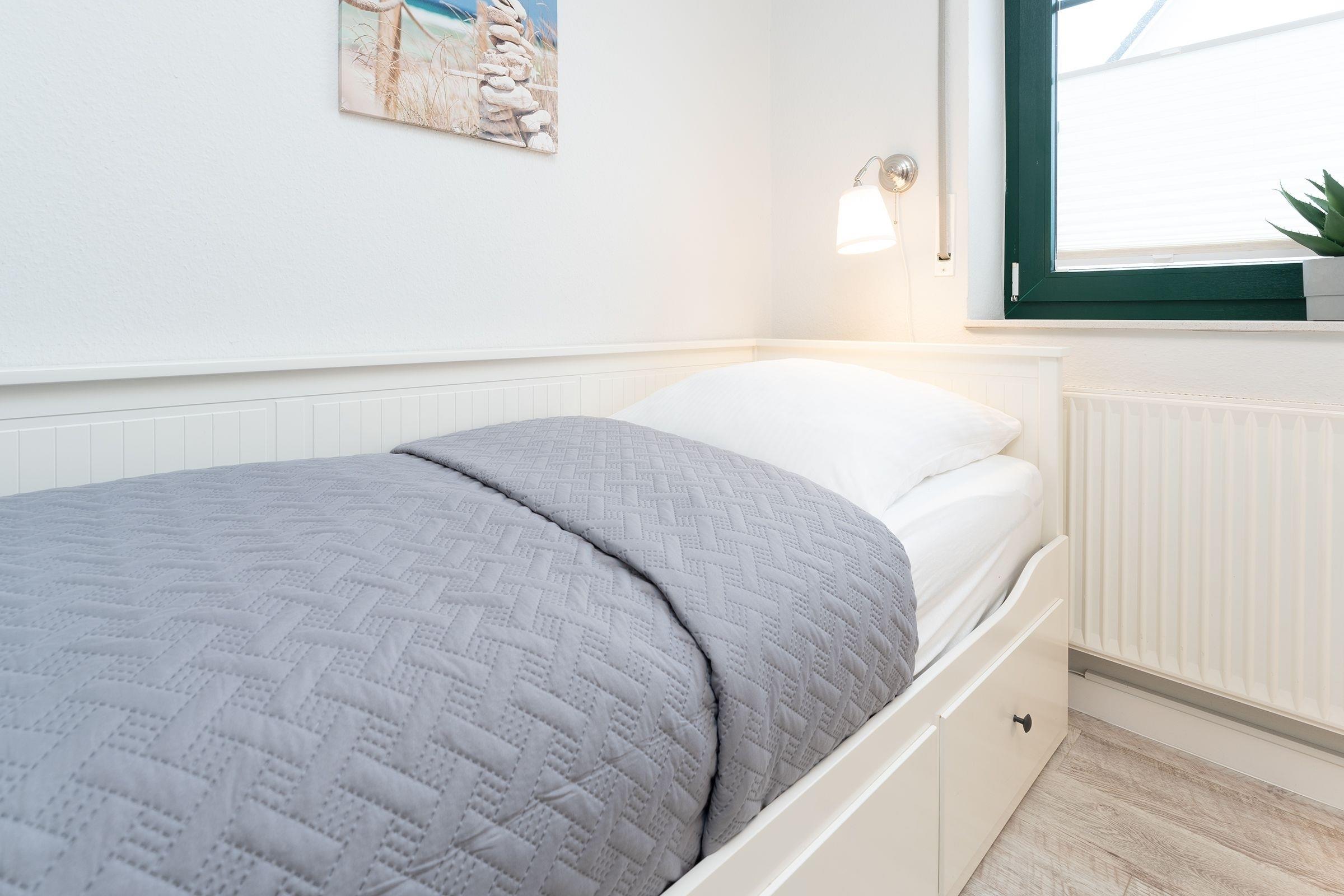 Herzlich Willkommen! Verbringen Sie die schönsten Tage Ihres Jahres in dieser sehr modernen, liebe- und geschmackvoll eingerichteten Ferienwohnung. Hier finden Sie mit bis zu 4 Personen auf 63 m² reichlich Platz. Sie werden sich vom ersten Moment an wie zu Hause fühlen ... alles harmonisch aufeinander abgestimmt .... hier wurde an nichts gespart. Ein Schlafraum mit Doppelbett (2x 80x200 cm), ein Schlafzimmer mit einem Einzelbett (80x200 cm) und einem Kojenbett (80x200 cm), ein großzügig geschnittenes Wohn-Esszimmer mit Ausgang zur möblierten Terrasse und mit moderner offener Küche und einem schicken Duschbad, eine Münz-Waschmaschine finden Sie im Keller. Auch ein kostenfreier WLAN-Zugang ist hier inklusive.
