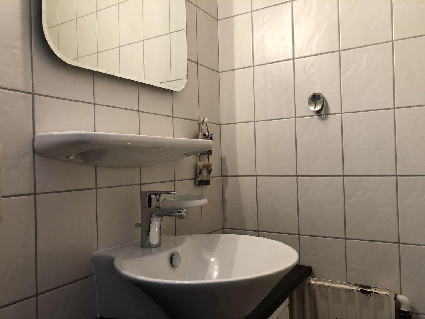 Das helle, durch das Dachfenster lichtdurchflutete Badezimmer, besitzt neben einer Dusche auch eine Waschmaschine und einen Trockner, sodass lebendige Ausflüge an den Nordseestrand ohne Bedenken erlebt werden können.