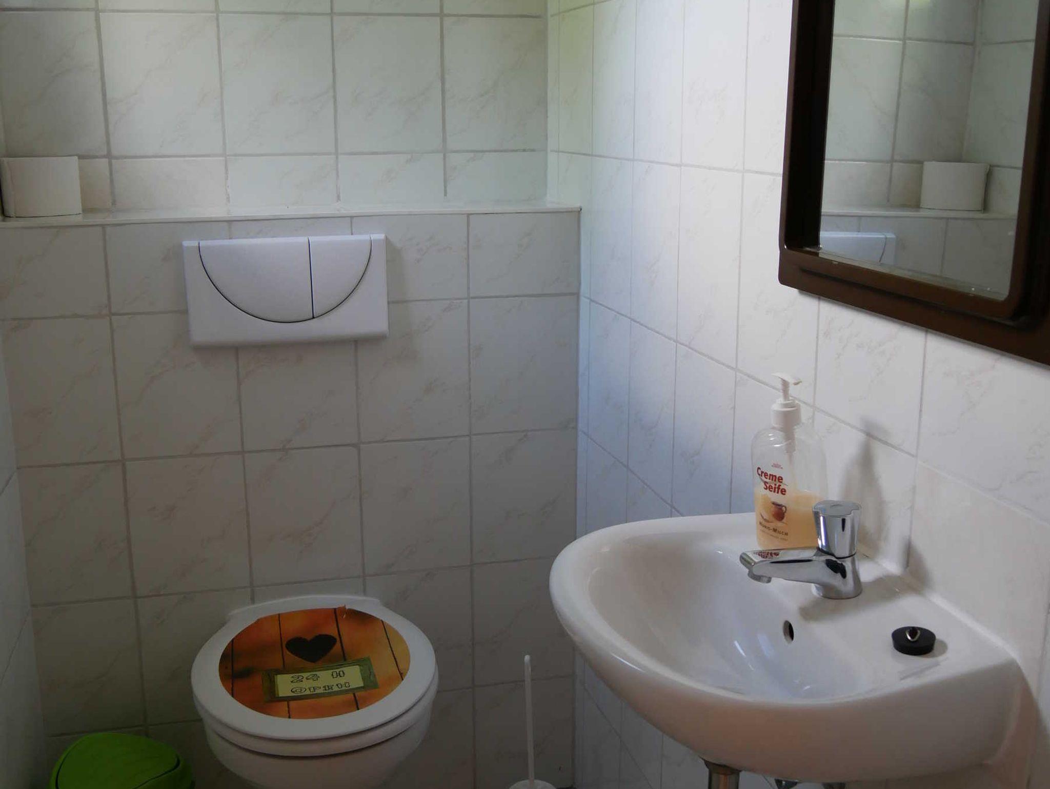 Sie befindet sich im Nebengebäude , seperater und ebenerdiger Zugang.