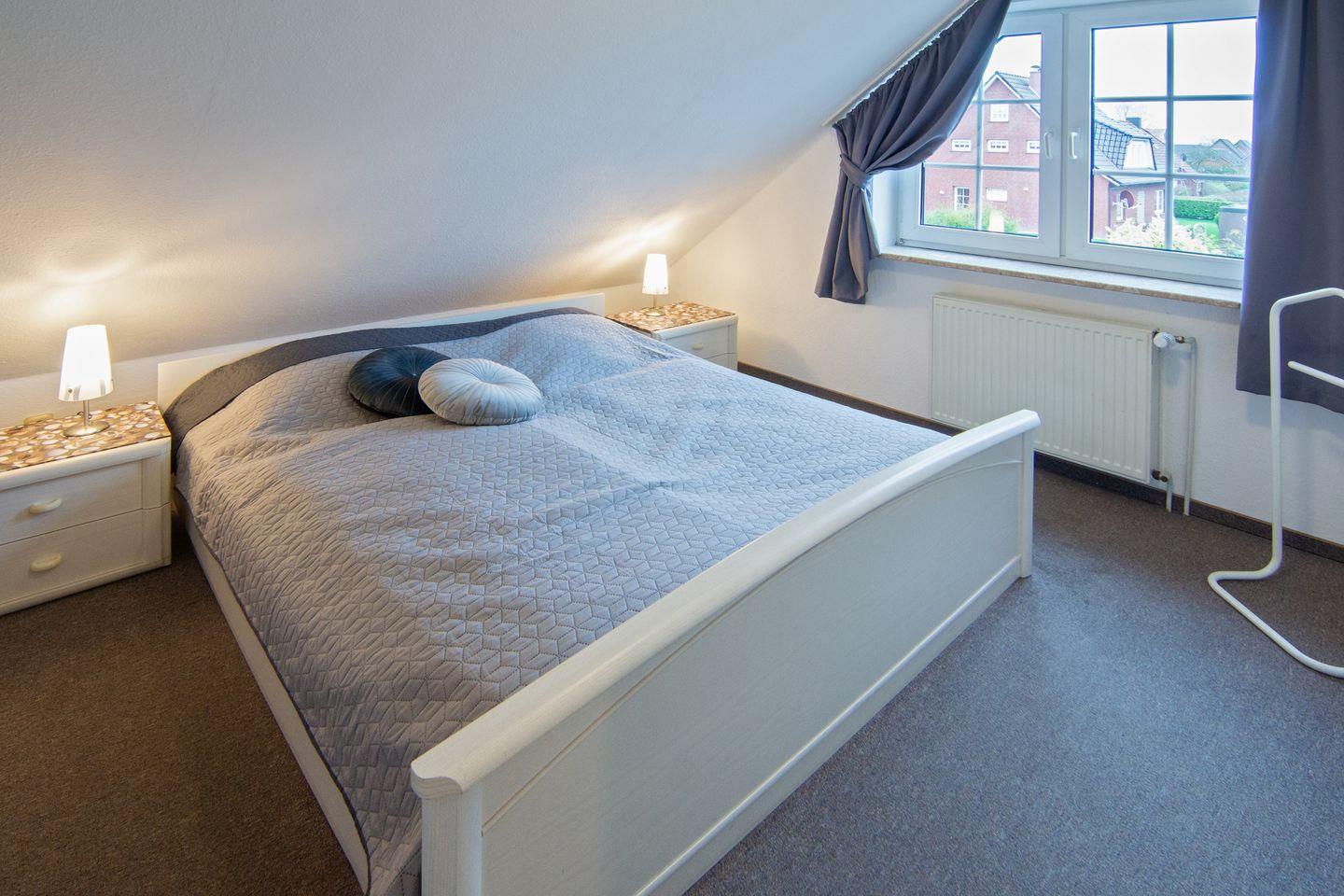 Im Obergeschoss erwartet Sie ein stilvoll eingerichtetes Schlafzimmer mit einem komfortablen Ehebett. Ein weiteres Schlafzimmer mit zwei Einzelbetten befindet sich im ausgebauten Dachgeschoss, das über eine platzsparende Raumspartreppe erreichbar ist. Hier können besonders Kinder oder Jugendliche ihre eigene Rückzugsmöglichkeit genießen.