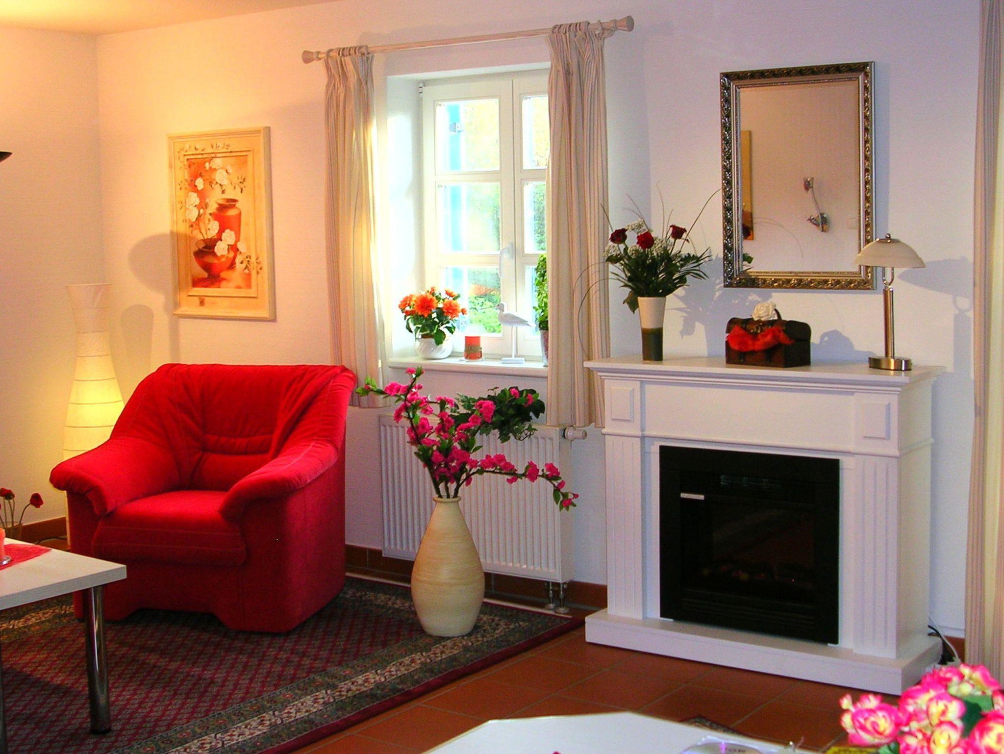 entsprechende Atmosphäre. Ein großer Fernseher mit Sat-TV, ein DVD-Player, eine Hifi- Anlage mit CD- und Kassettenspieler sind vorhanden, ebenso Gesellschaftsspiele, eine DVD-Sammlung und eine große Auswahl an Literatur.