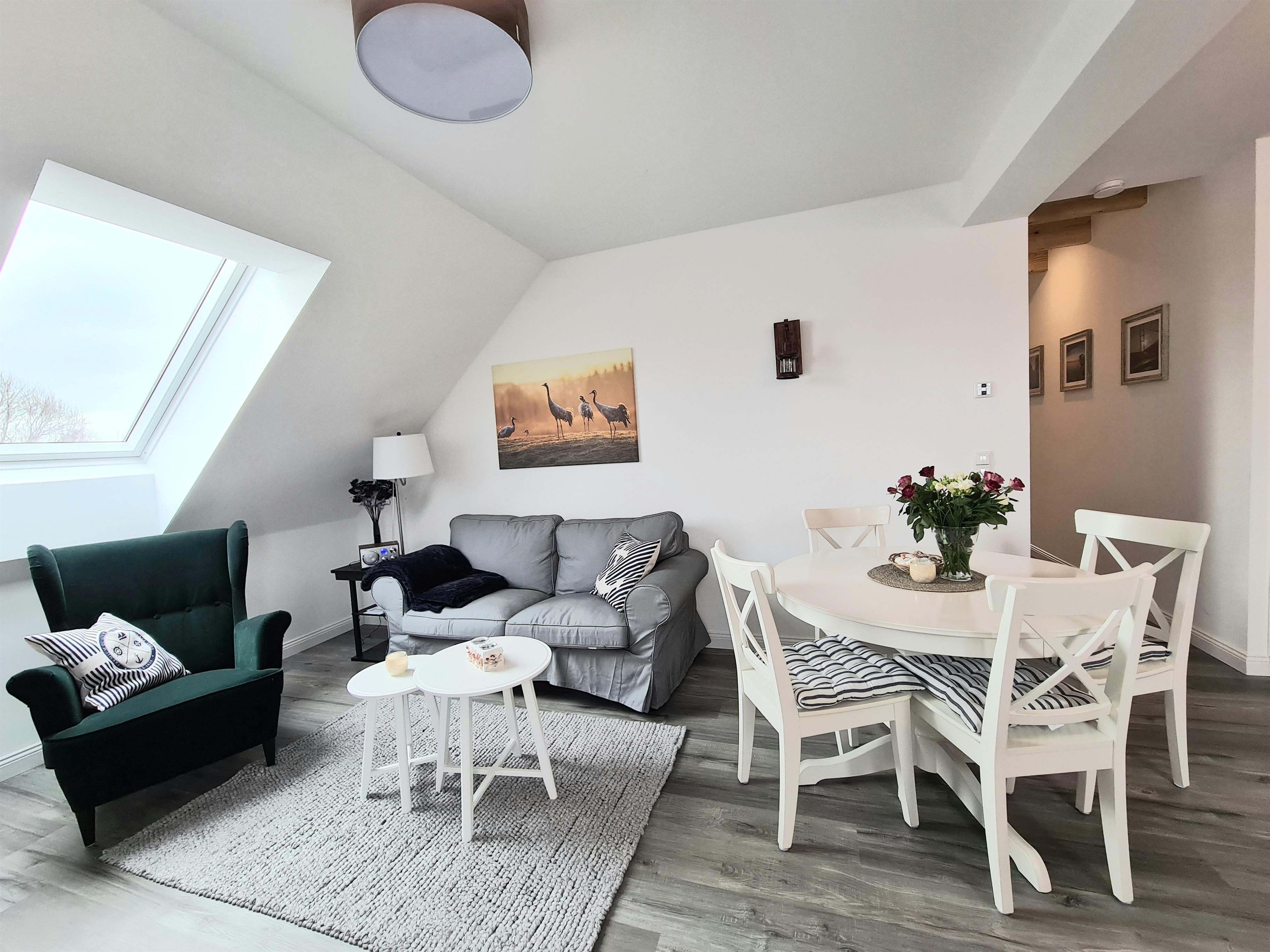 Die gemütliche 3-Zimmer-Wohnung ist ideal für Paare und kleine Familien (max. 4 Personen), die von hier aus zentral gelegen die Insel erkunden können. Gerne auch mit Ihrem Vierbeiner.