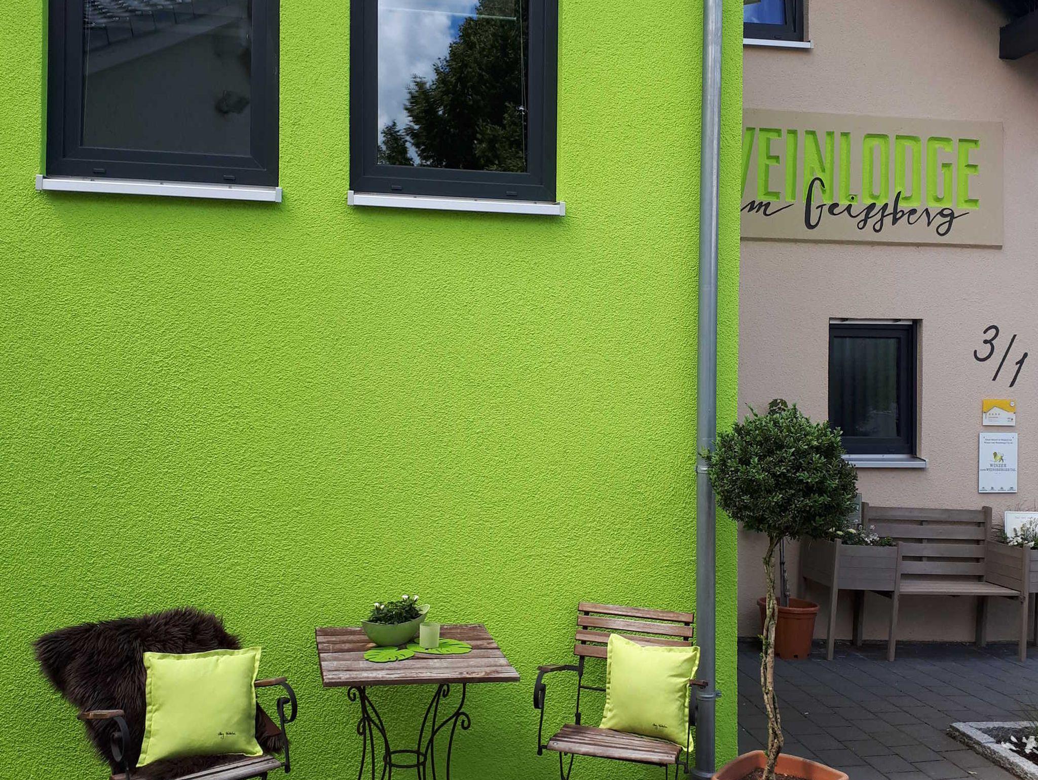In der Weinlodge 2.0 erwartet Sie eine Weinpension mit 4 modernen Doppelzimmern, die ebenfalls vinophil eingerichtet und mit 4-Sternen ausgezeichnet sind. Die Zimmer im Erdgeschoss tragen so klangvolle Namen wie Merlot und Sauvignon Blanc. Im Obergeschoss befinden sich die Zimmer Chardonnay und Weissburgunder.